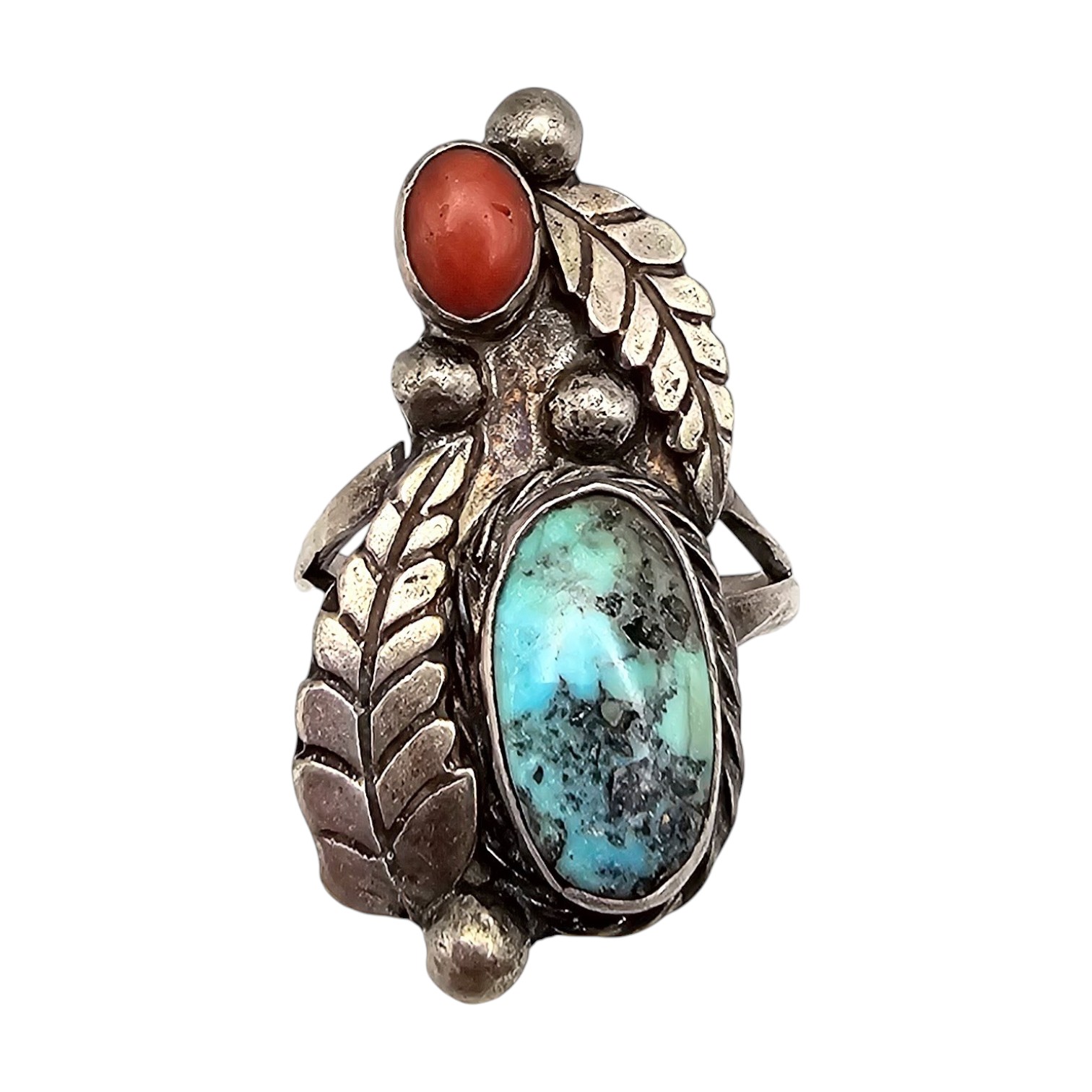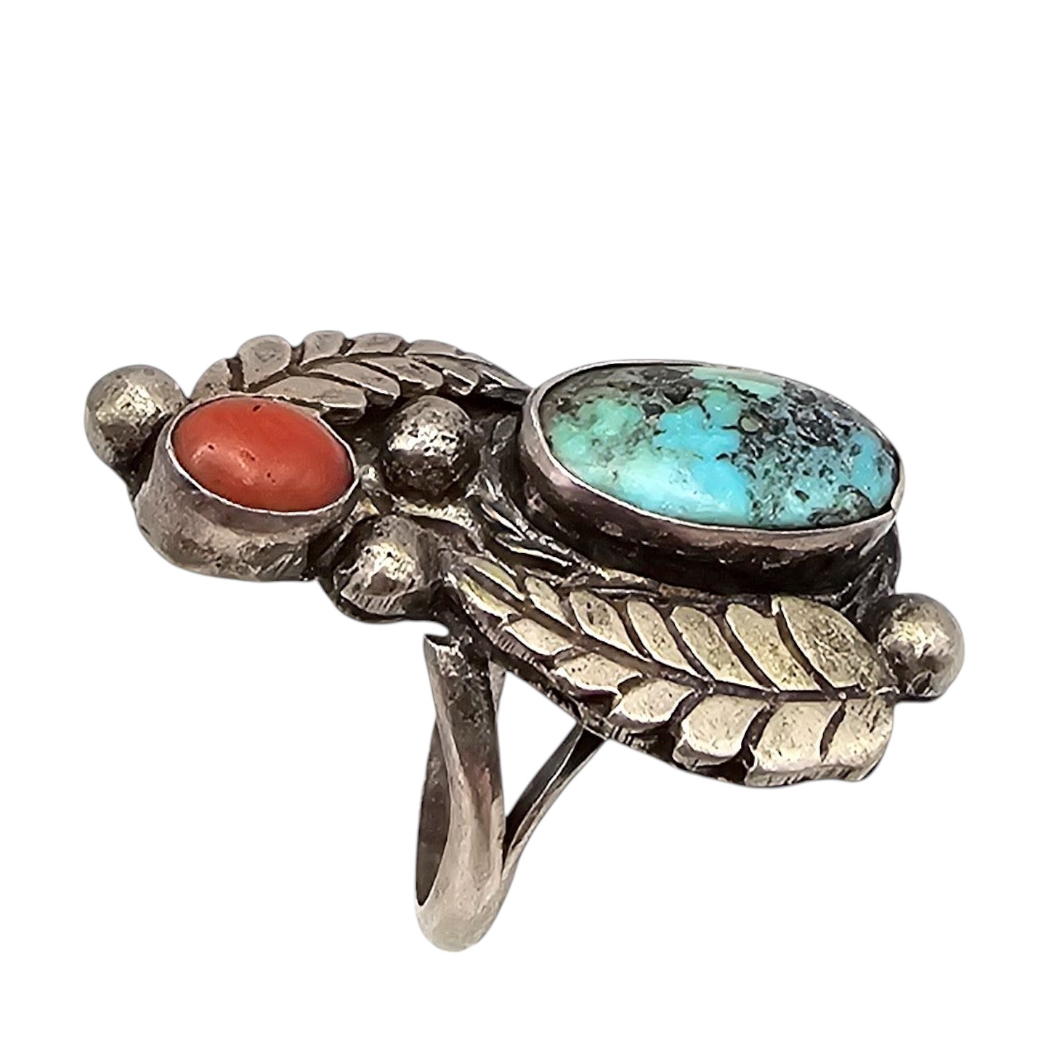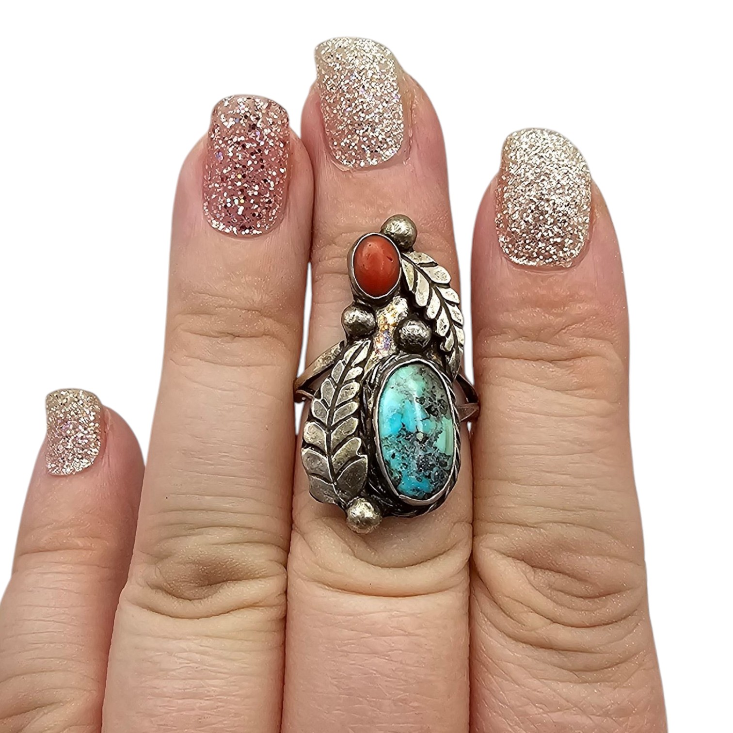 Navajo Coral Turquoise Sterling Silver Ring Size 7 6.5 G