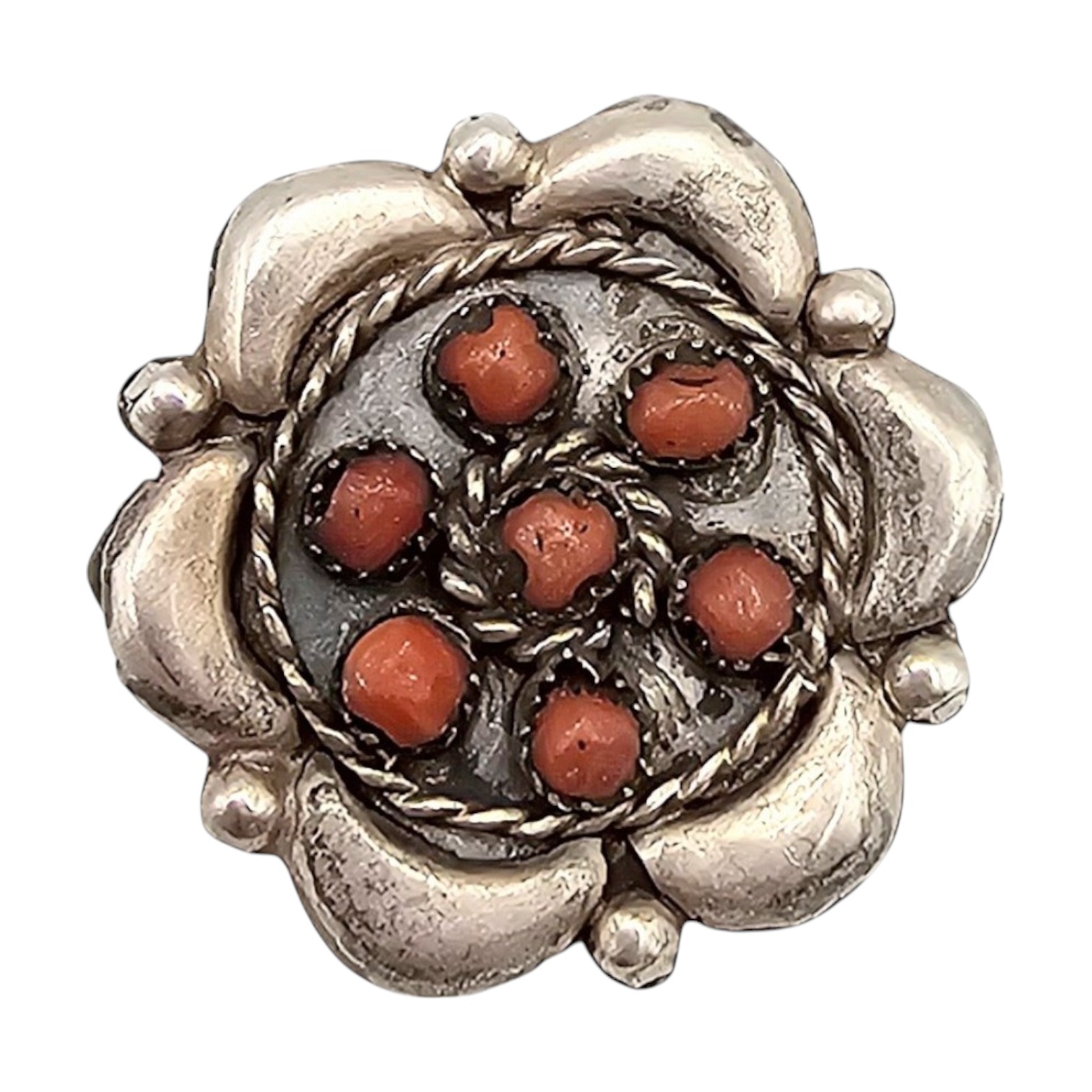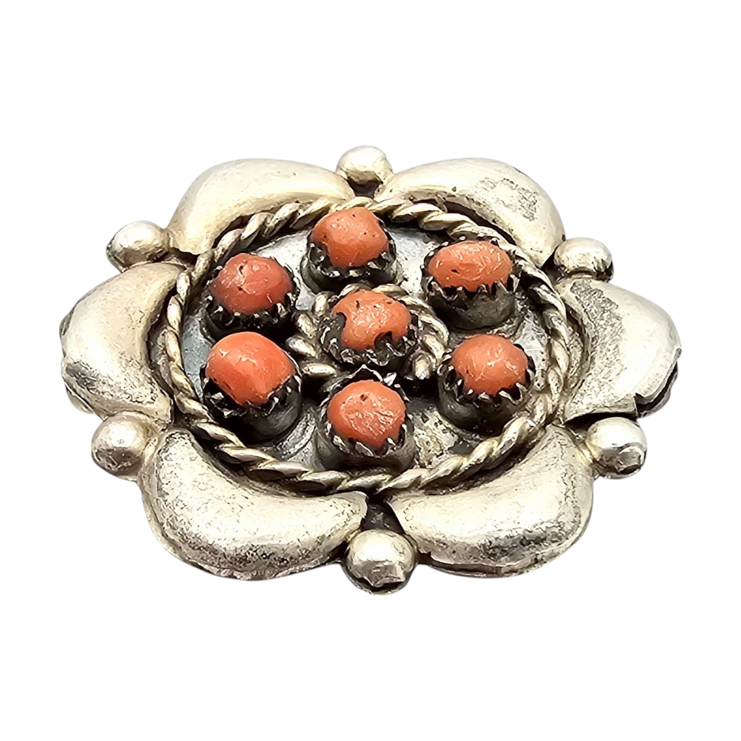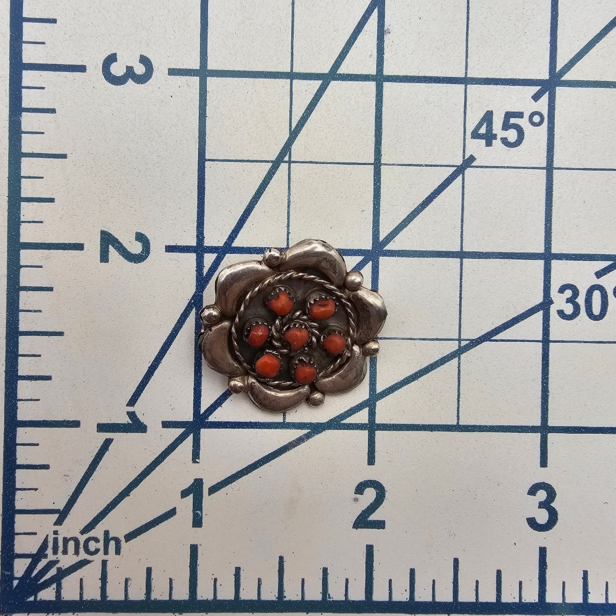Navajo Coral Sterling Silver Floral Brooch 4 G