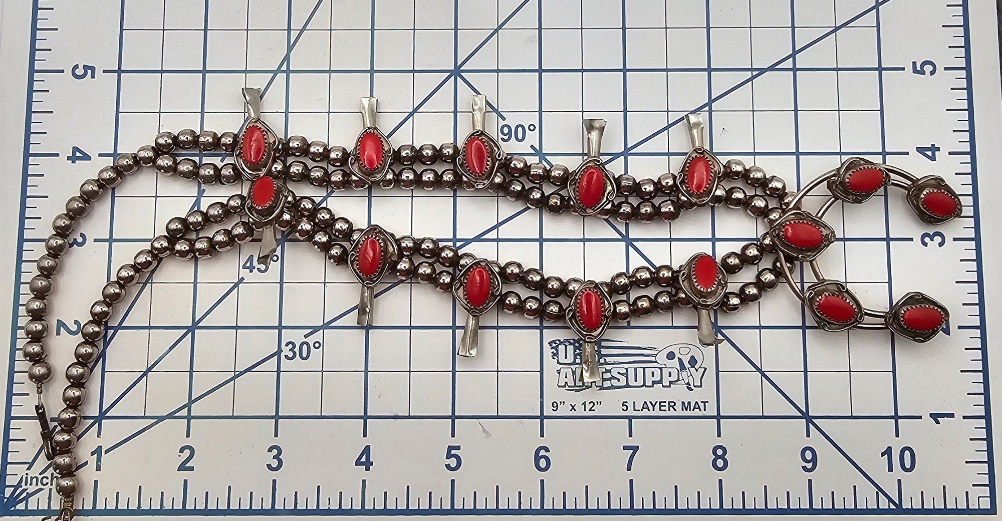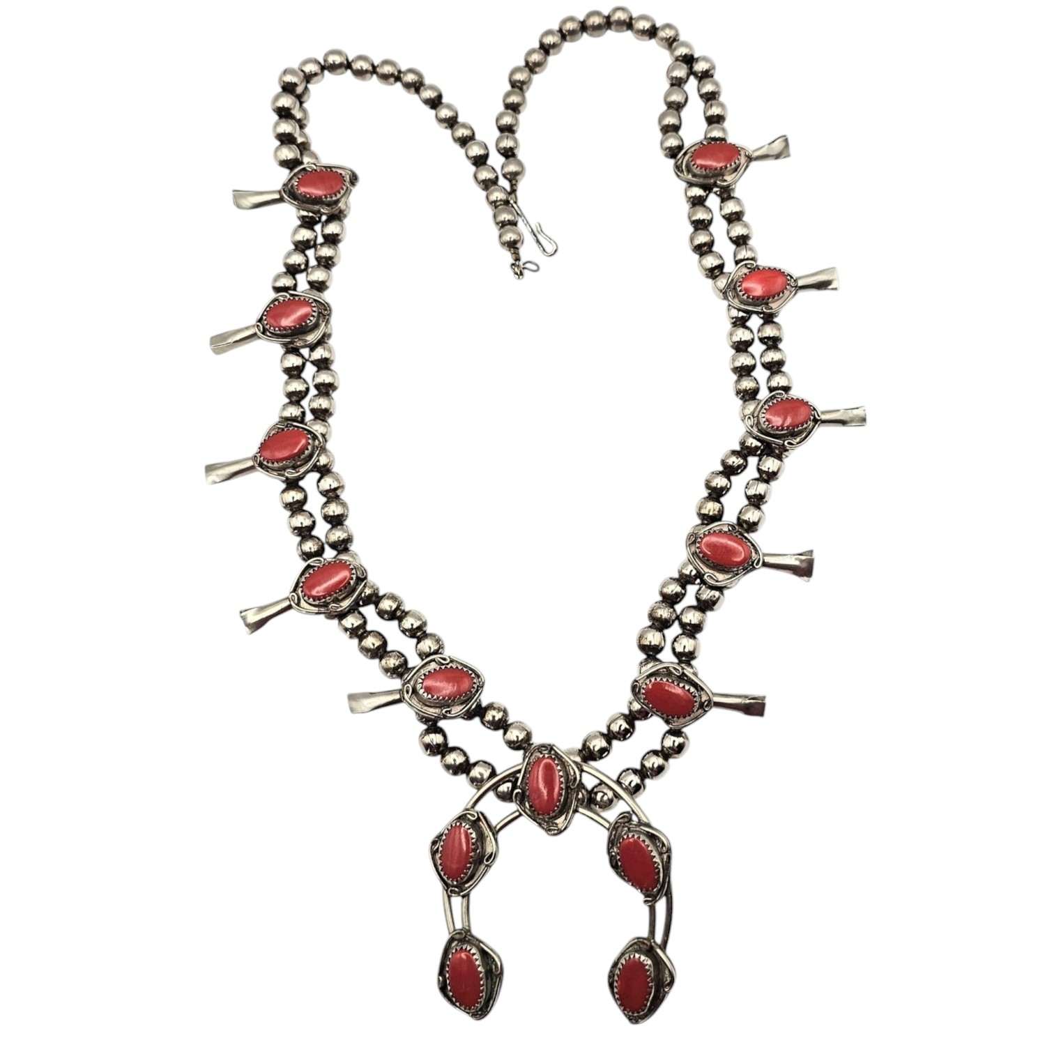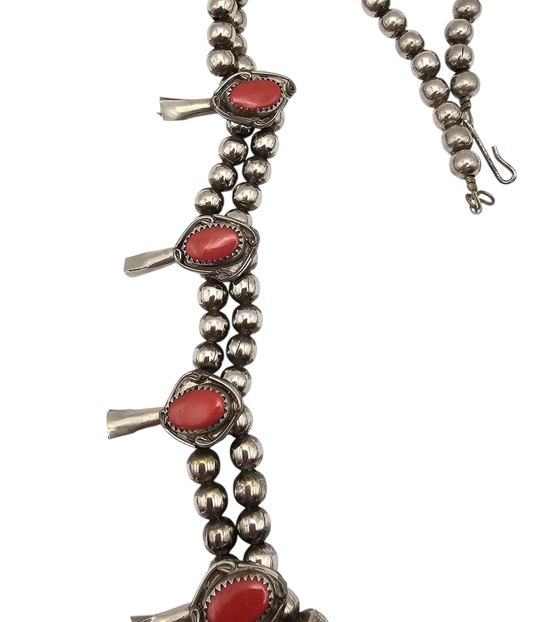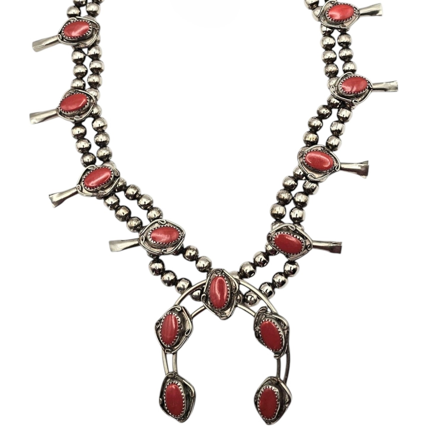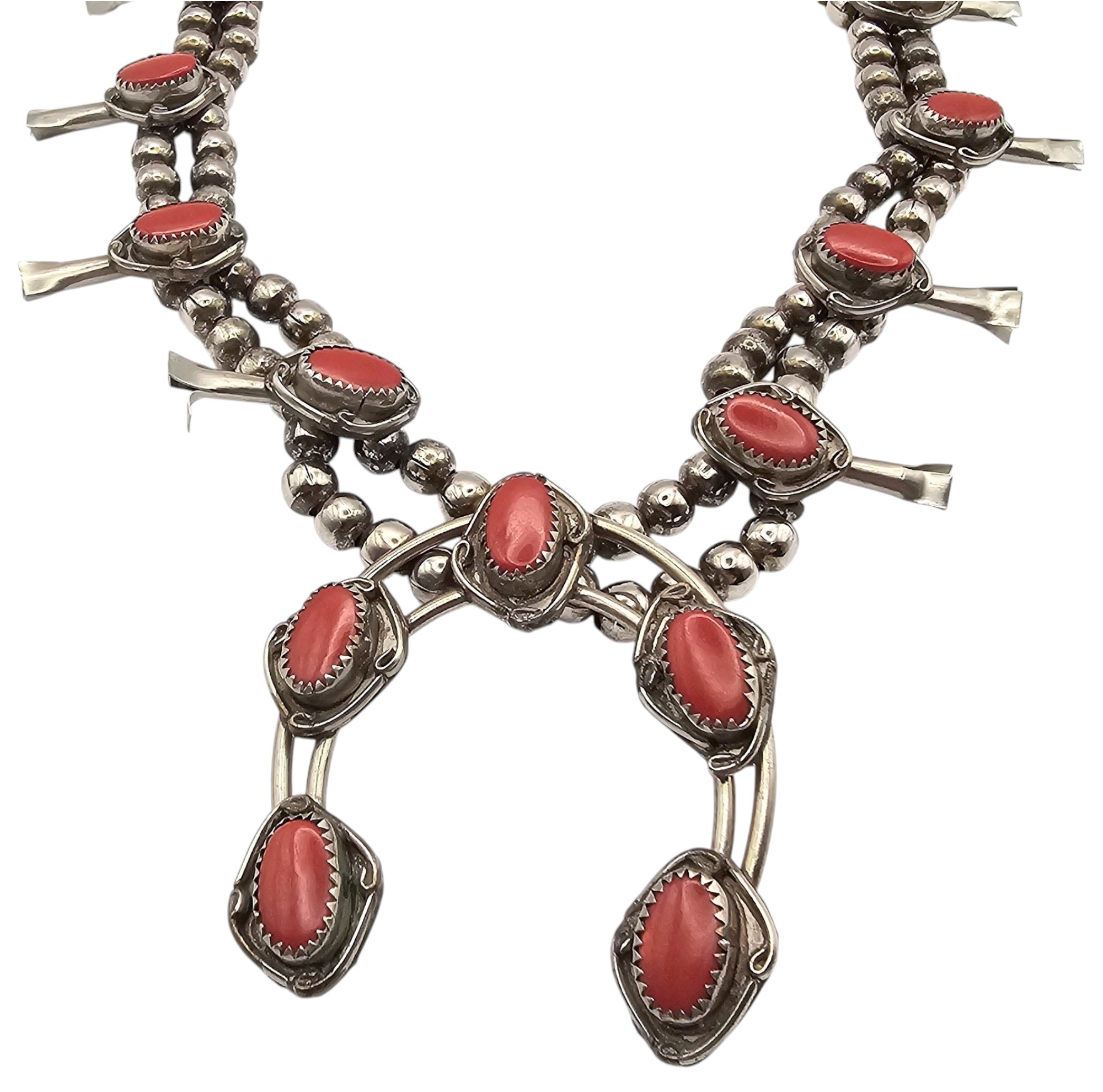 Southwestern Sterling Silver Coral Squash Blossom Necklace