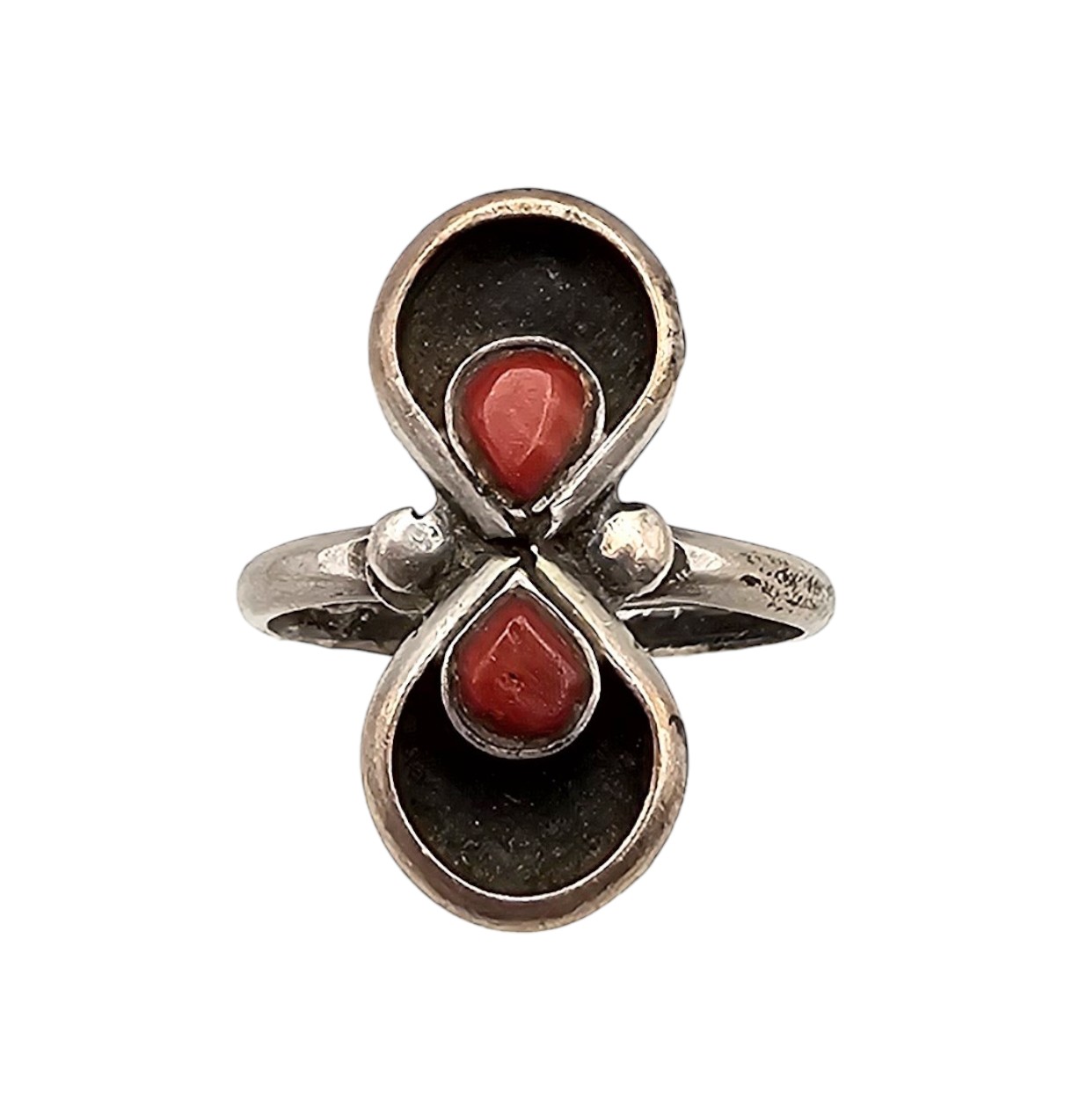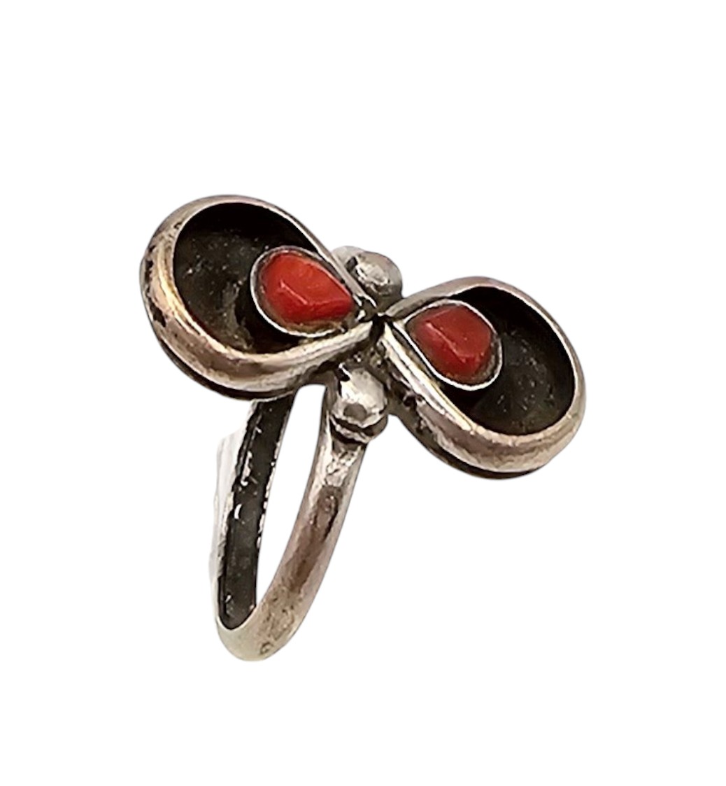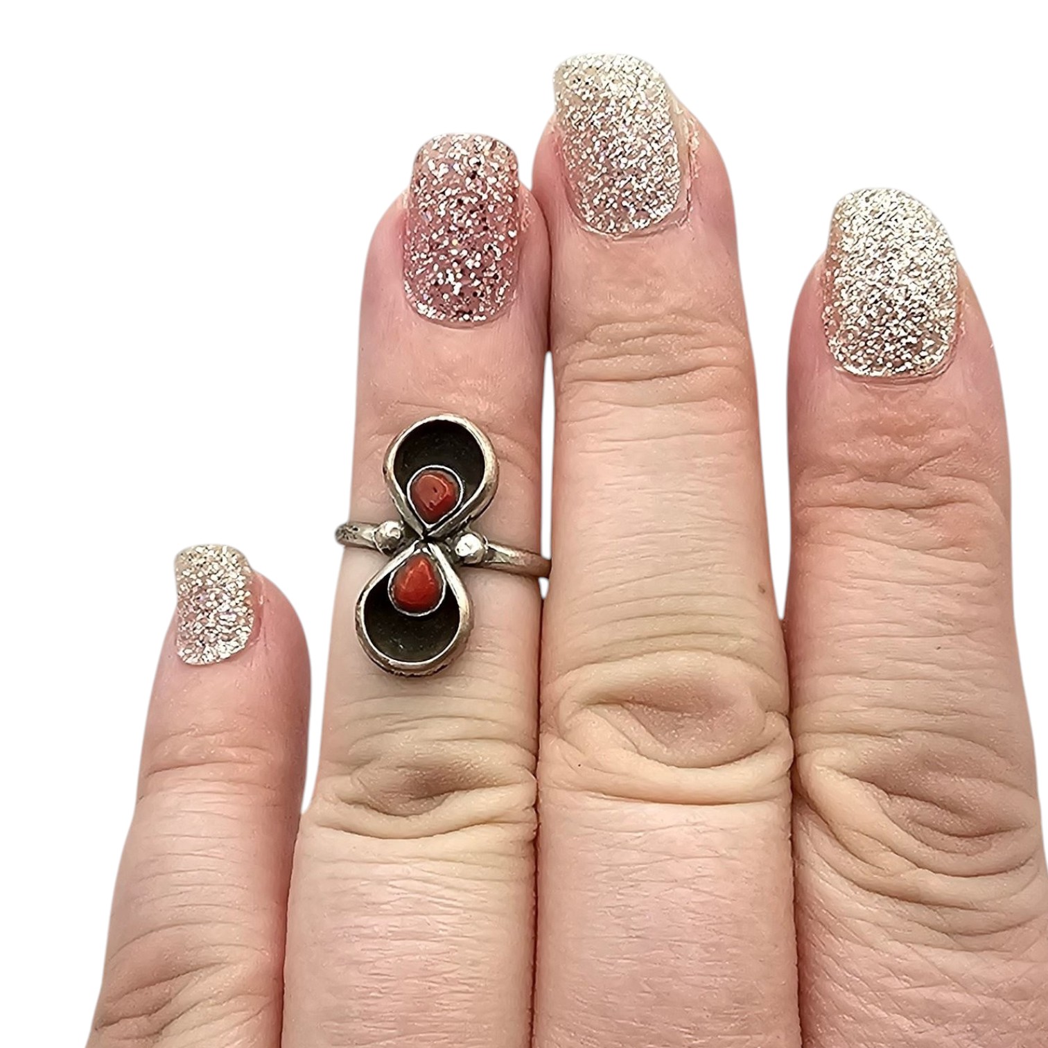 Navajo Coral Turquoise Sterling Silver Shadow Box Ring Size 4.5 2.7 G