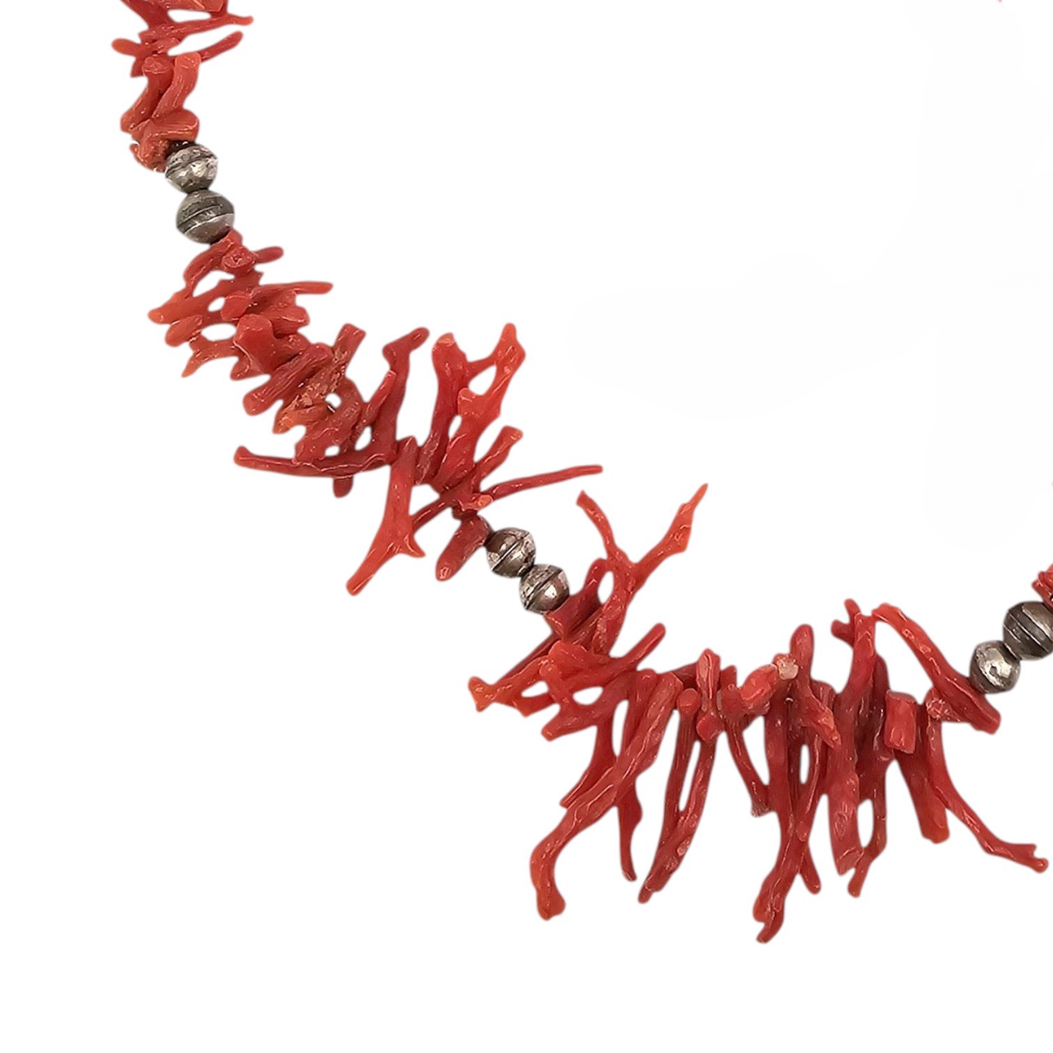 Native American Sterling Branch Coral and Handmade Bead Necklace 39.8 G