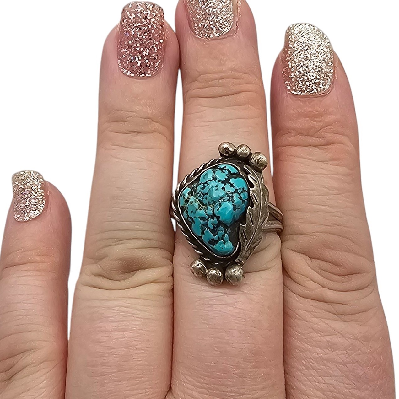Navajo Turquoise Sterling Silver Ring Size 9 7.6 G