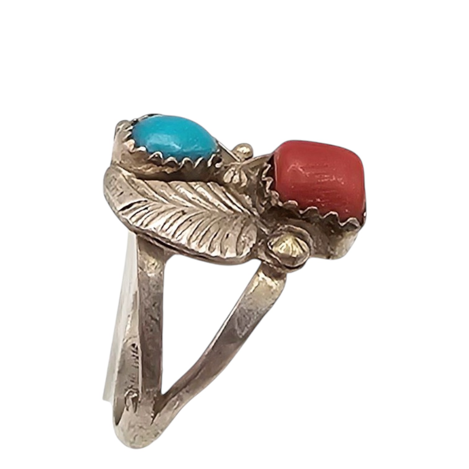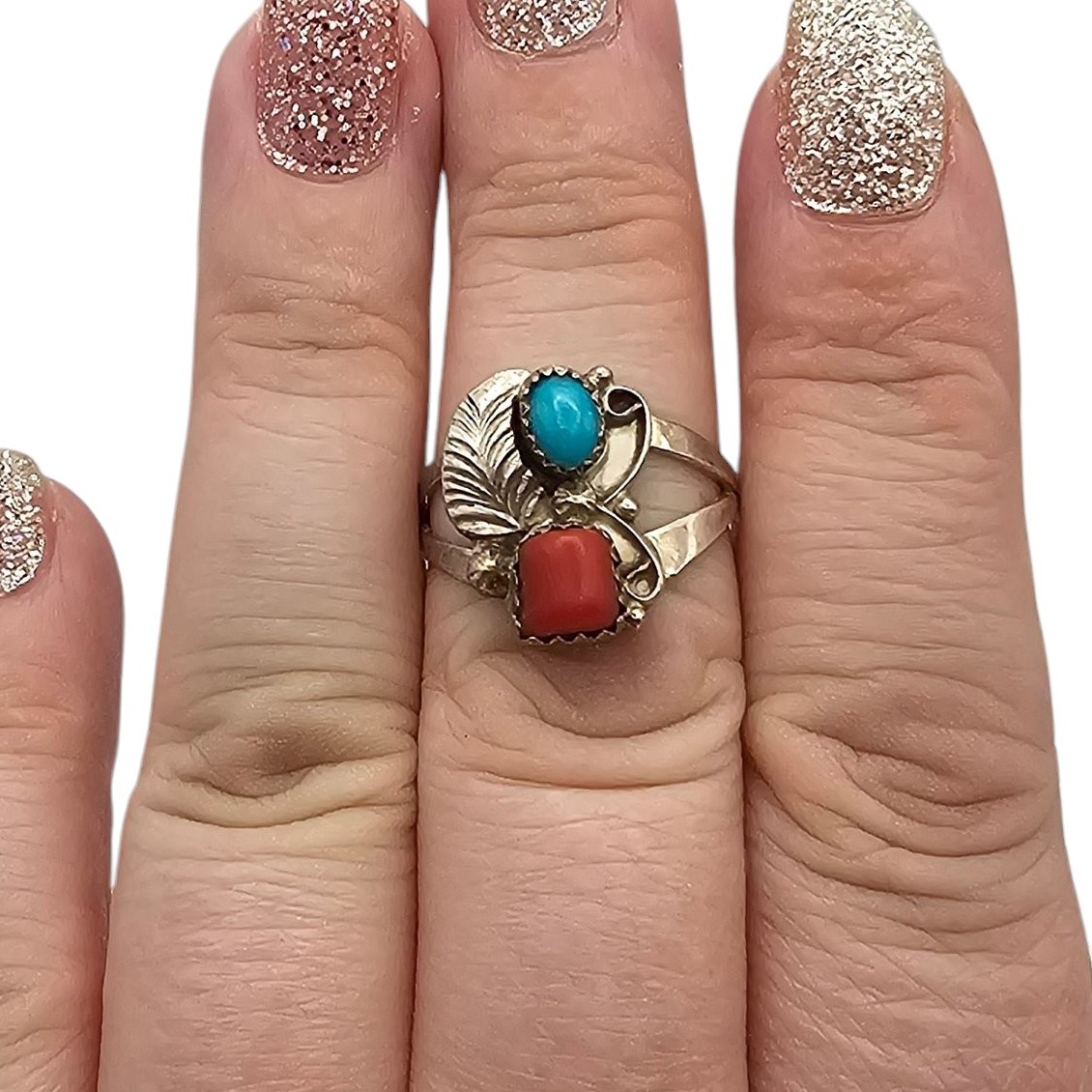 Native Turquoise Coral Sterling Silver Ring Size 7.25 3.1 G