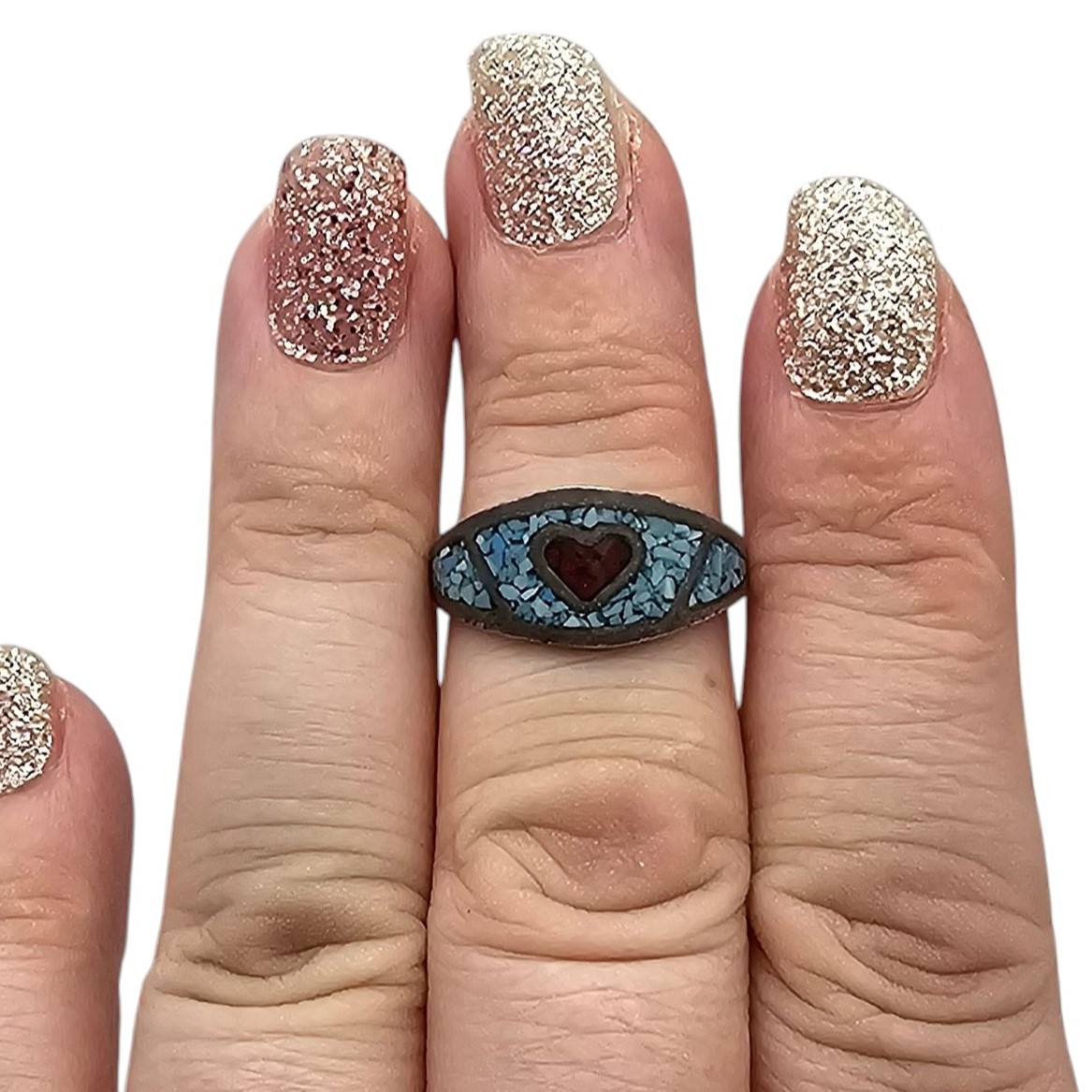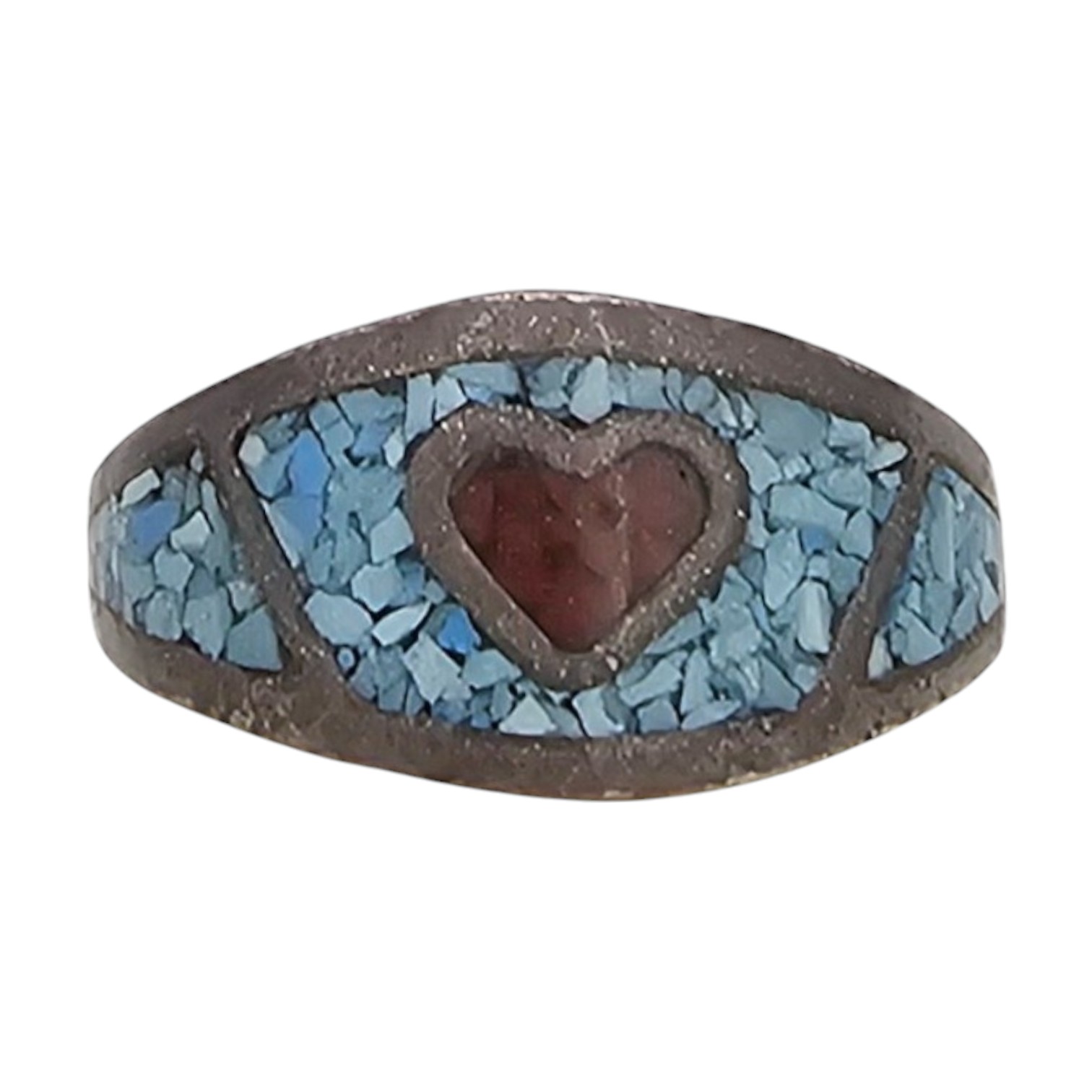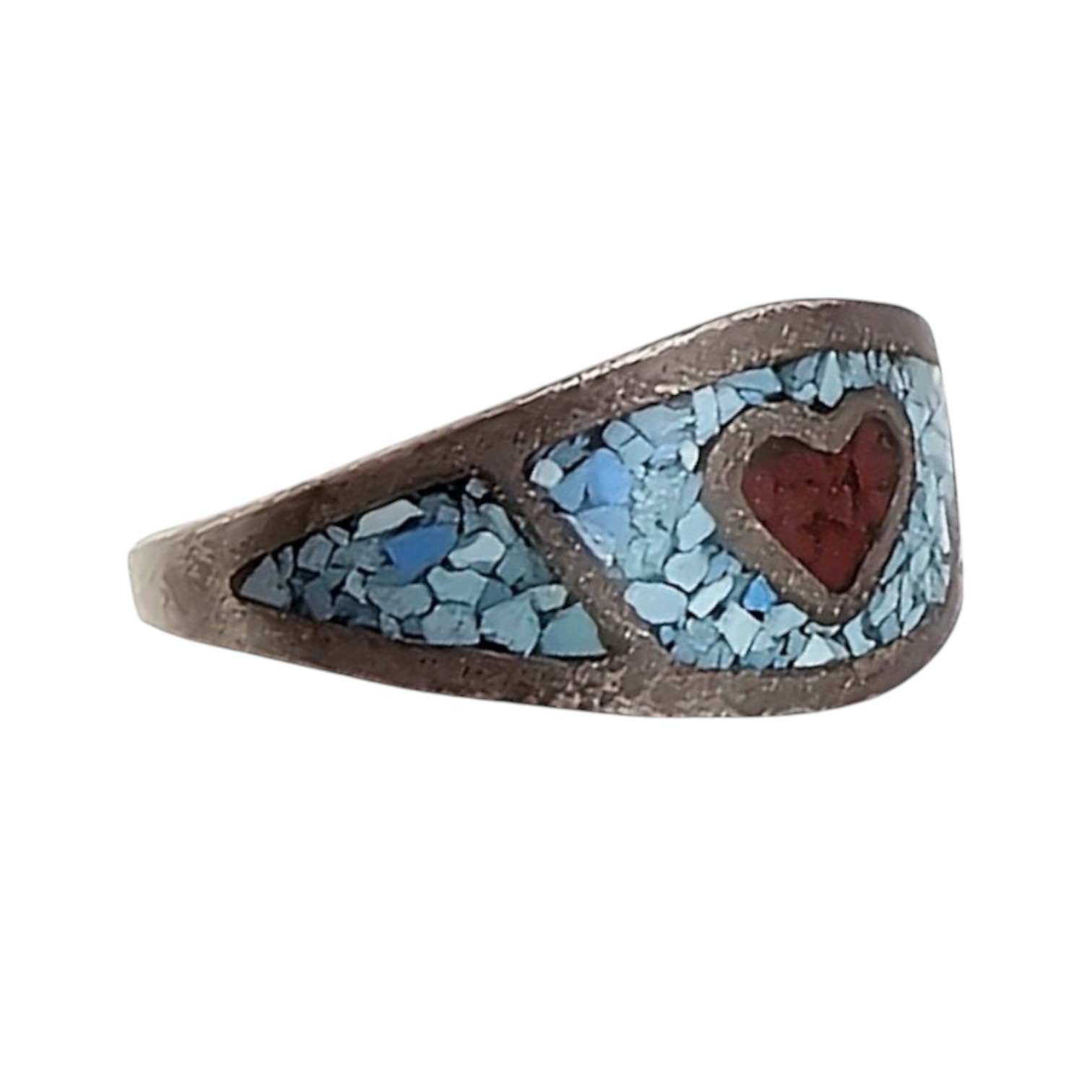 Native Crushed Turquoise Coral Sterling Silver Ring Size 7 3 G