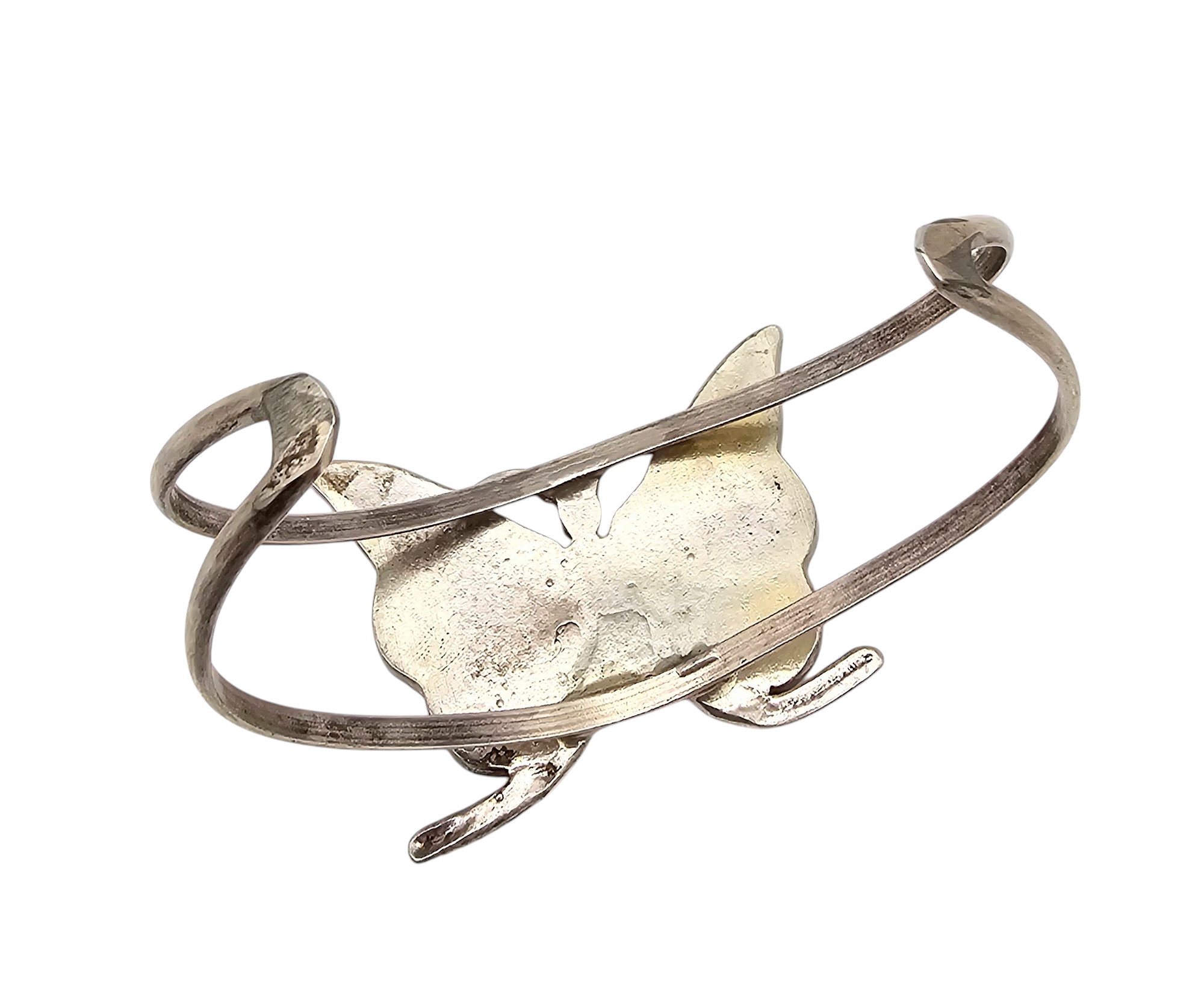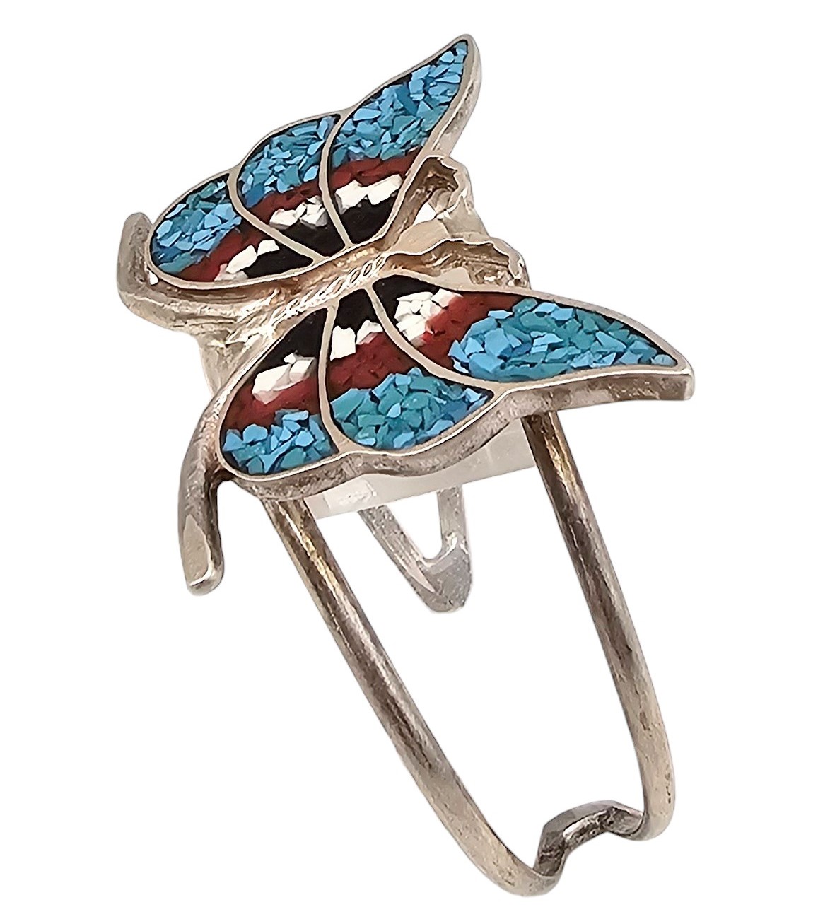 Native Crushed Turquoise Coral Sterling Silver Butterfly Cuff Bracelet 22.6 G