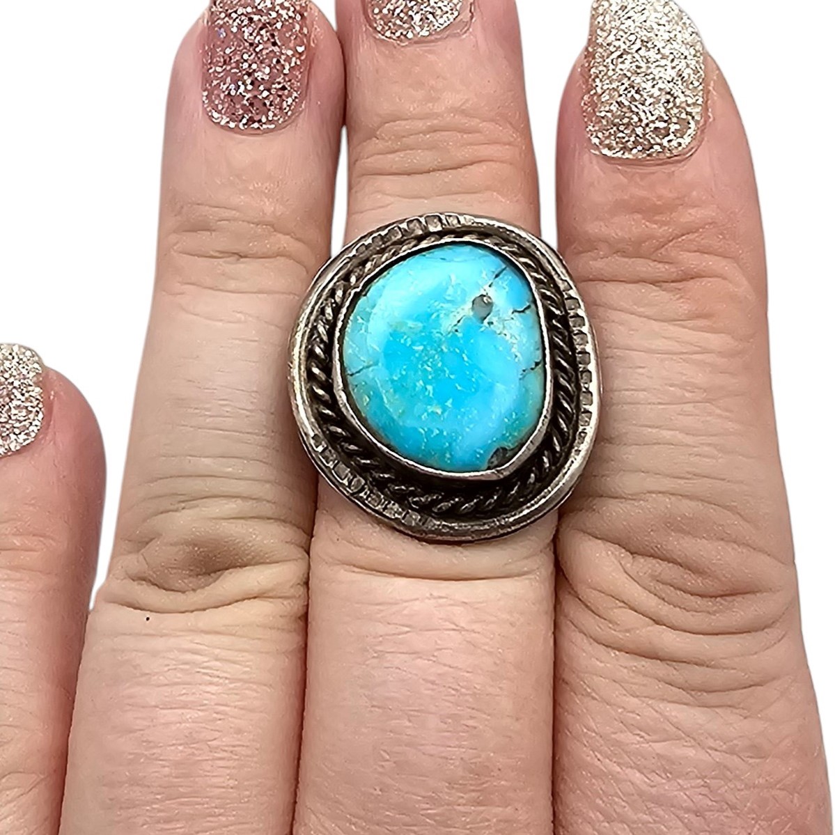 Navajo Turquoise Sterling Silver Ring Size 7.5 6.9 G