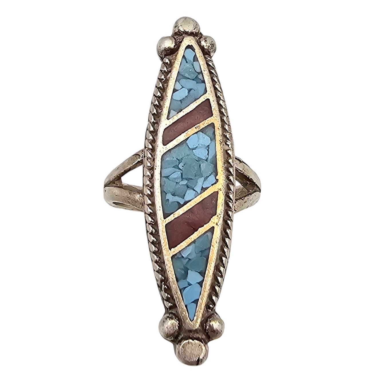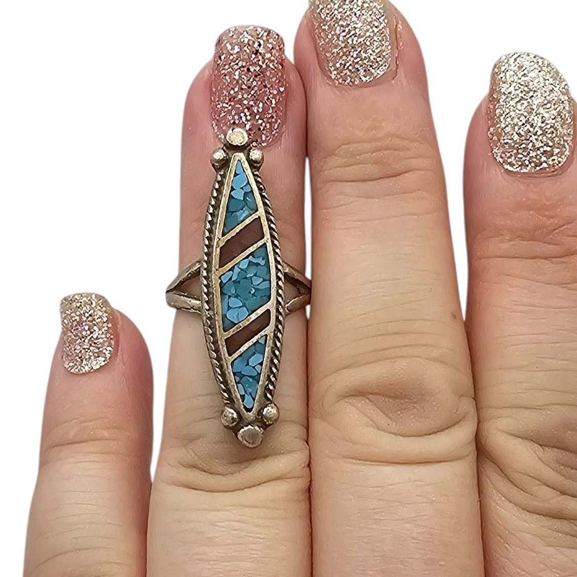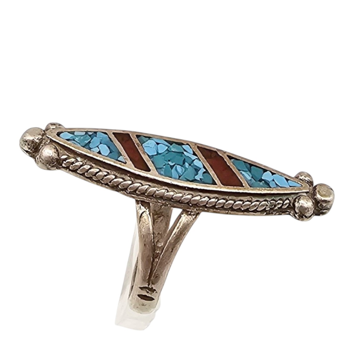 Native Crushed Turquoise Coral Sterling Silver Ring Size 4.5 6 G