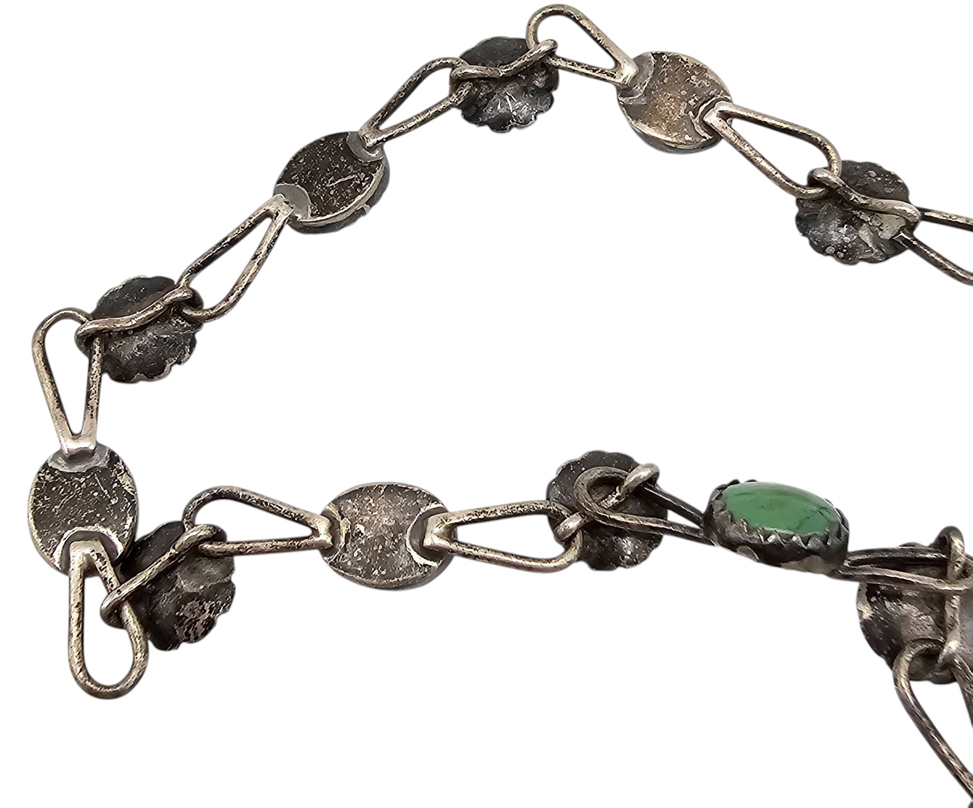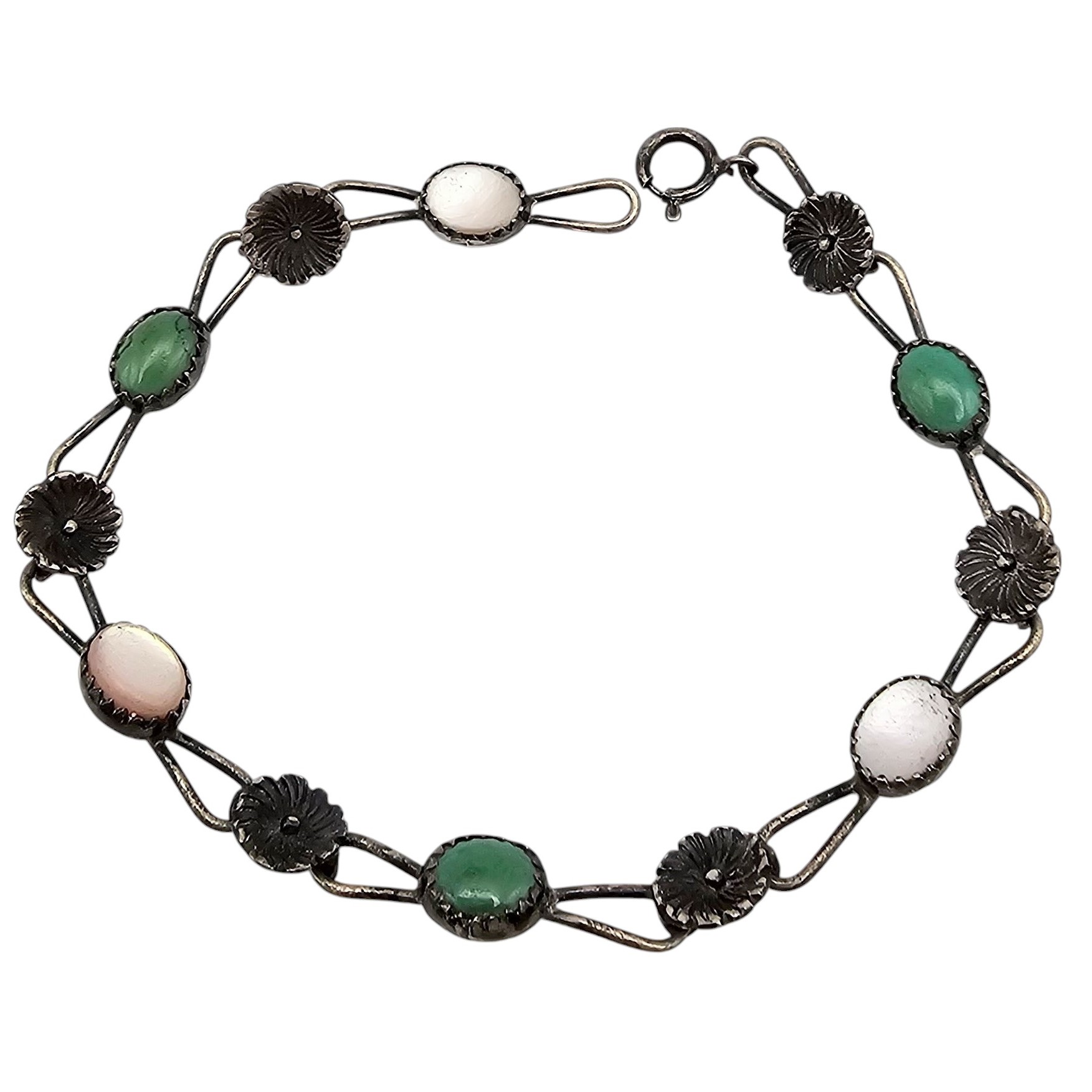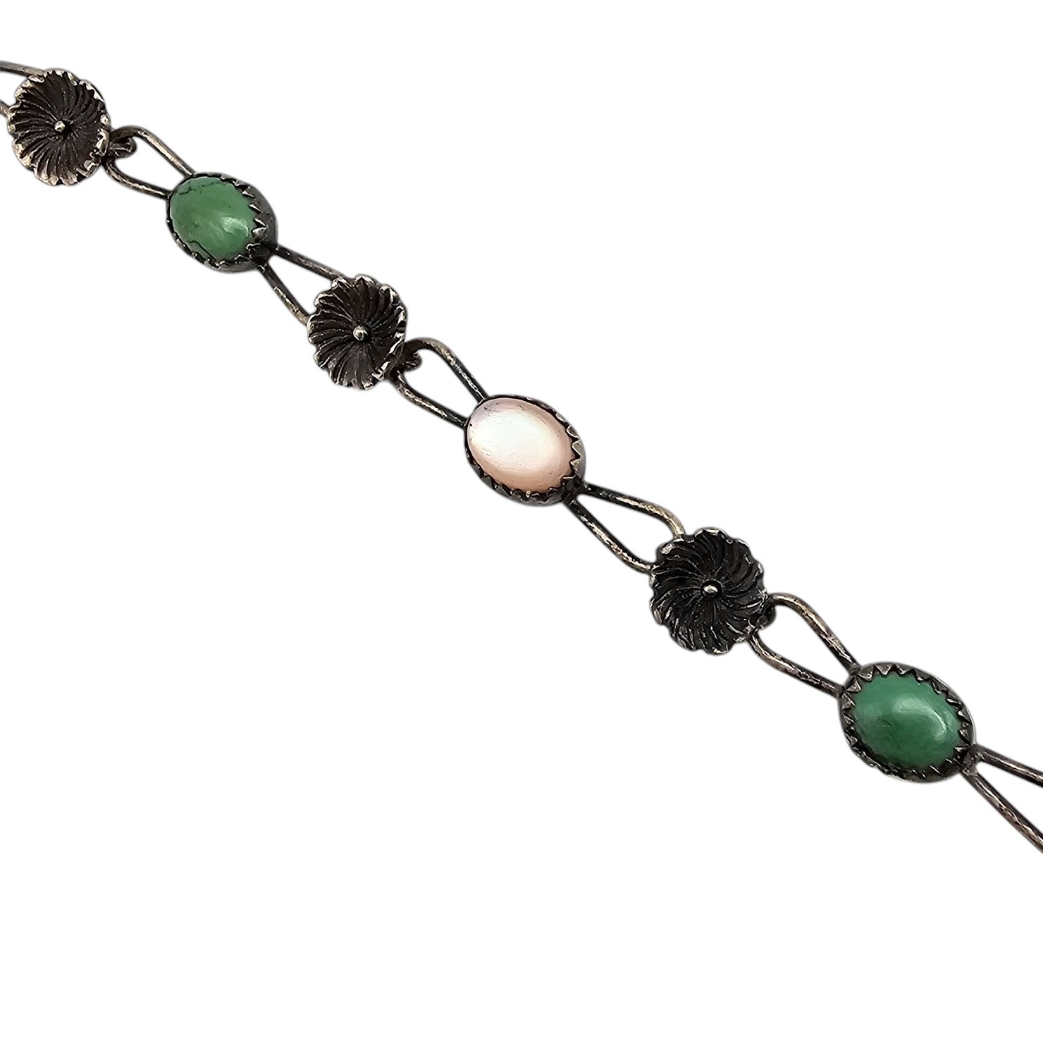 First American Traders Gallup Turquoise Mother Of Pearl Sterling Silver Floral Bracelet 8.6 G