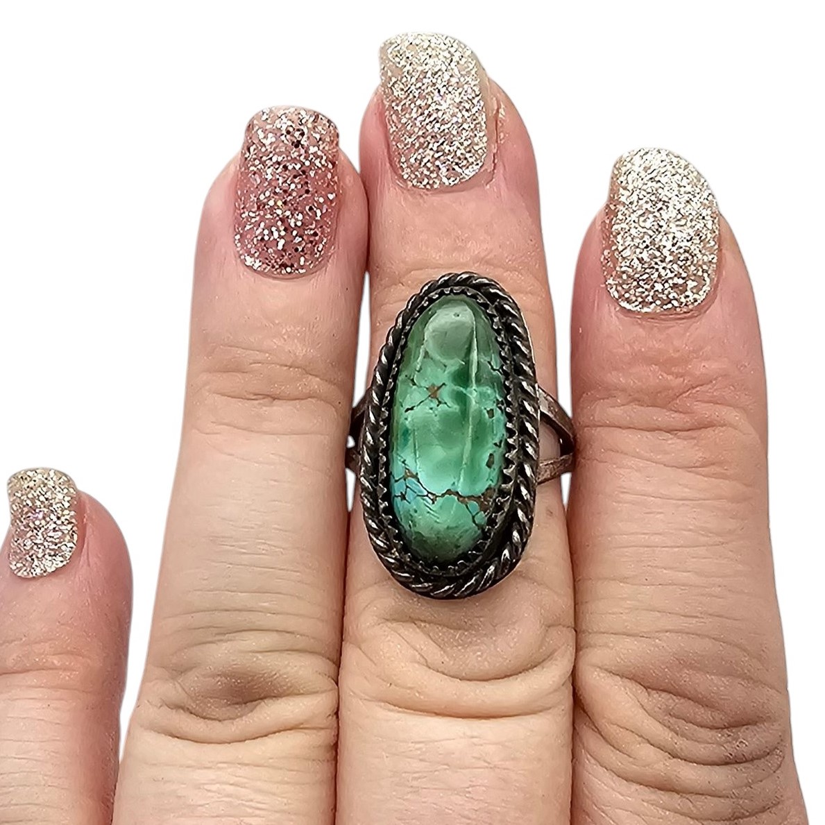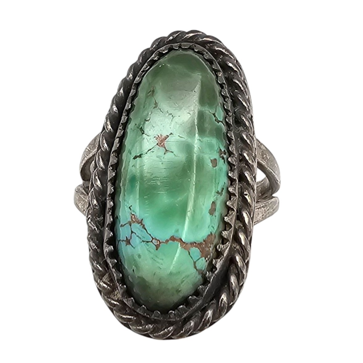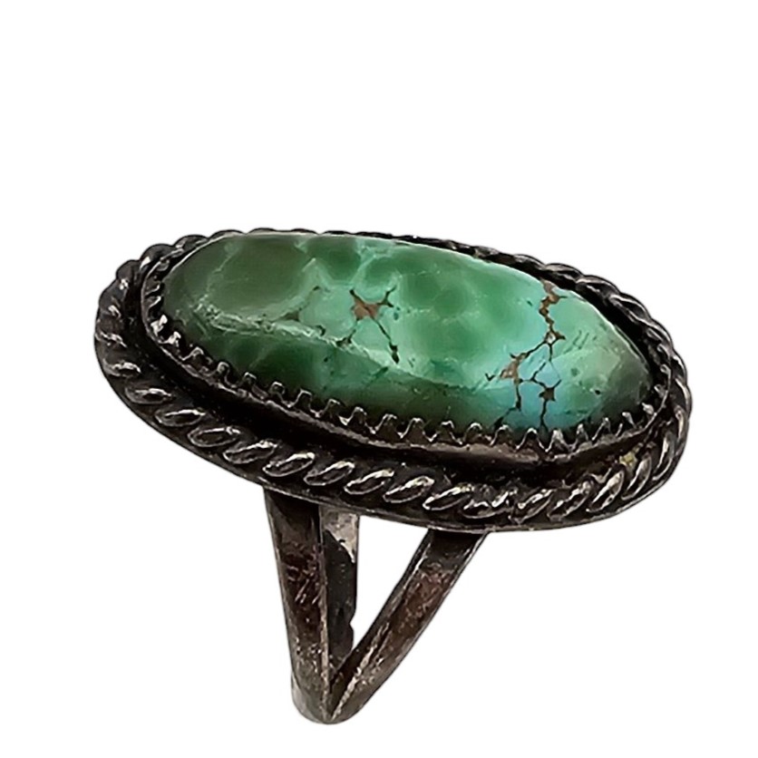 Native Turquoise Sterling Silver Ring Size 6 7.2 G