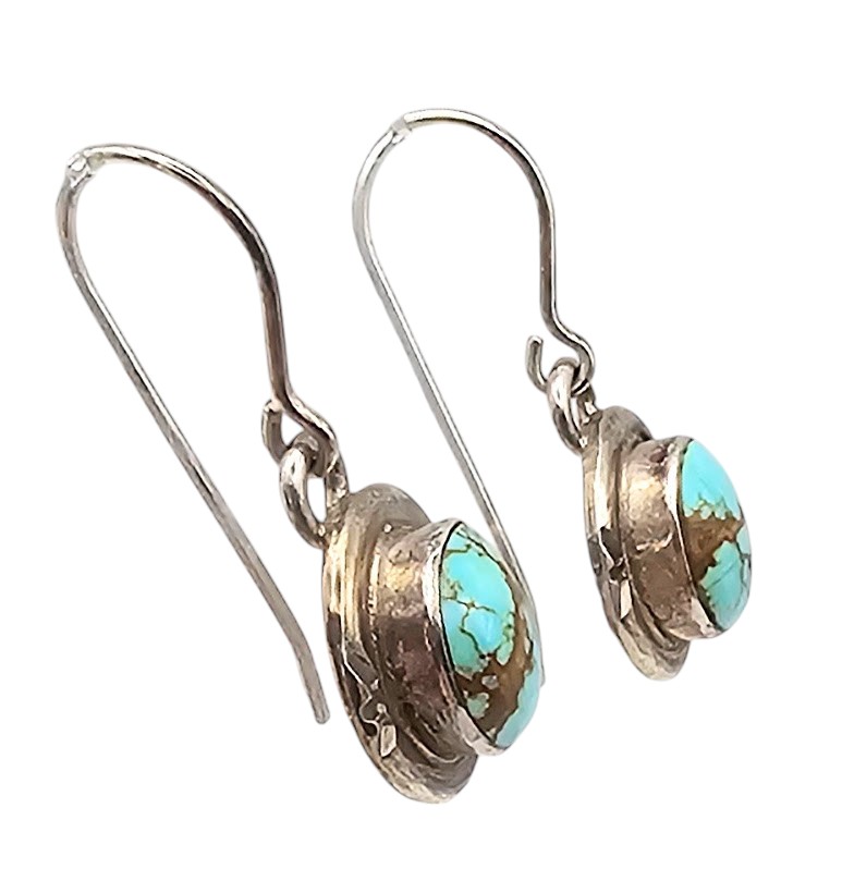 Mike AB Turquoise Sterling Silver Drop Dangle Earrings 3.3 G