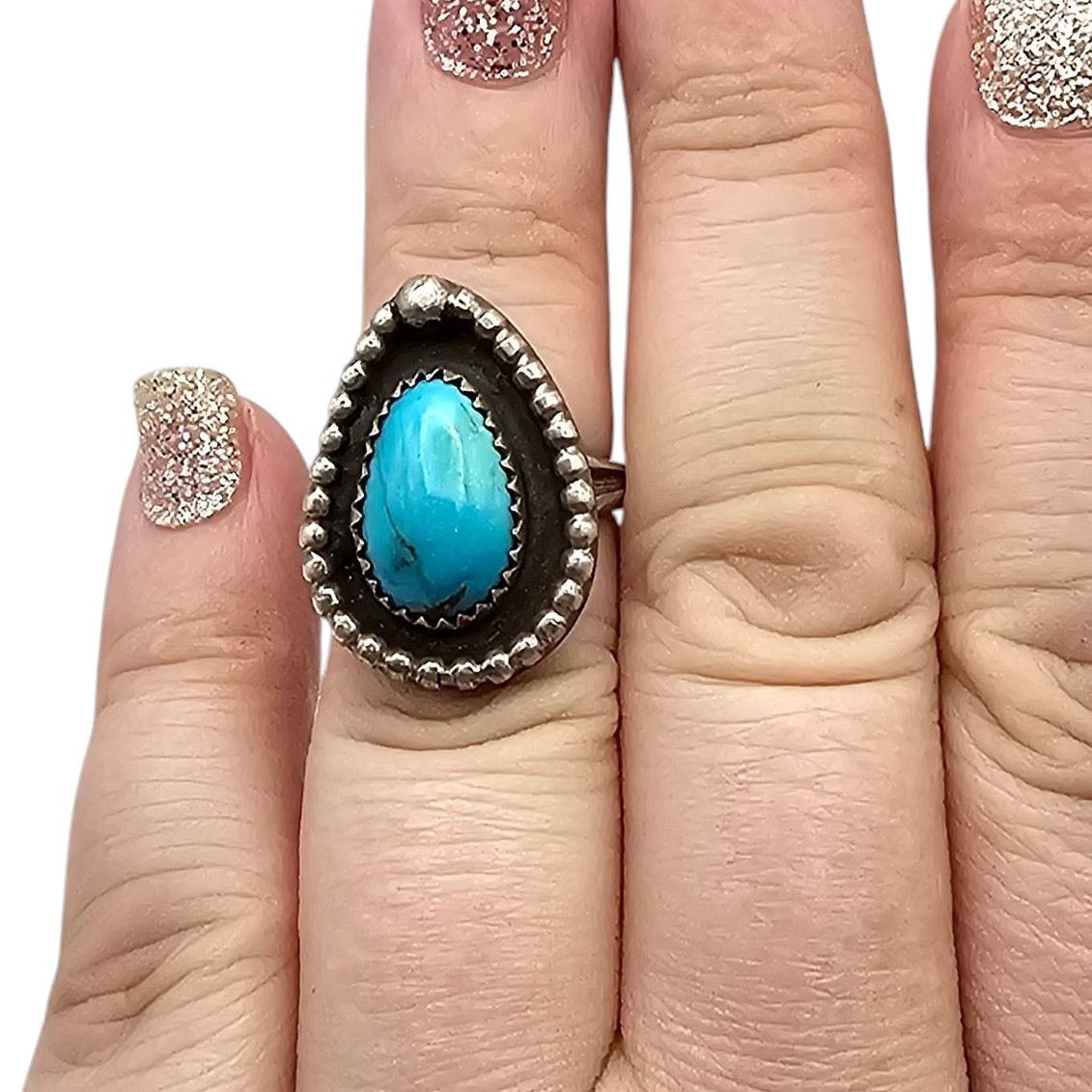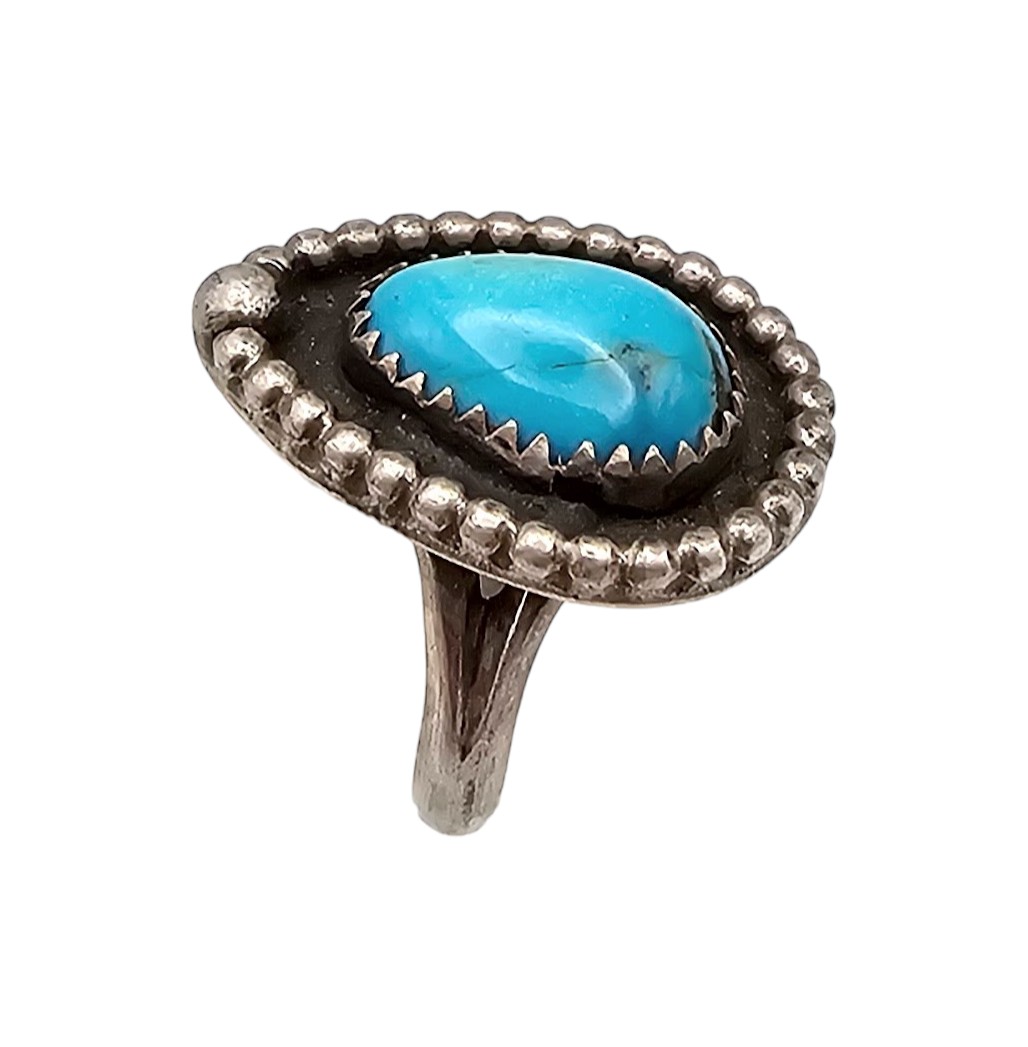 Native JD Turquoise Sterling Silver Ring Size 6 6.7 G
