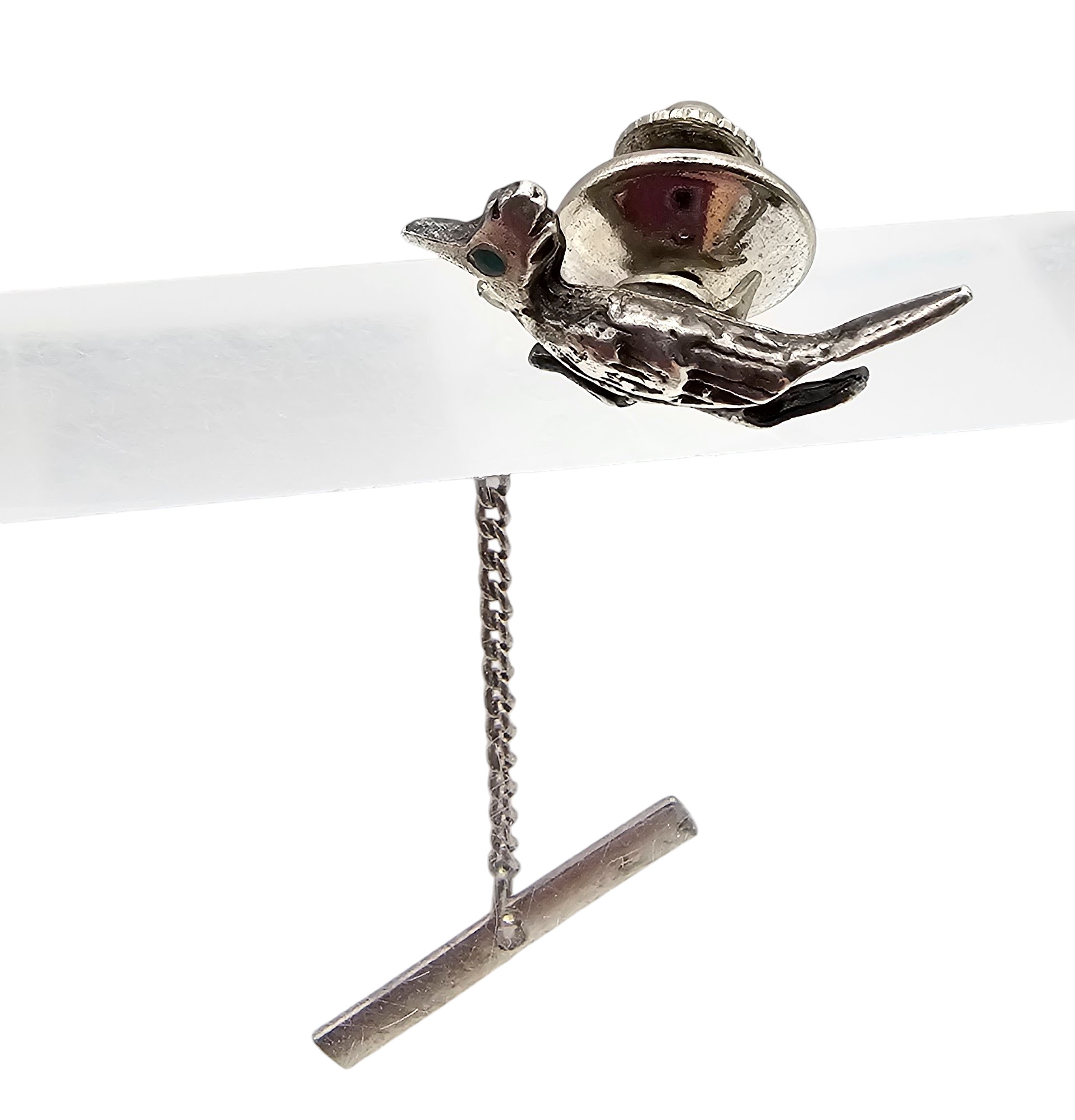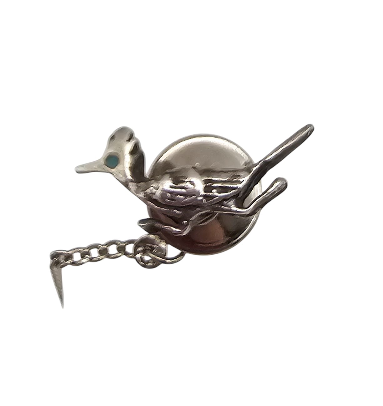 Native Sterling Silver Turquoise Roadrunner Tie Tack