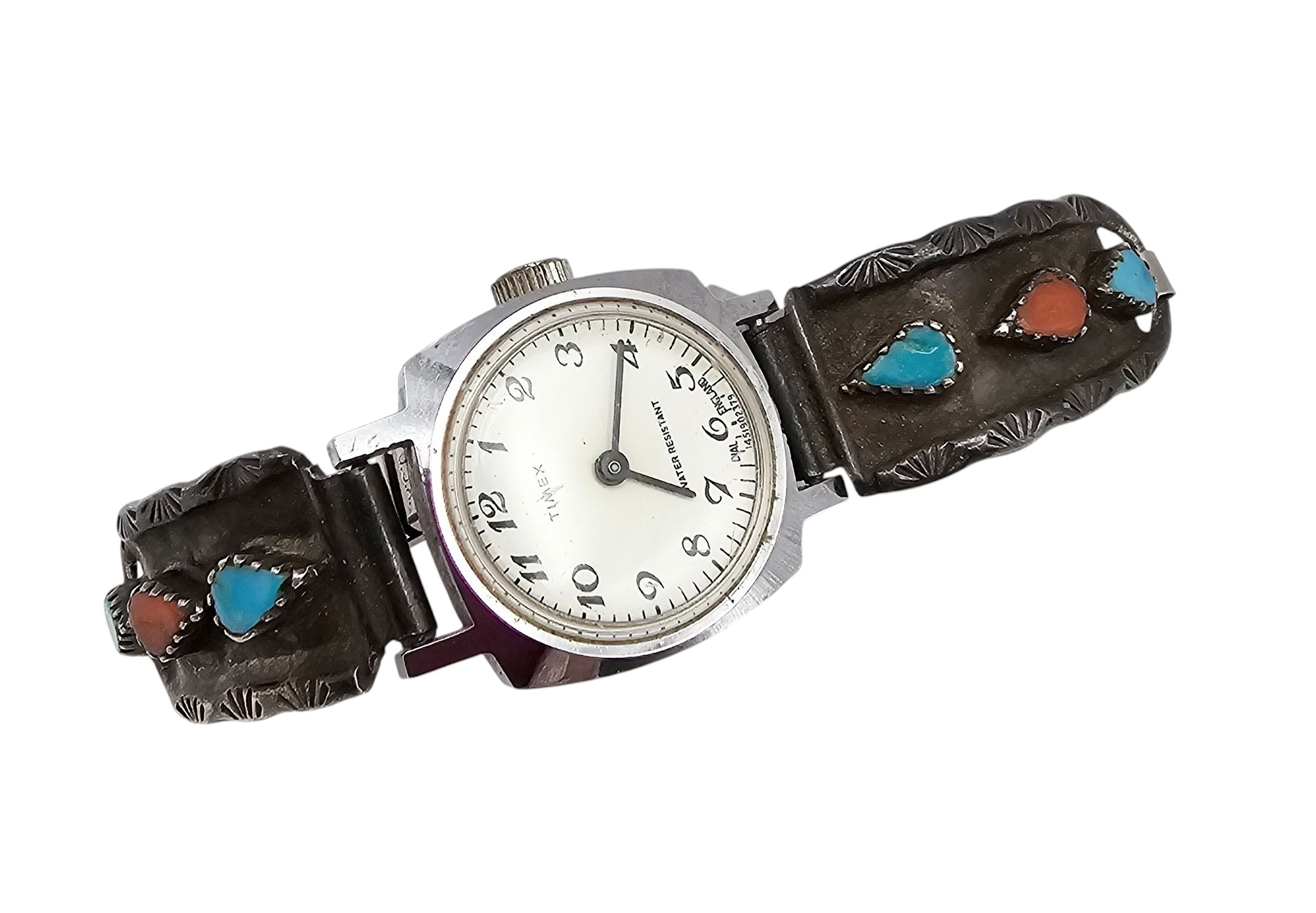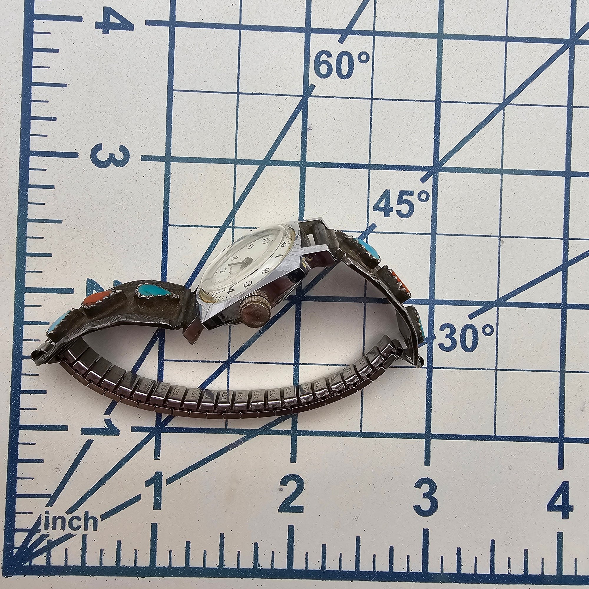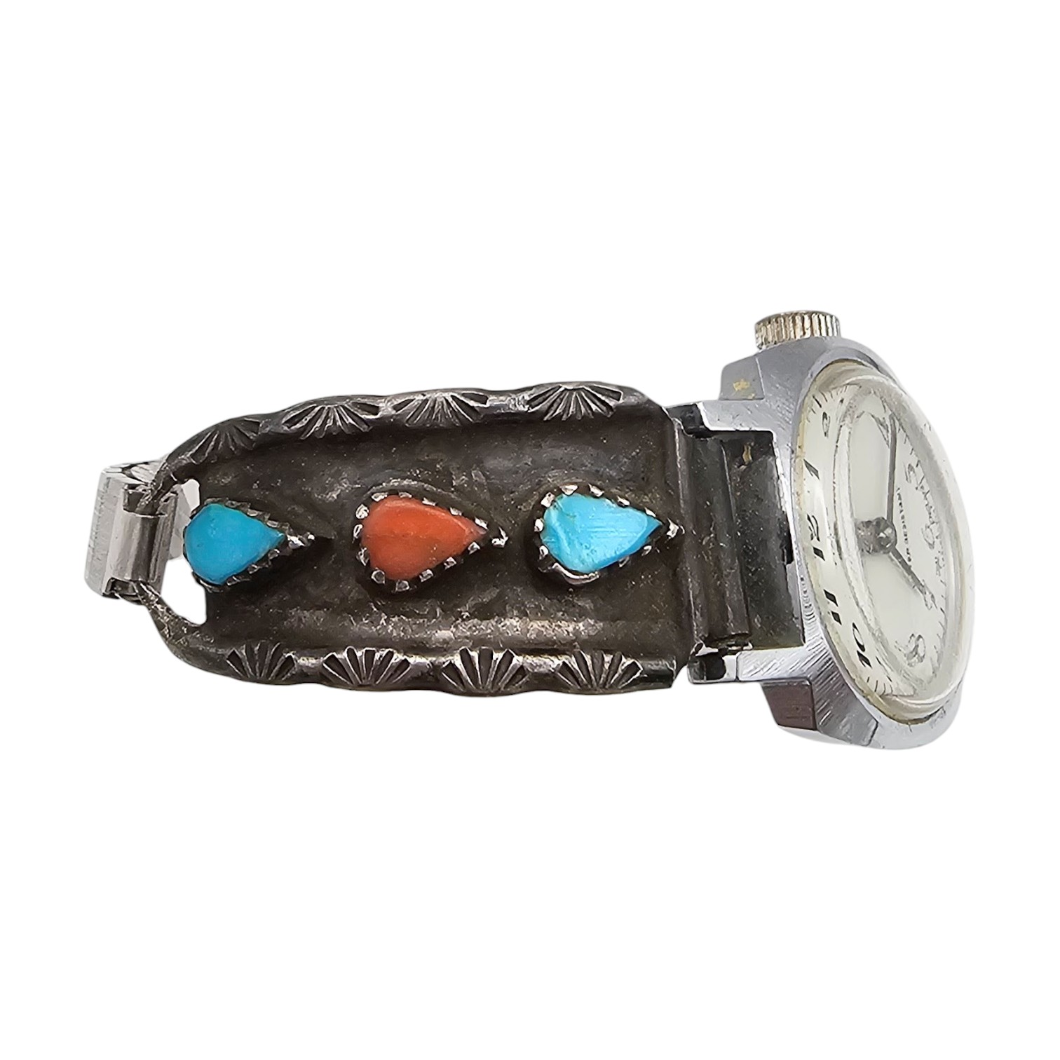 Navajo Turquoise Coral Sterling Silver Watch Band Watch 20 G