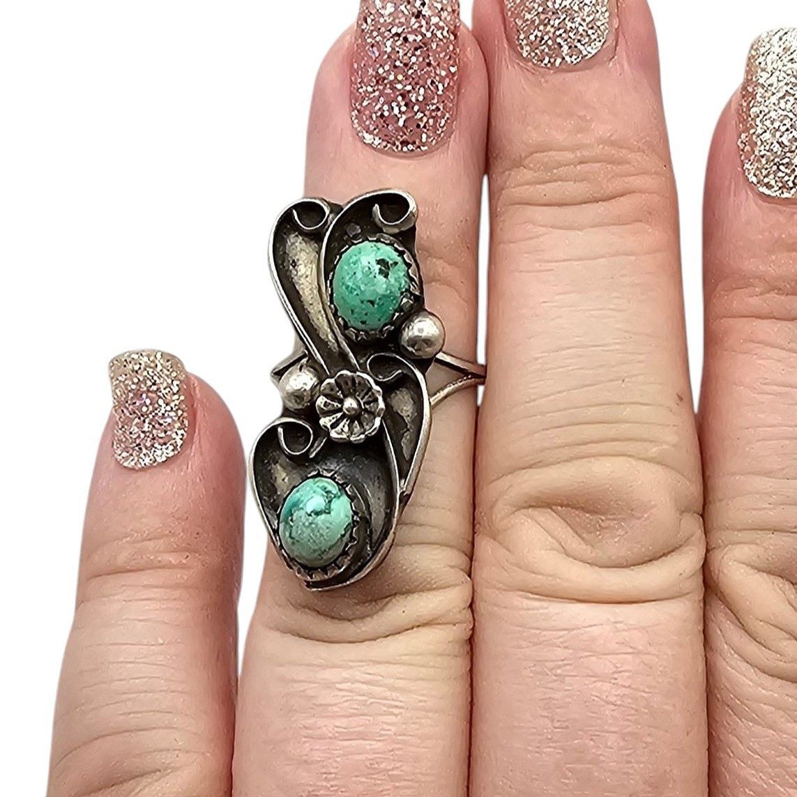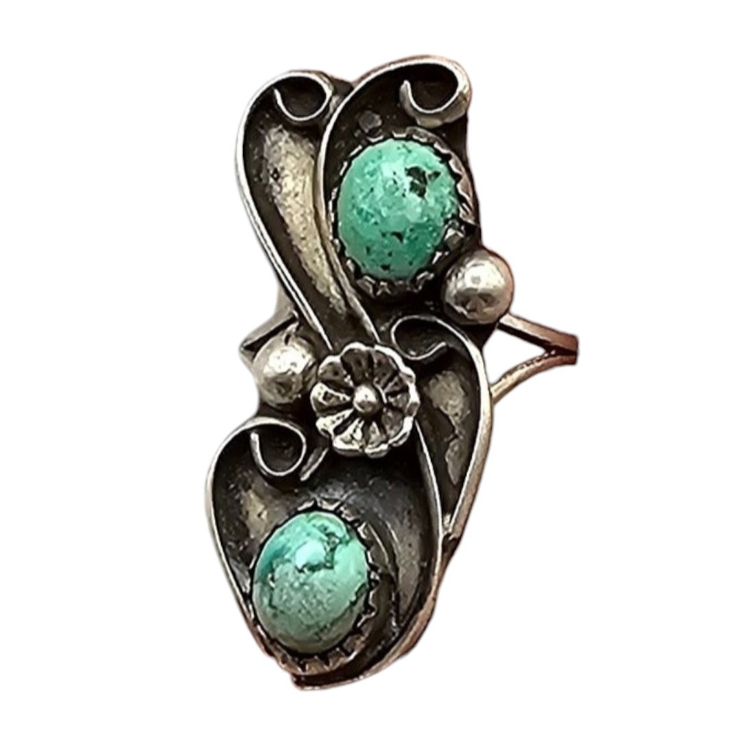 Navajo Double Turquoise Sterling Silver Ring Size 4.75 4.5 G