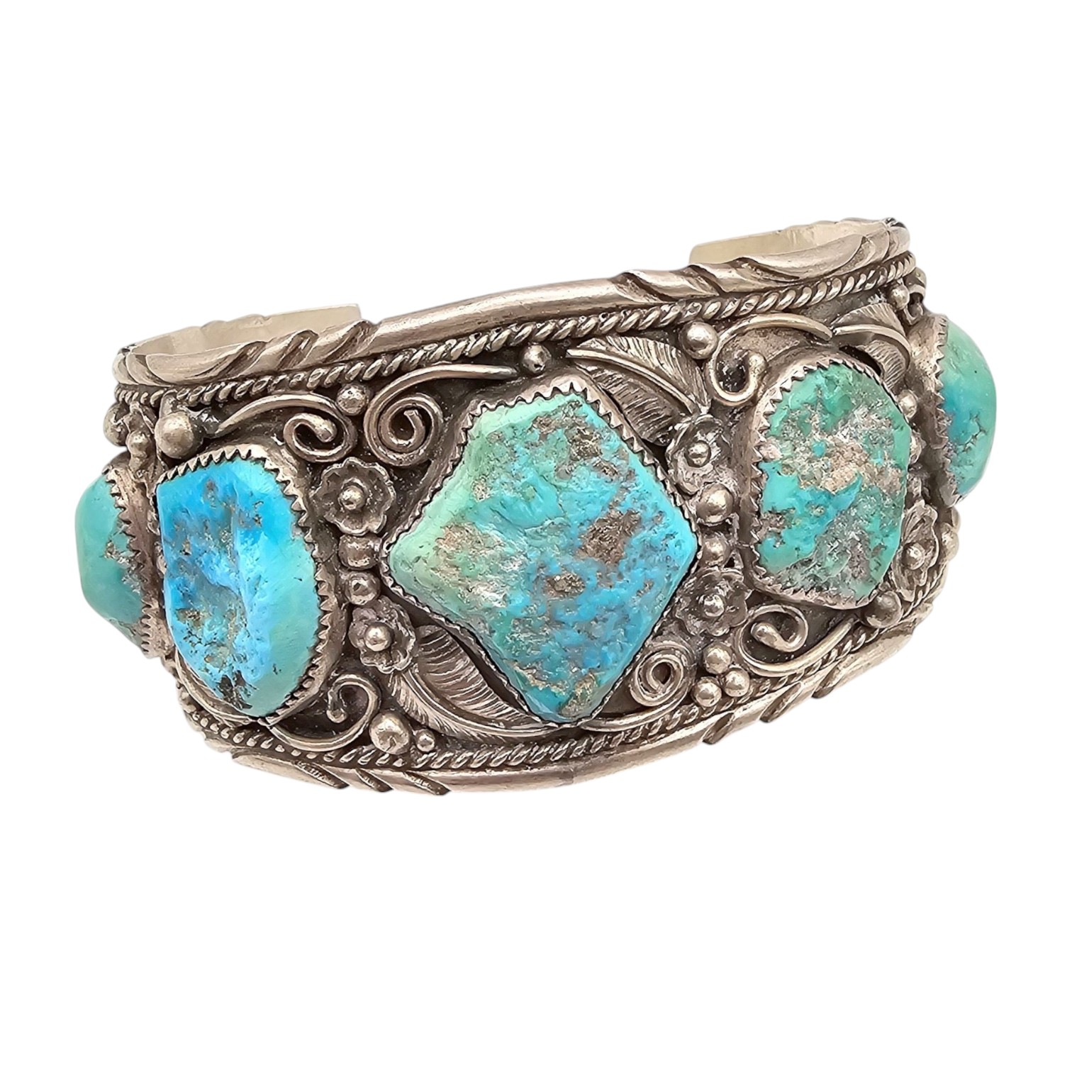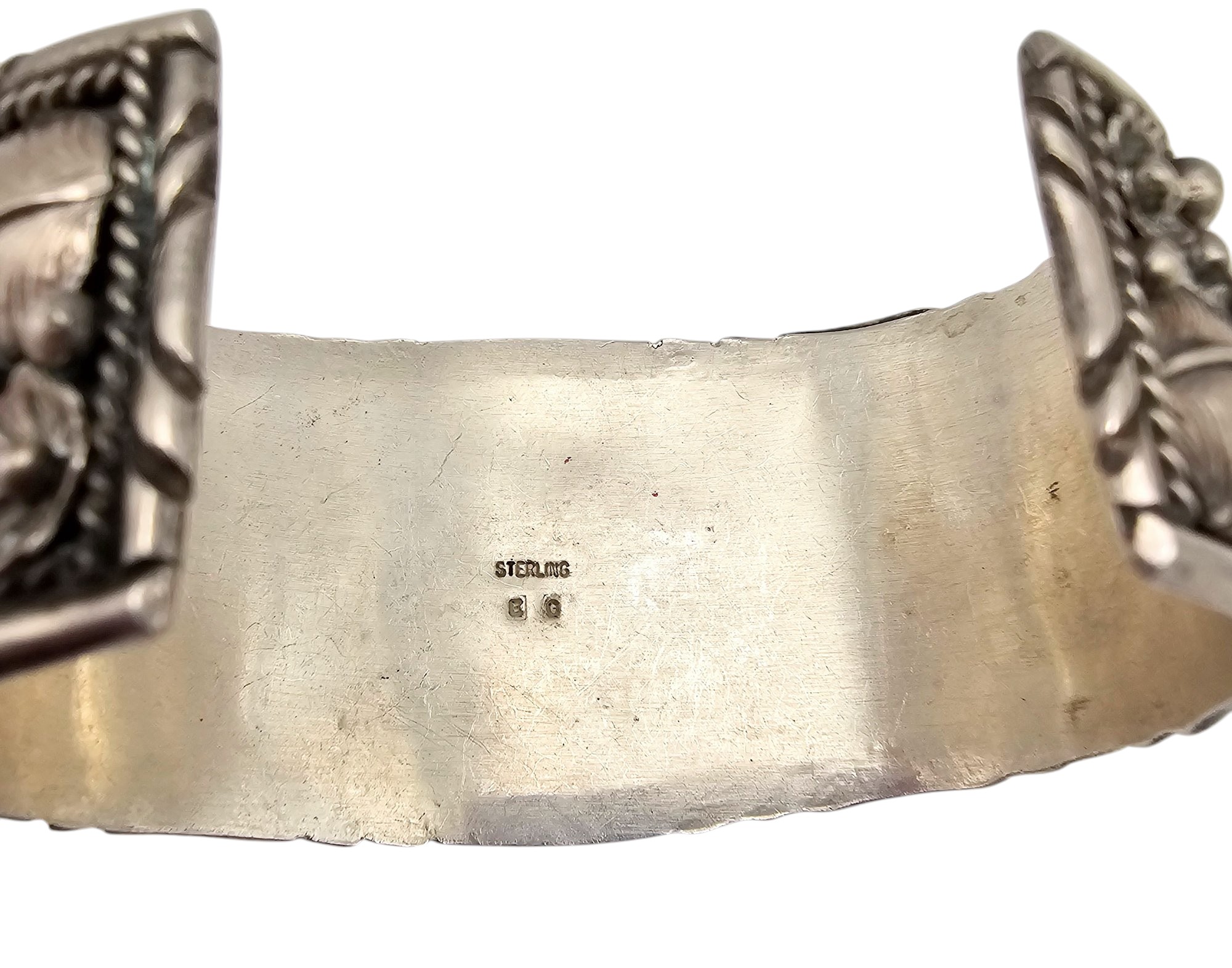 Signed EG Navajo Turquoise Sterling Silver Cuff Bracelet 66 G