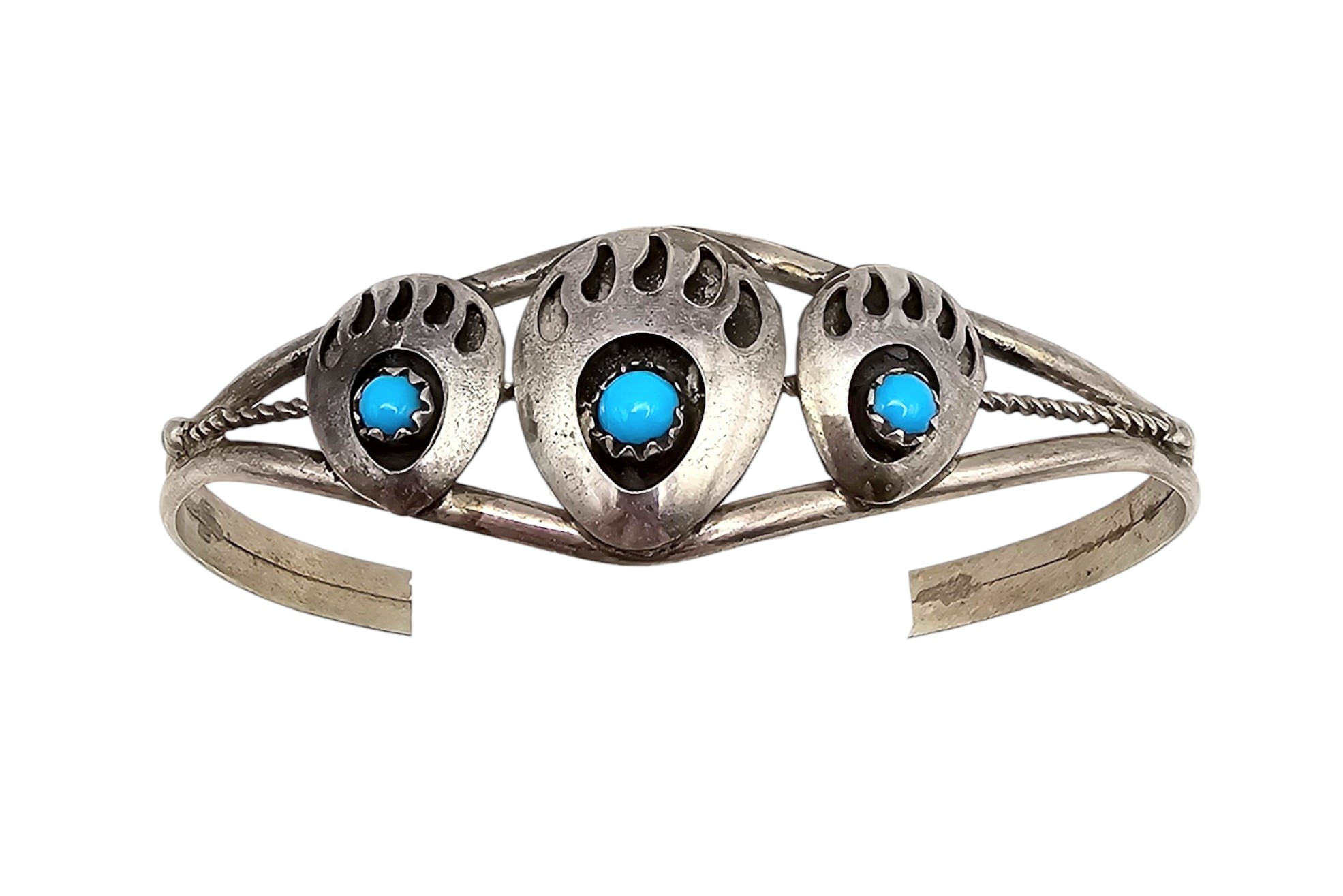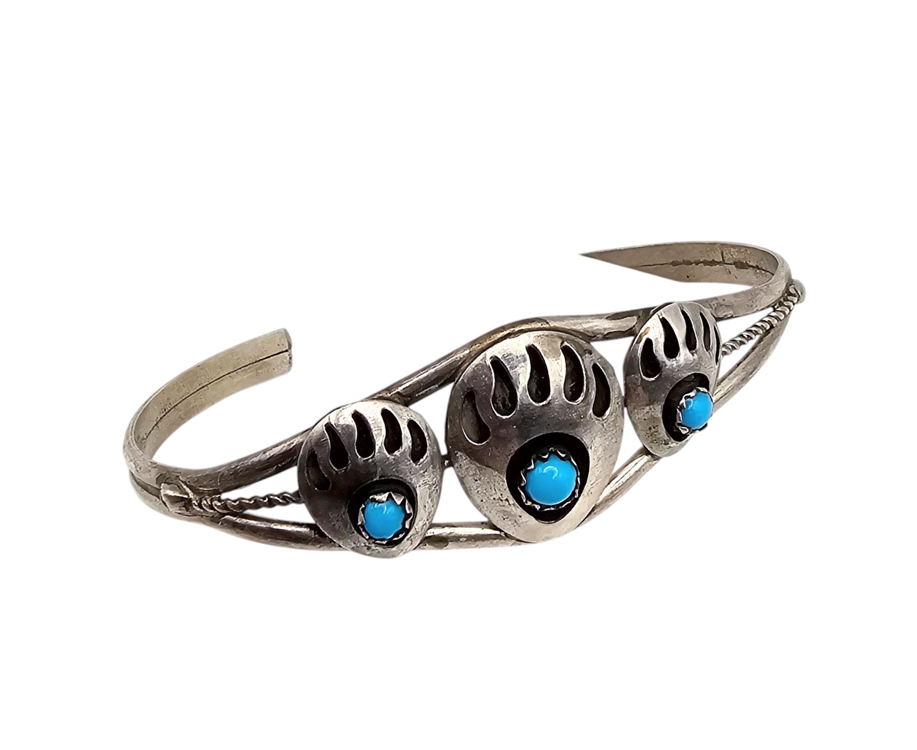 Navajo Turquoise Sterling Silver Bear Paw Cuff Bracelet 7.9 G