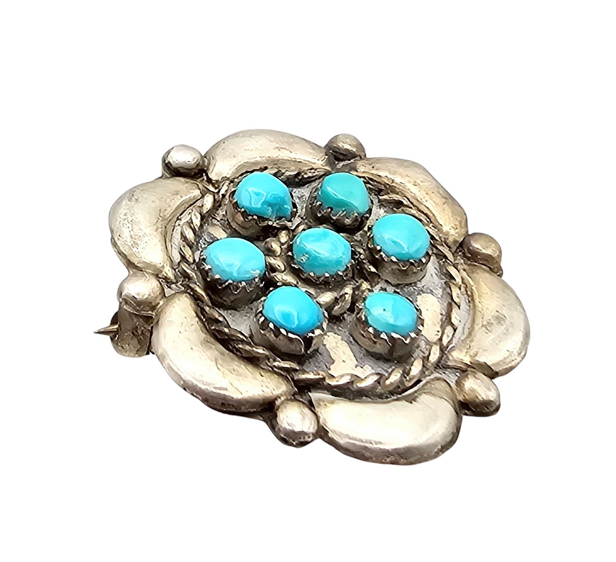 Navajo Turquoise Sterling Silver Brooch 3.8 G