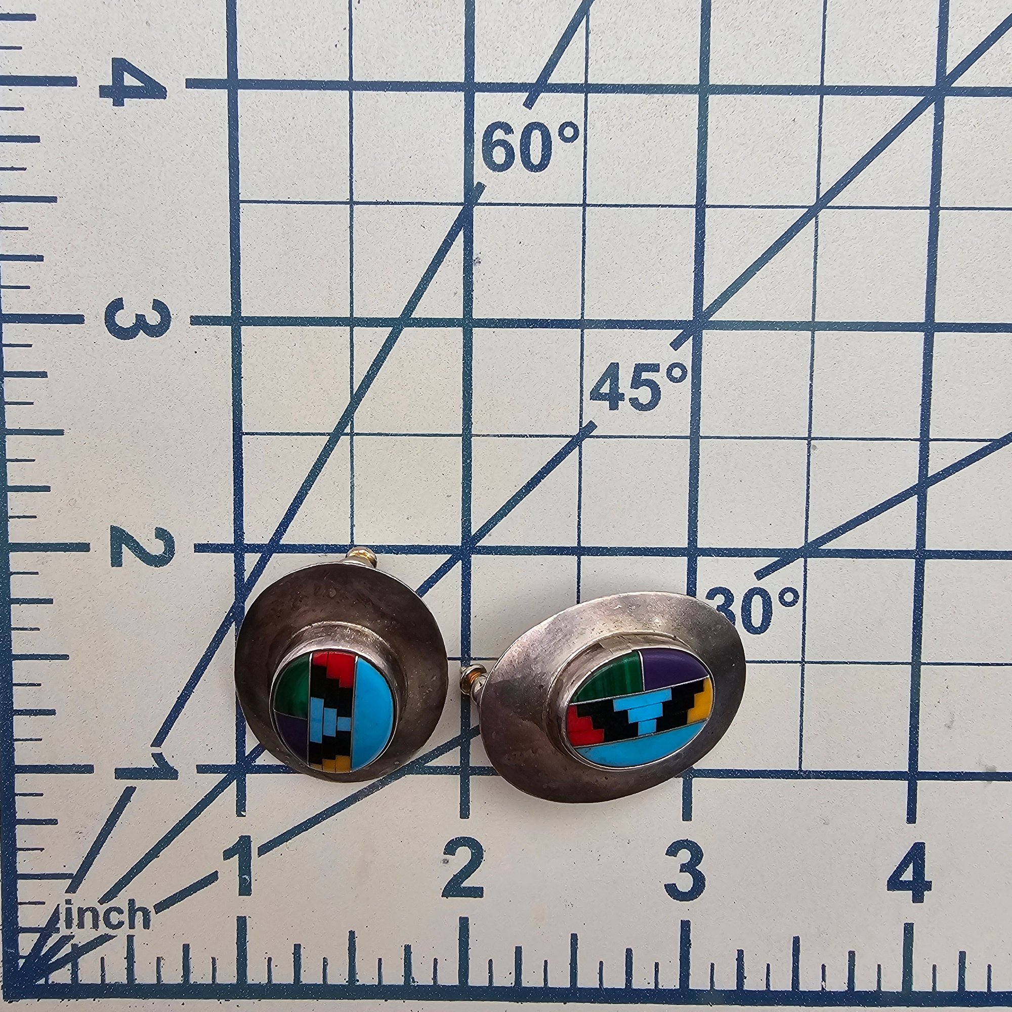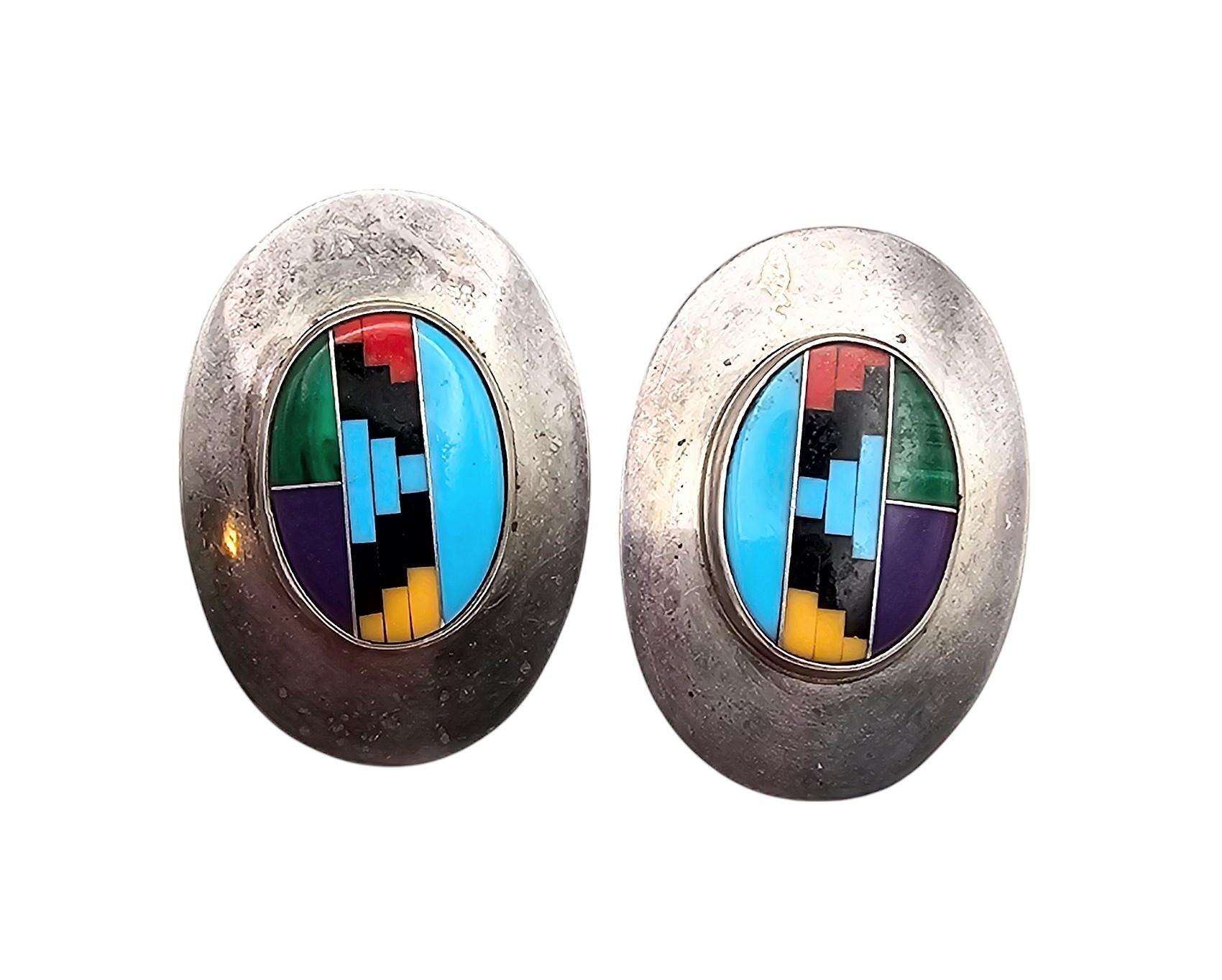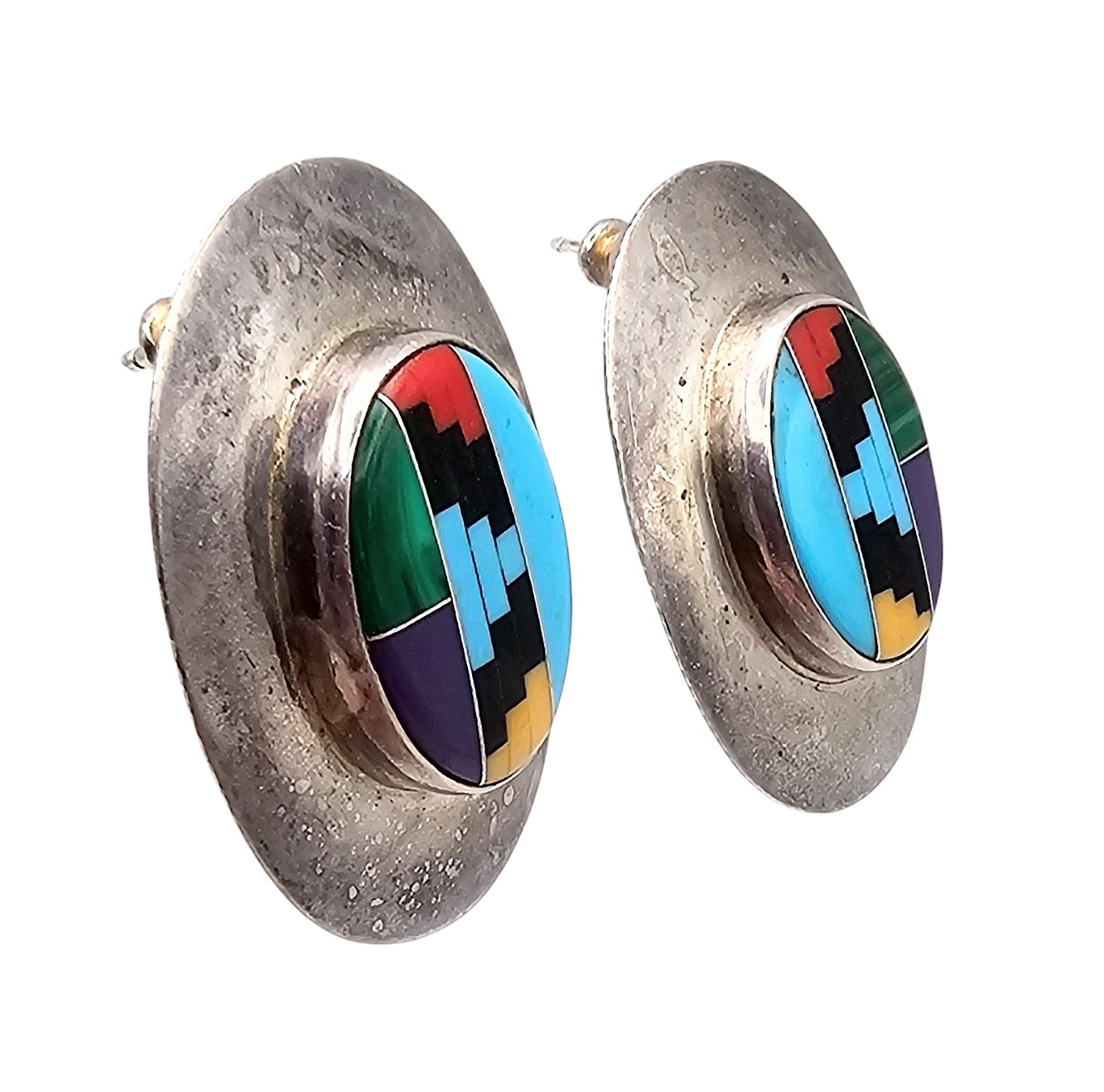 Navajo Turquoise Spiny Oyster Onyx Coral Malachite Sterling Silver Earrings 8.9 G