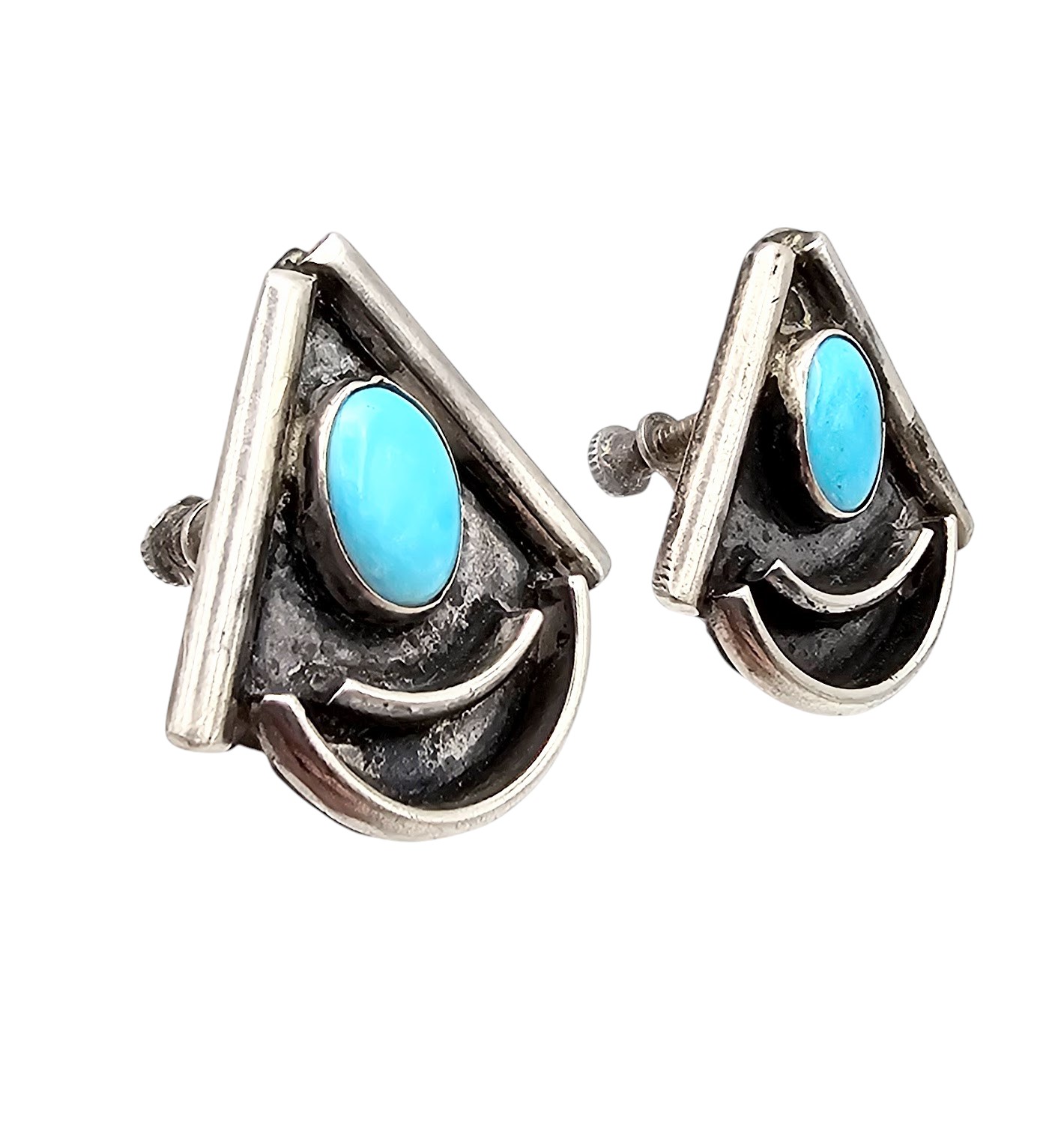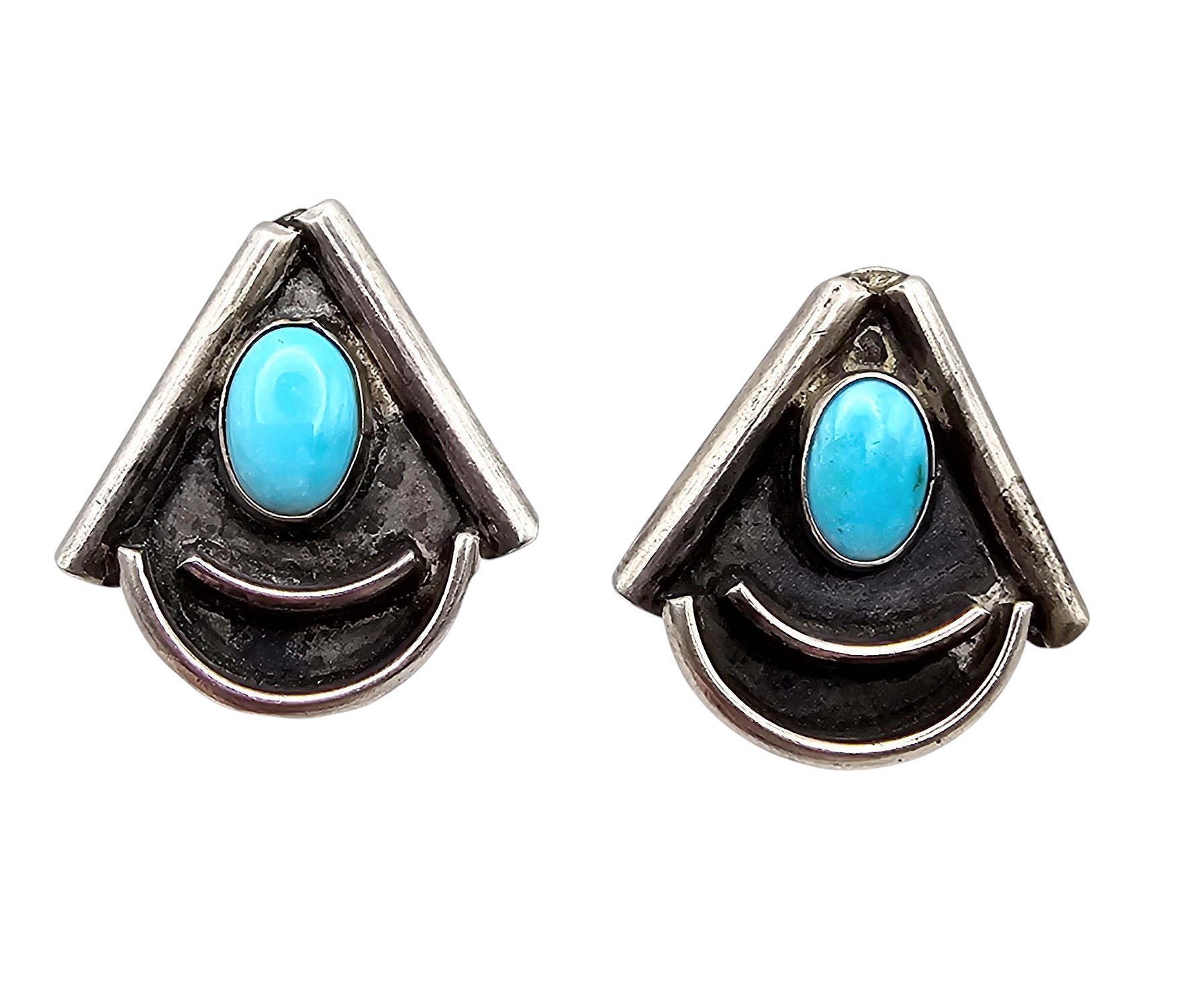 Native Turquoise Sterling Silver Earrings 9.1 G