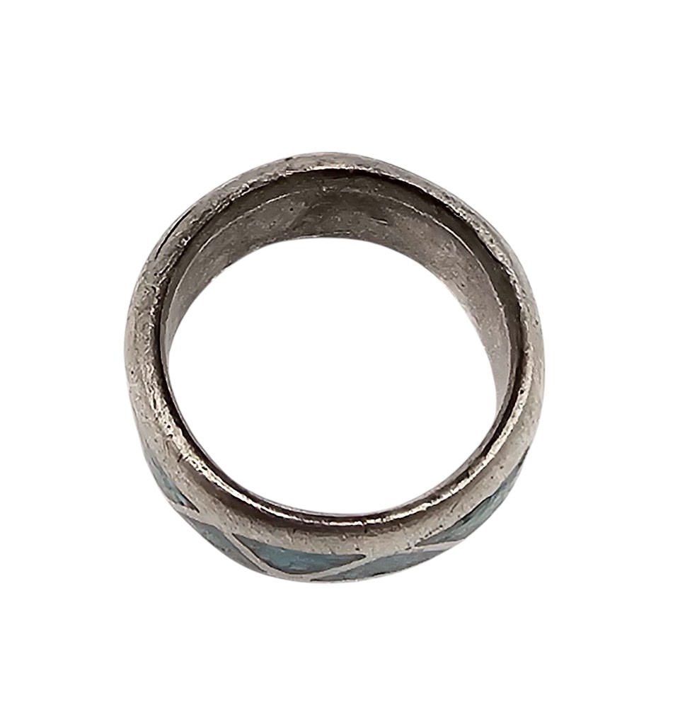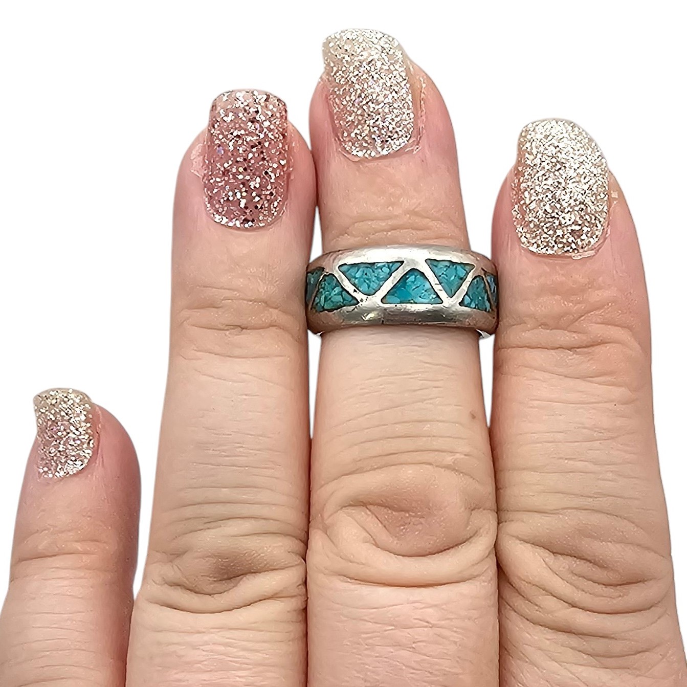 Navajo Crushed Turquoise Sterling Silver Ring Size 5.75 6.7 G