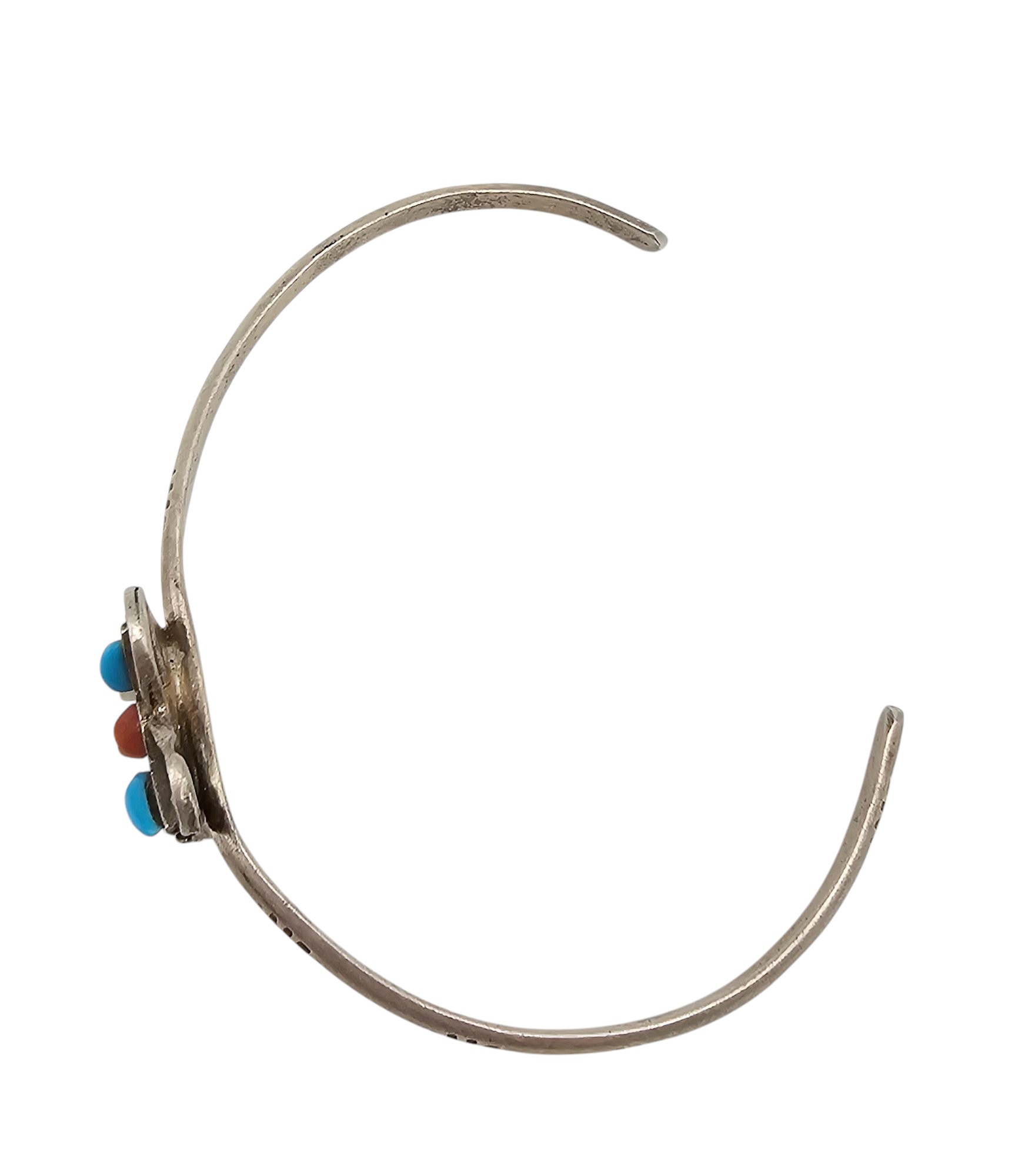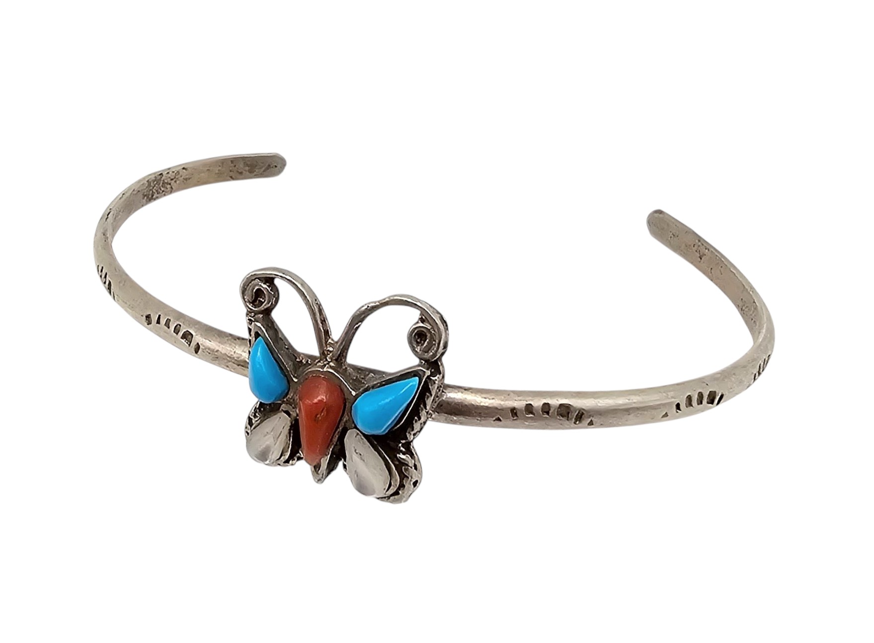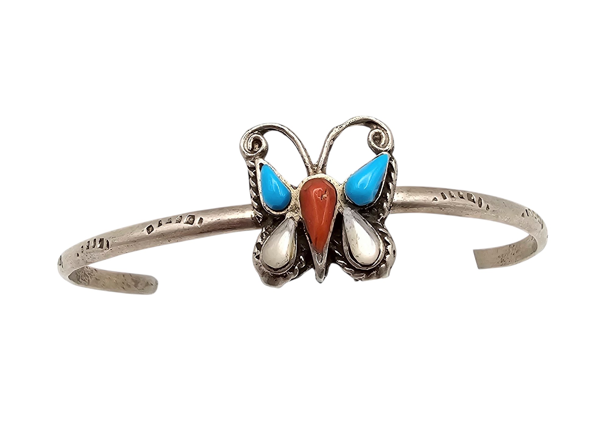 Native Turquoise Coral Mother Of Pearl Sterling Silver Butterfly Cuff Bracelet 9.7 G