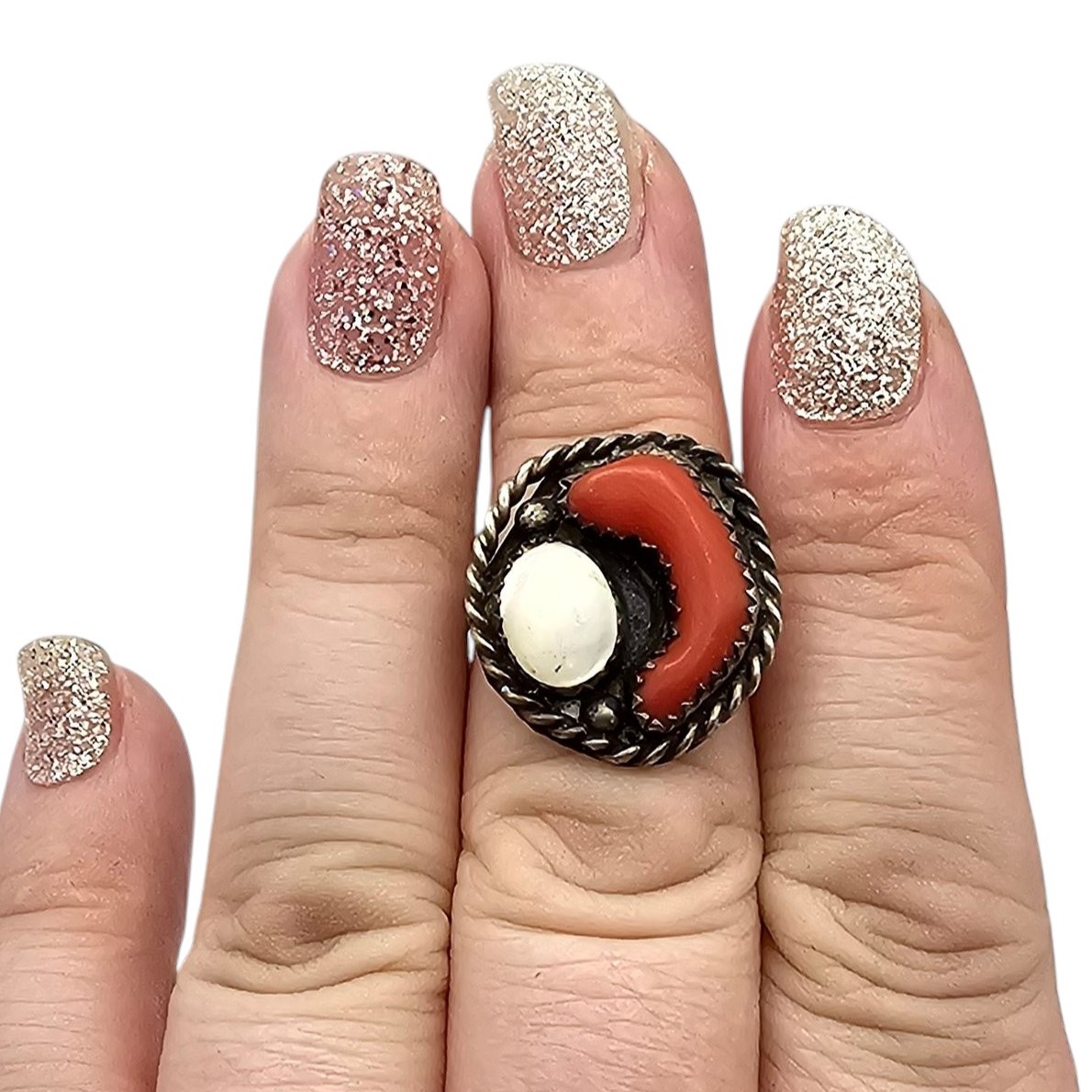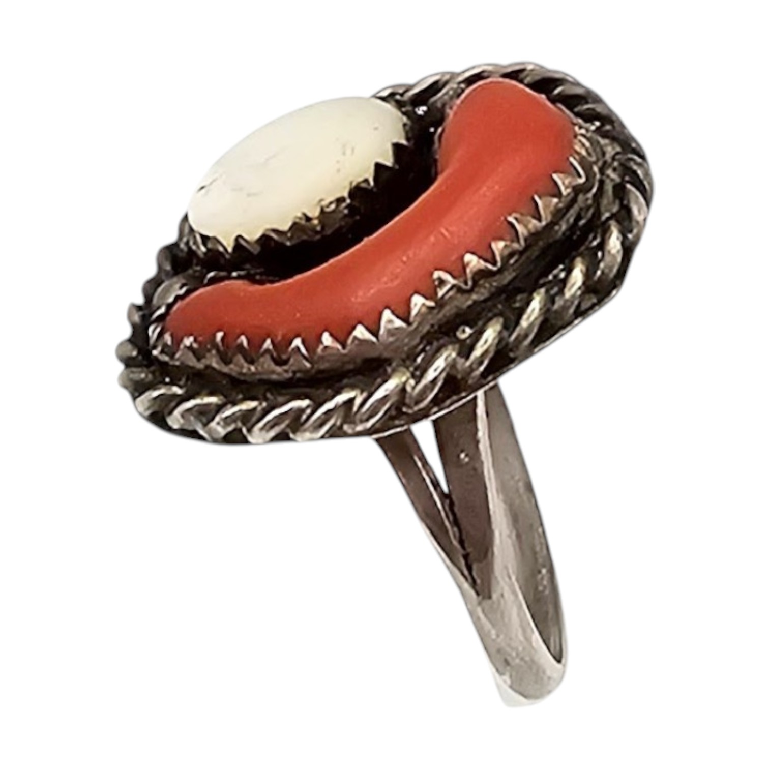 Navajo Coral Mother Of Pearl Sterling Silver Ring Size 6.5 4.7 G