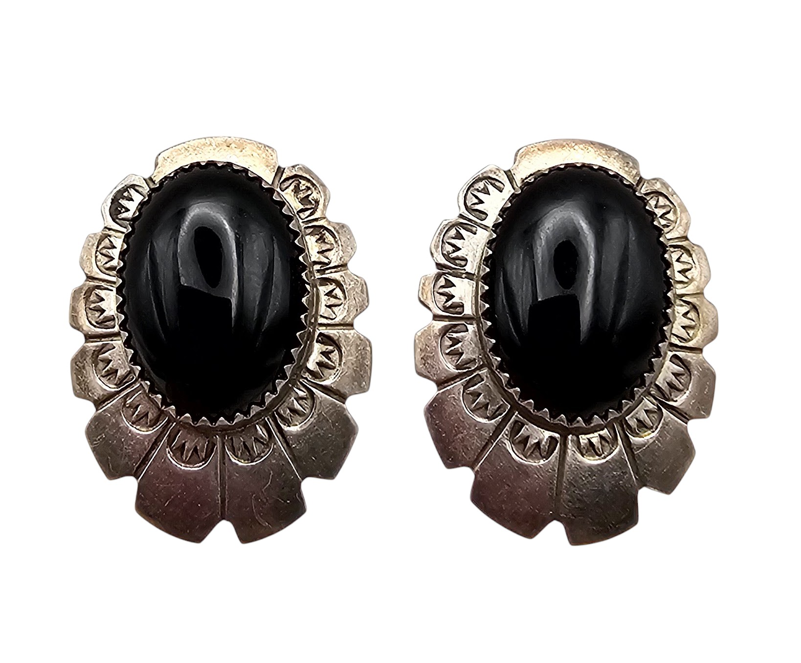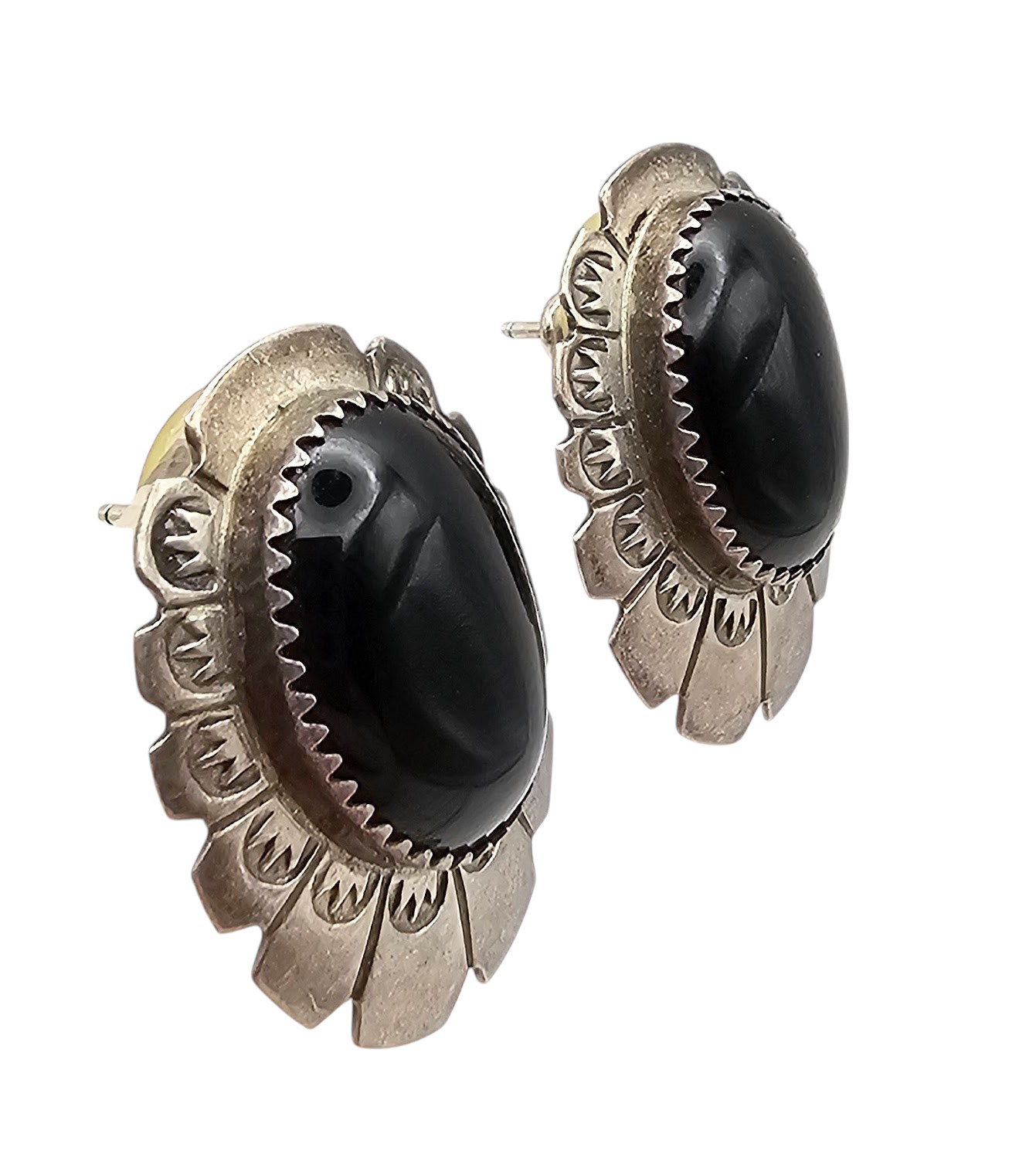 Larry Sandoval Onyx Sterling Silver Earrings 11.2 G