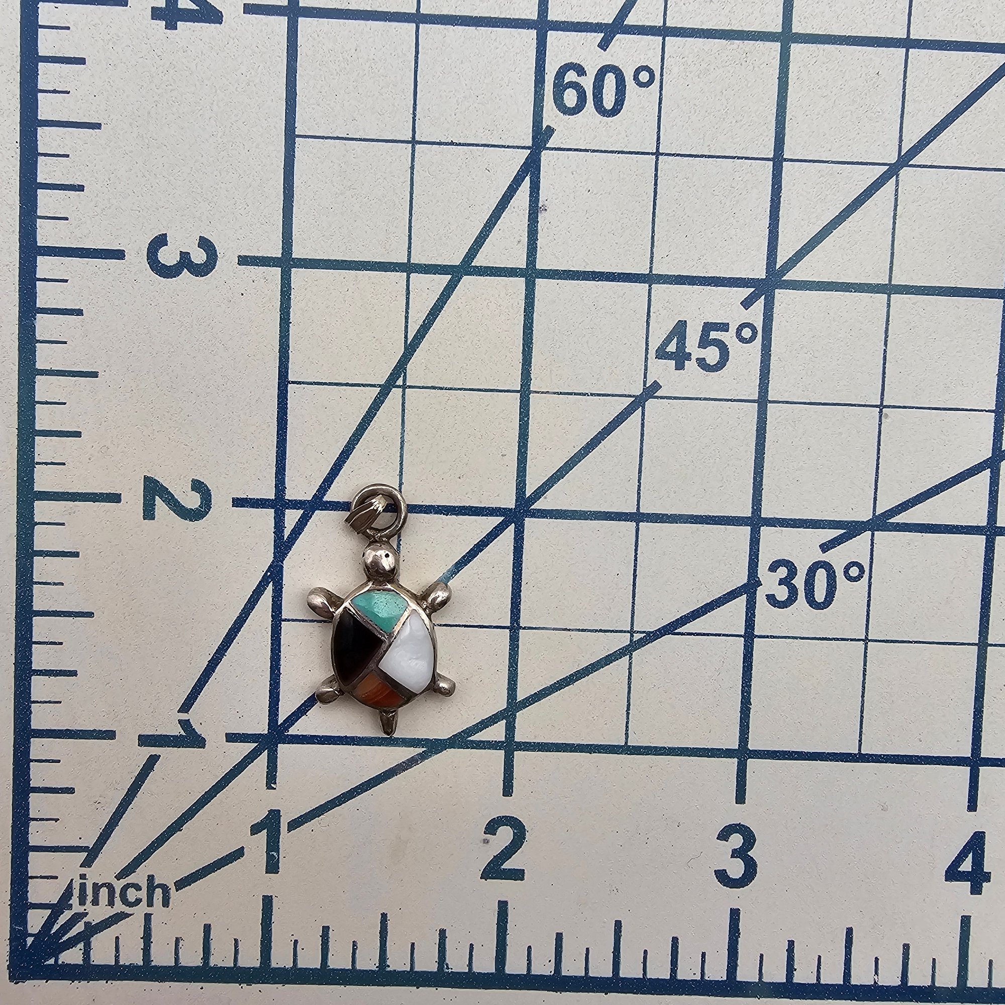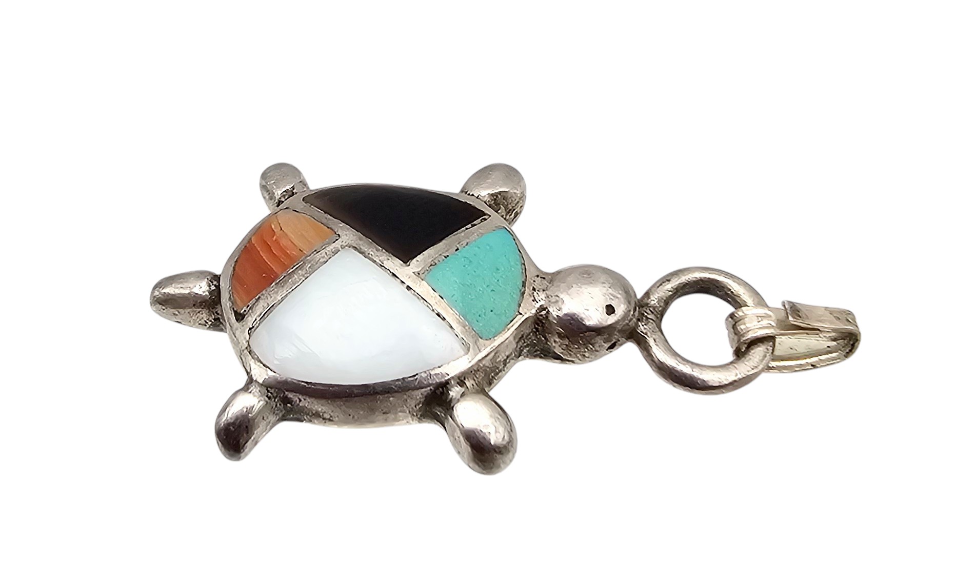 Southwestern Turquoise Mother Of Pearl Onyx Spiny oyster sterling Silver Turtle Pendant 3.9 G