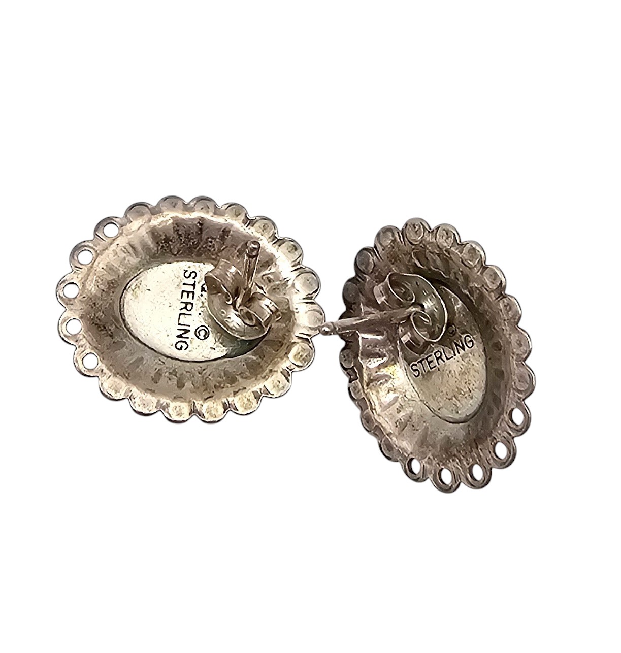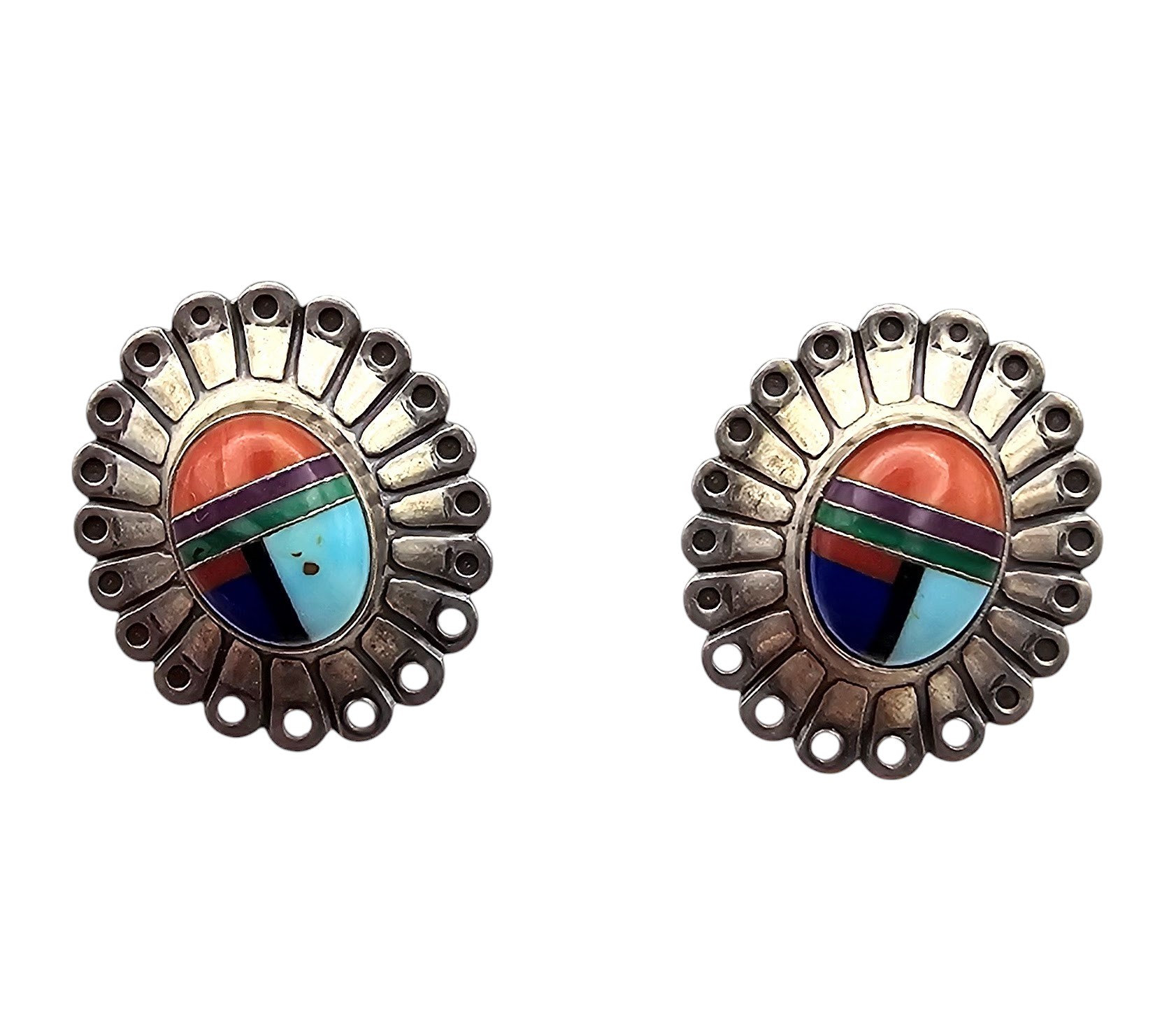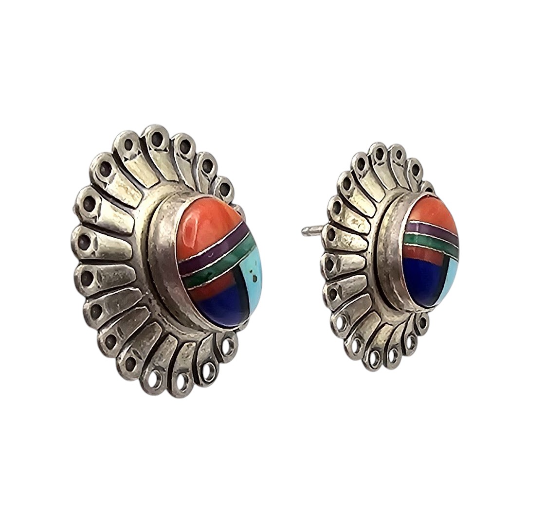 Quoc Trading Turquoise Lapis Coral Malachite Sterling Silver Earrings 2.9 G