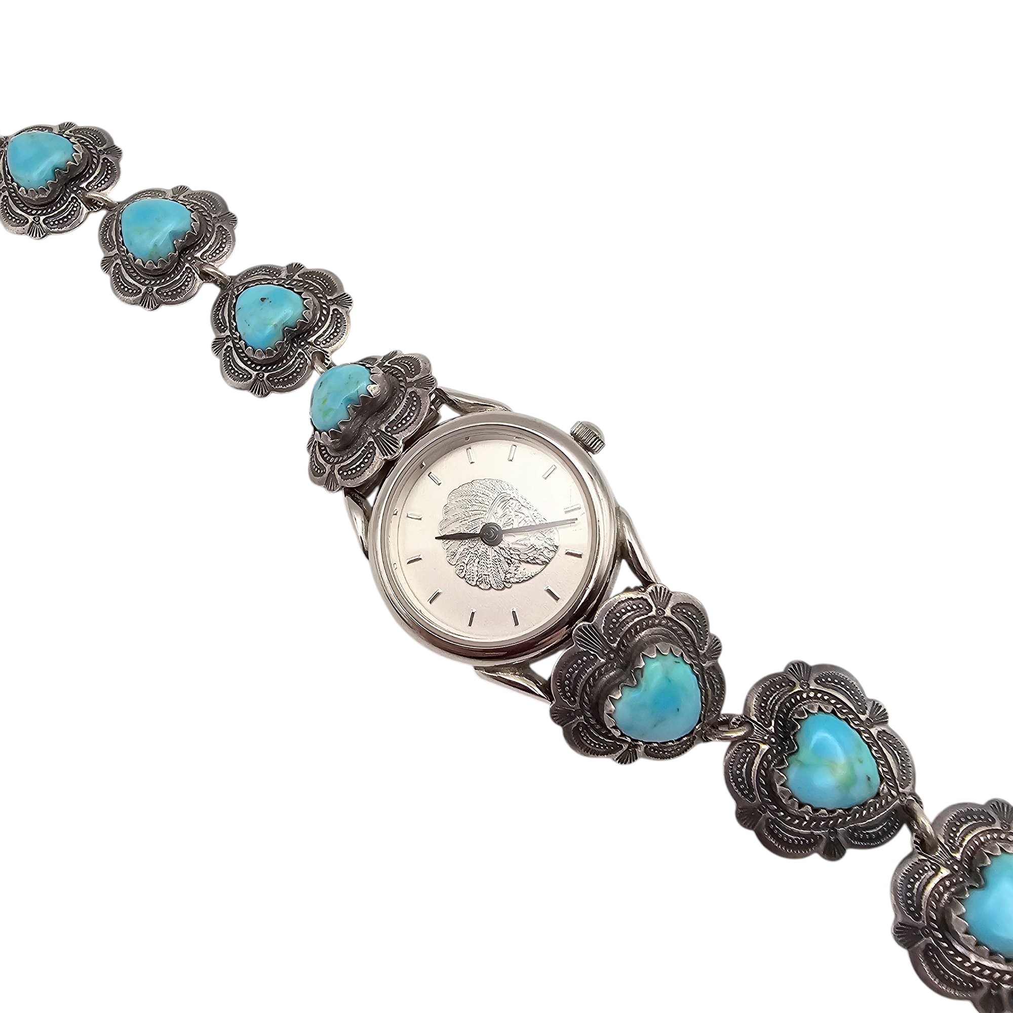 Quoc Trading Turquoise Sterling Silver Heart Watch Band Watch 25.3 G