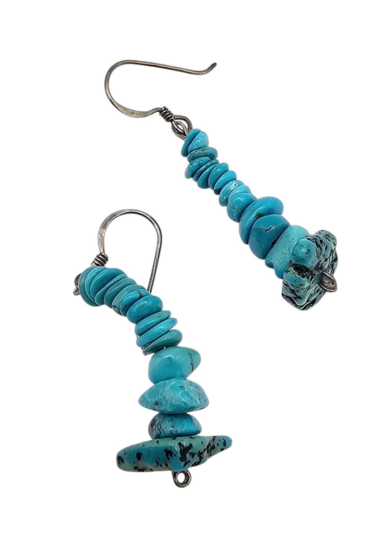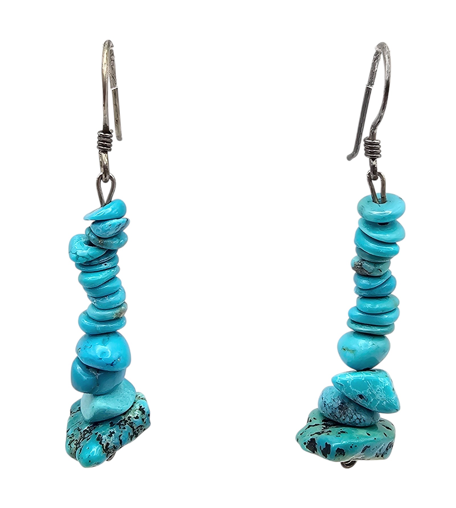 Southwestern Turquoise Chunk Sterling Silver Drop Dangle Earrings 3.5 G