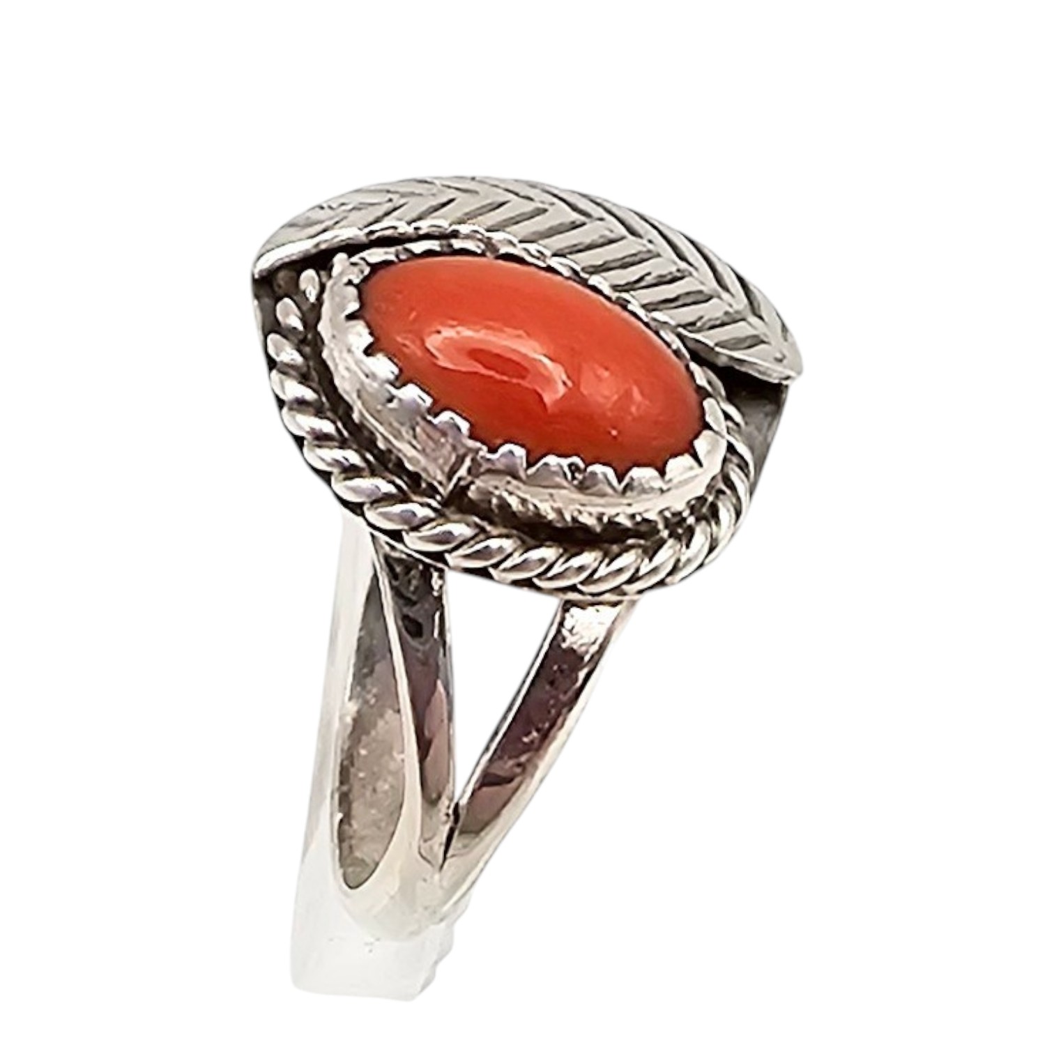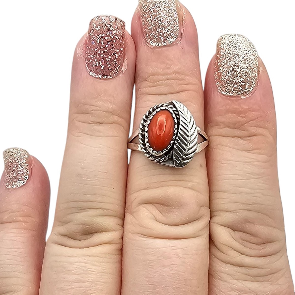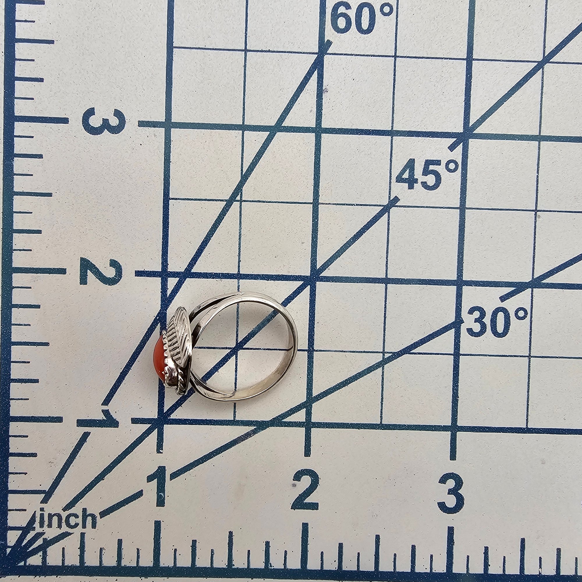 Navajo Coral Sterling Silver Leaf Ring Size 6.75 3.2 G
