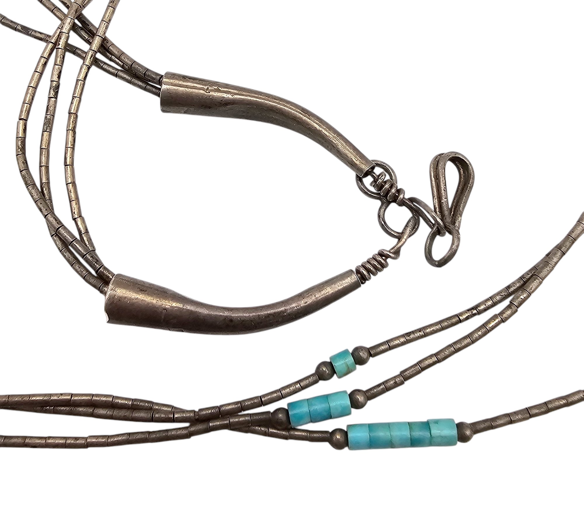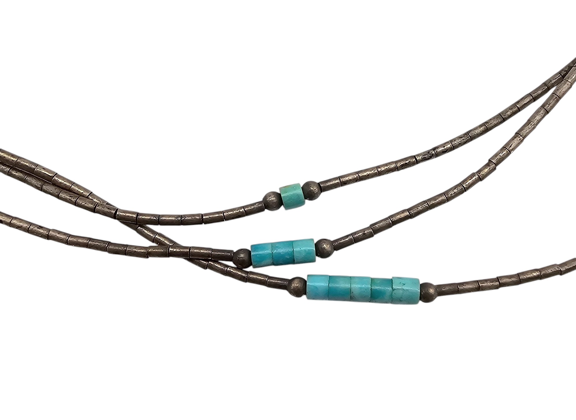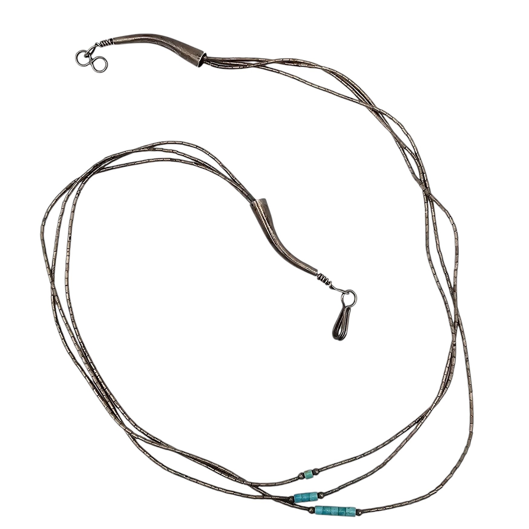 Native Turquoise Liquid Silver Sterling Silver Multi Strand Necklace 7.5 G
