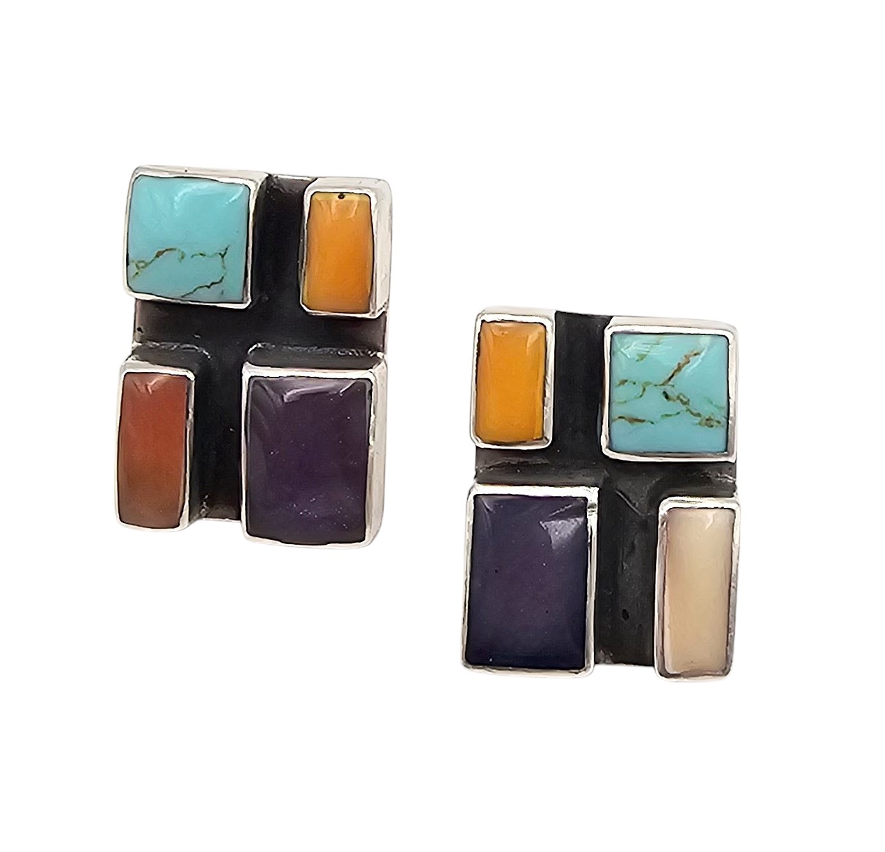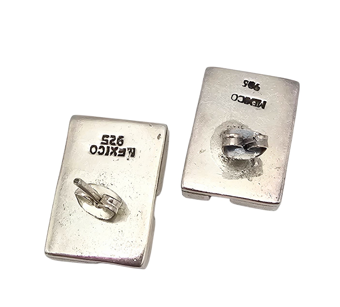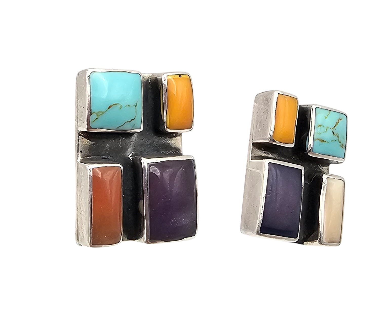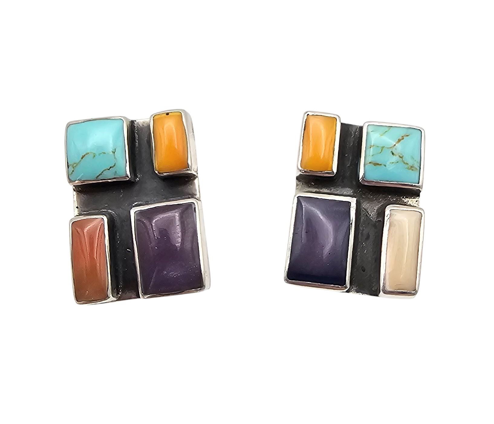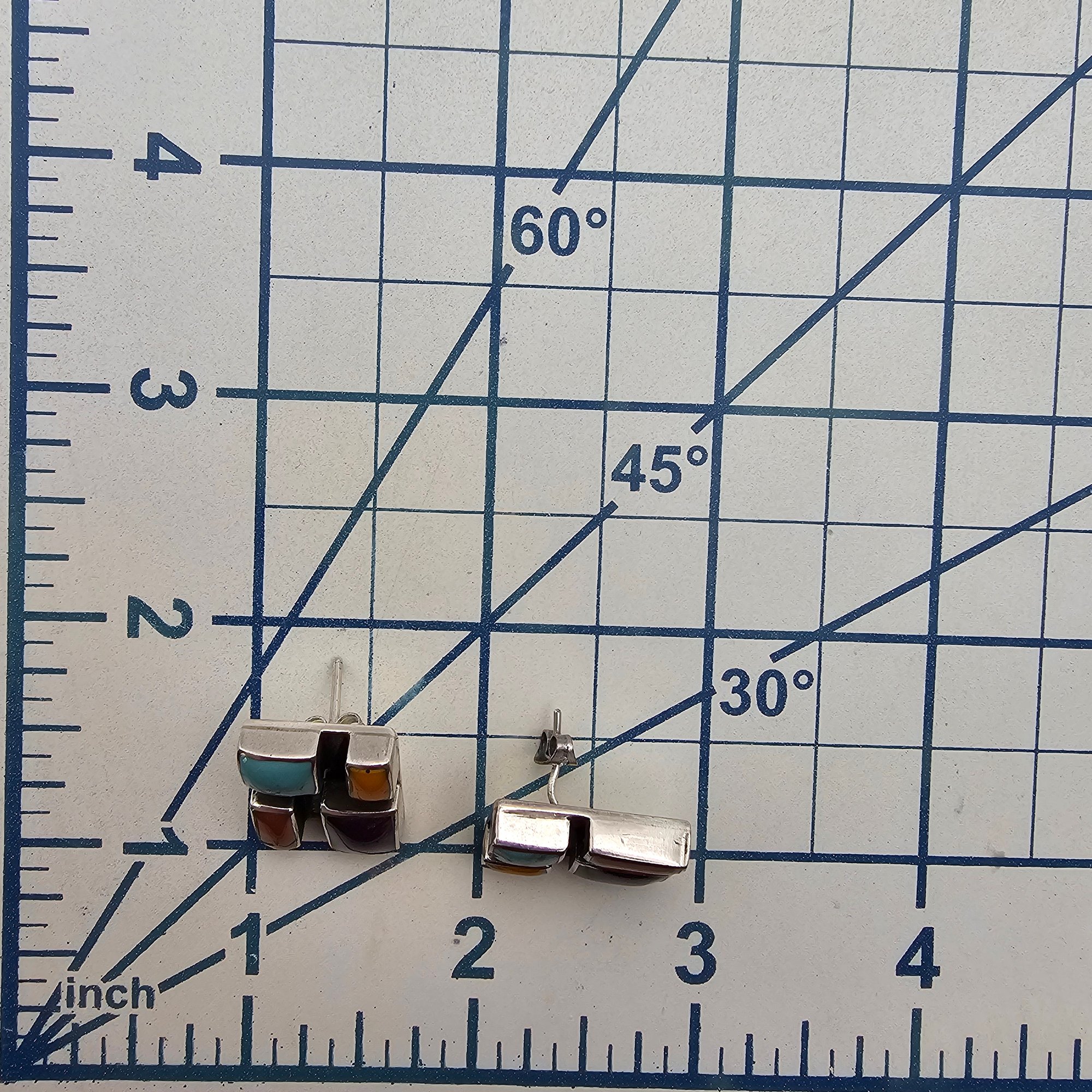 Mexico Turquoise Amethyst Carnelian Sterling Silver Cobblestone Earrings 13.2 G