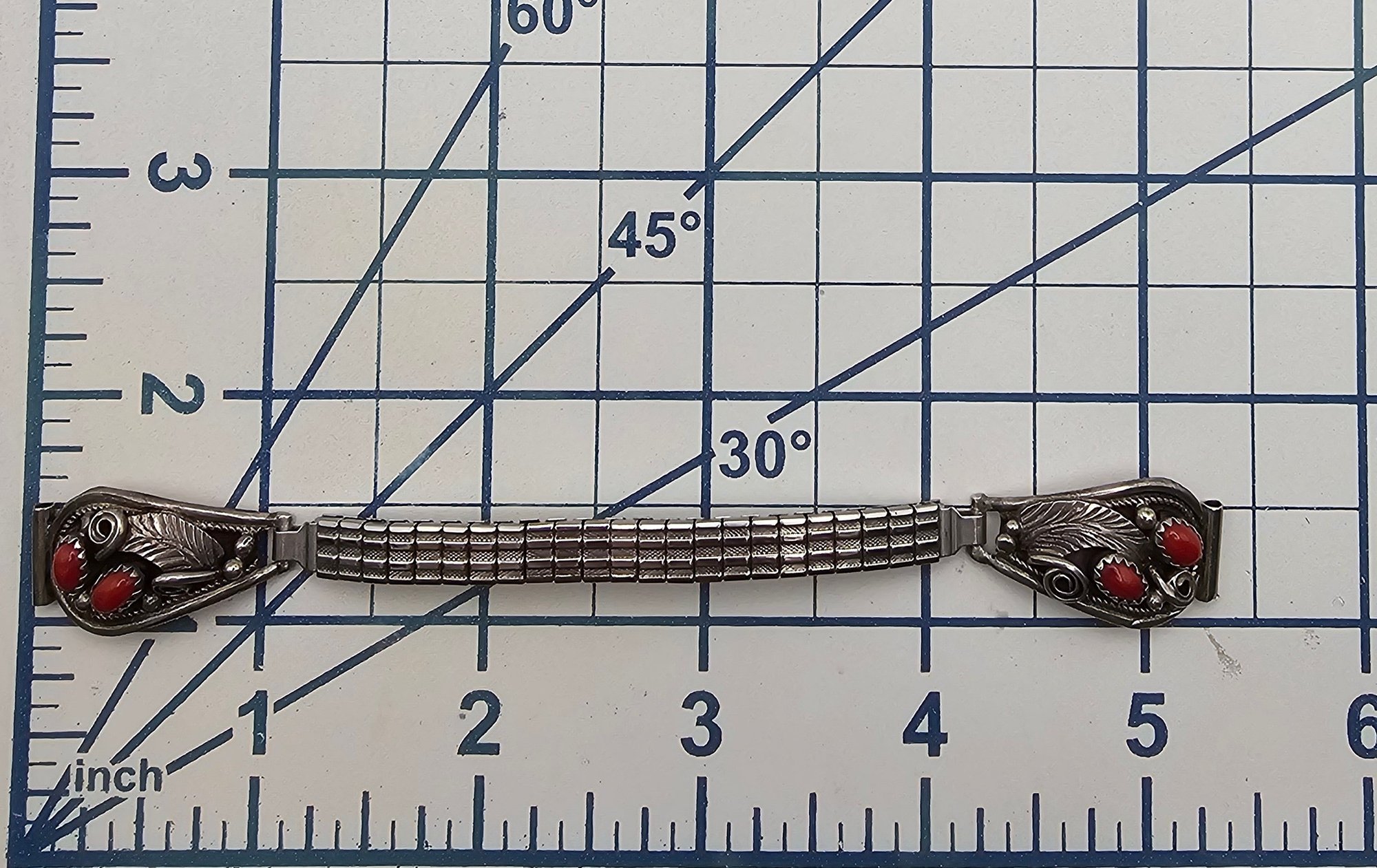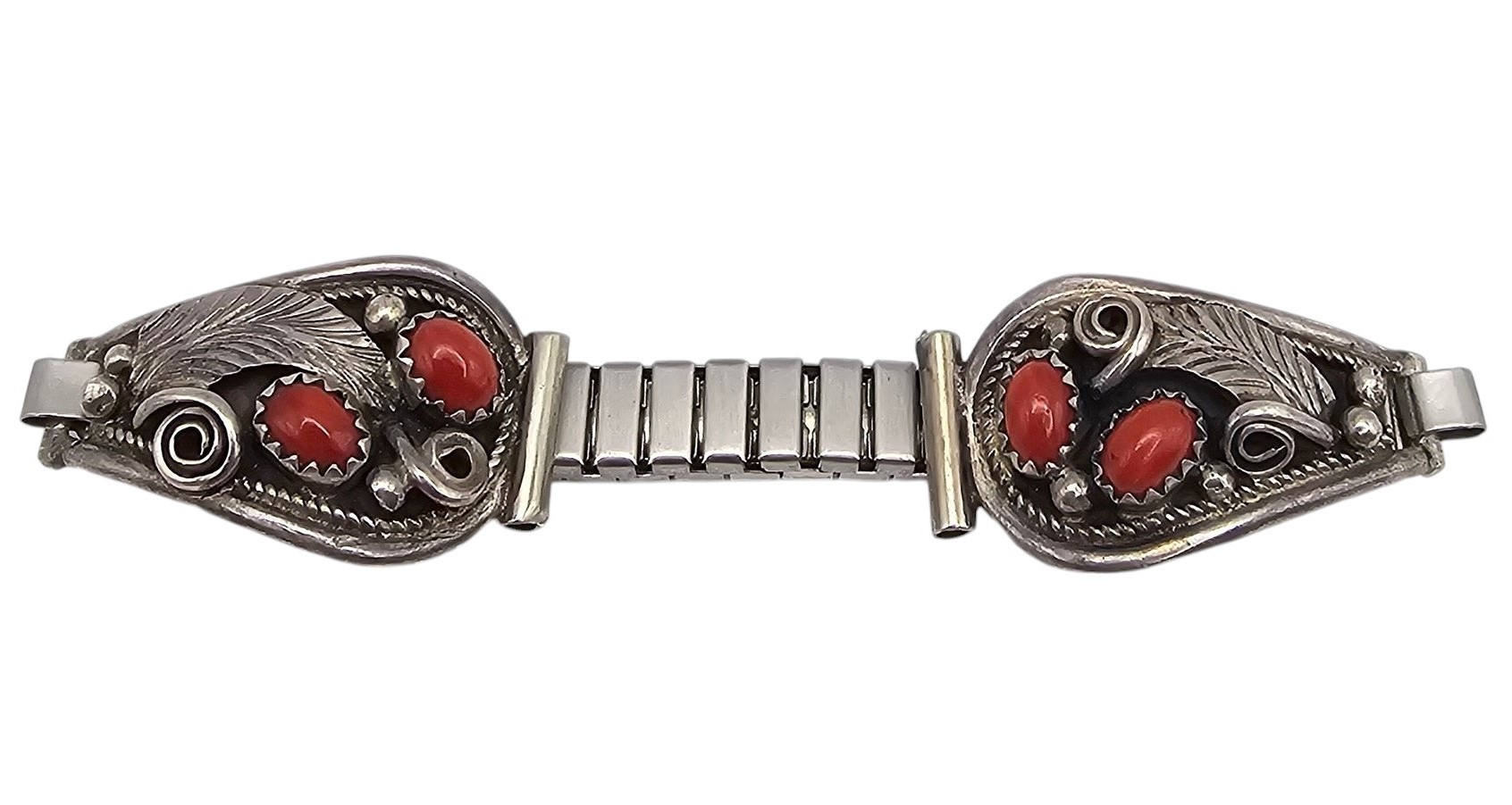 Signed Navajo Coral Sterling Silver Watch Band 13 G