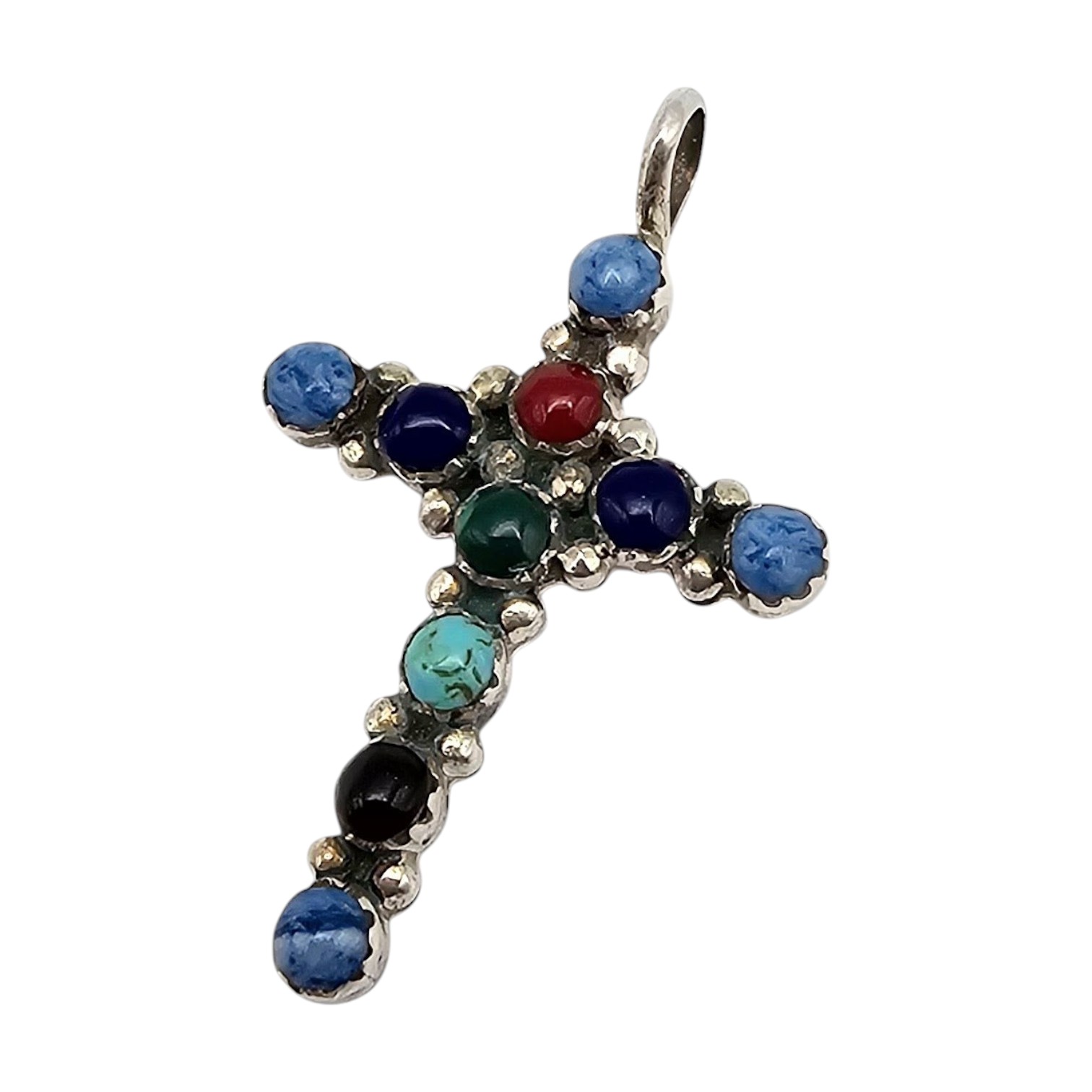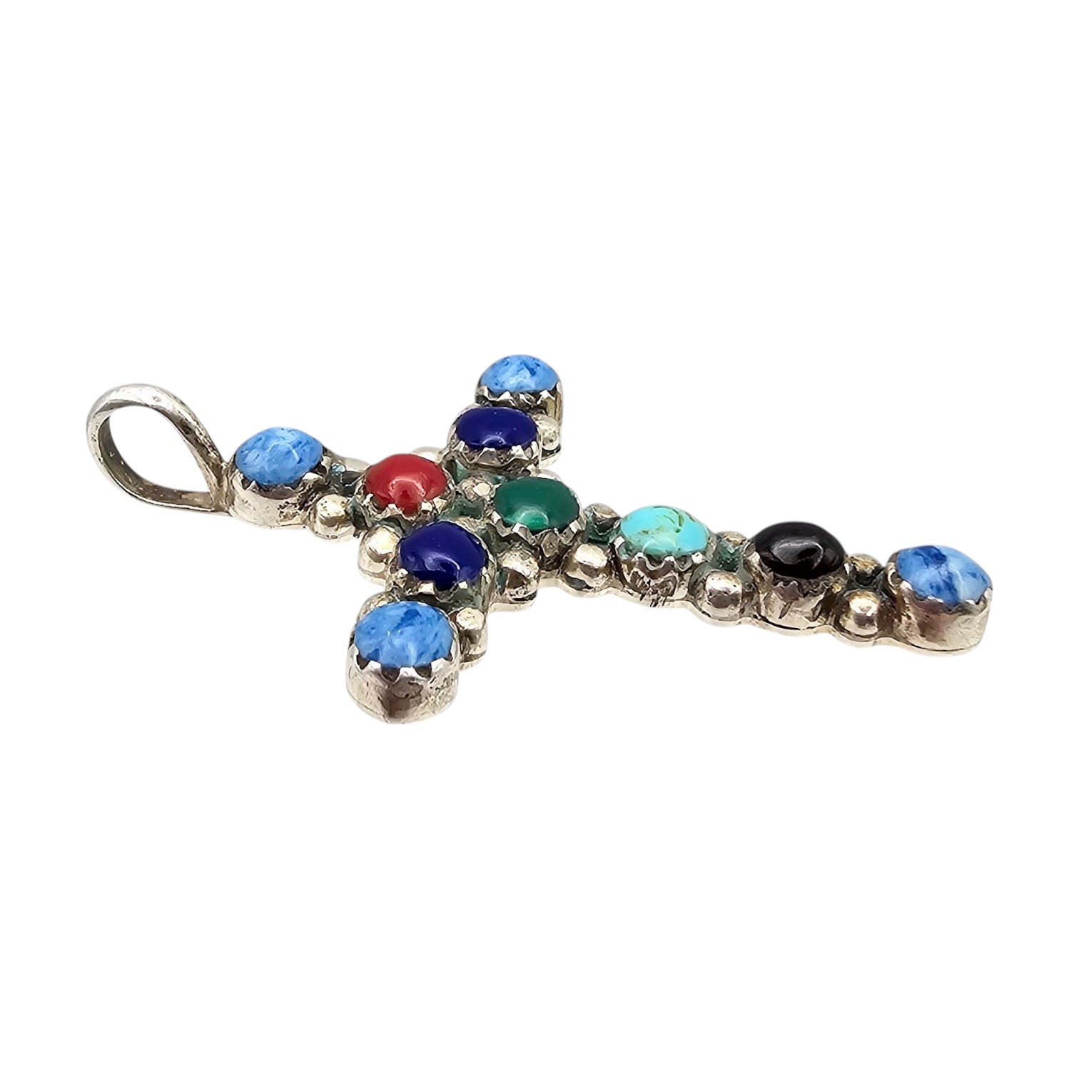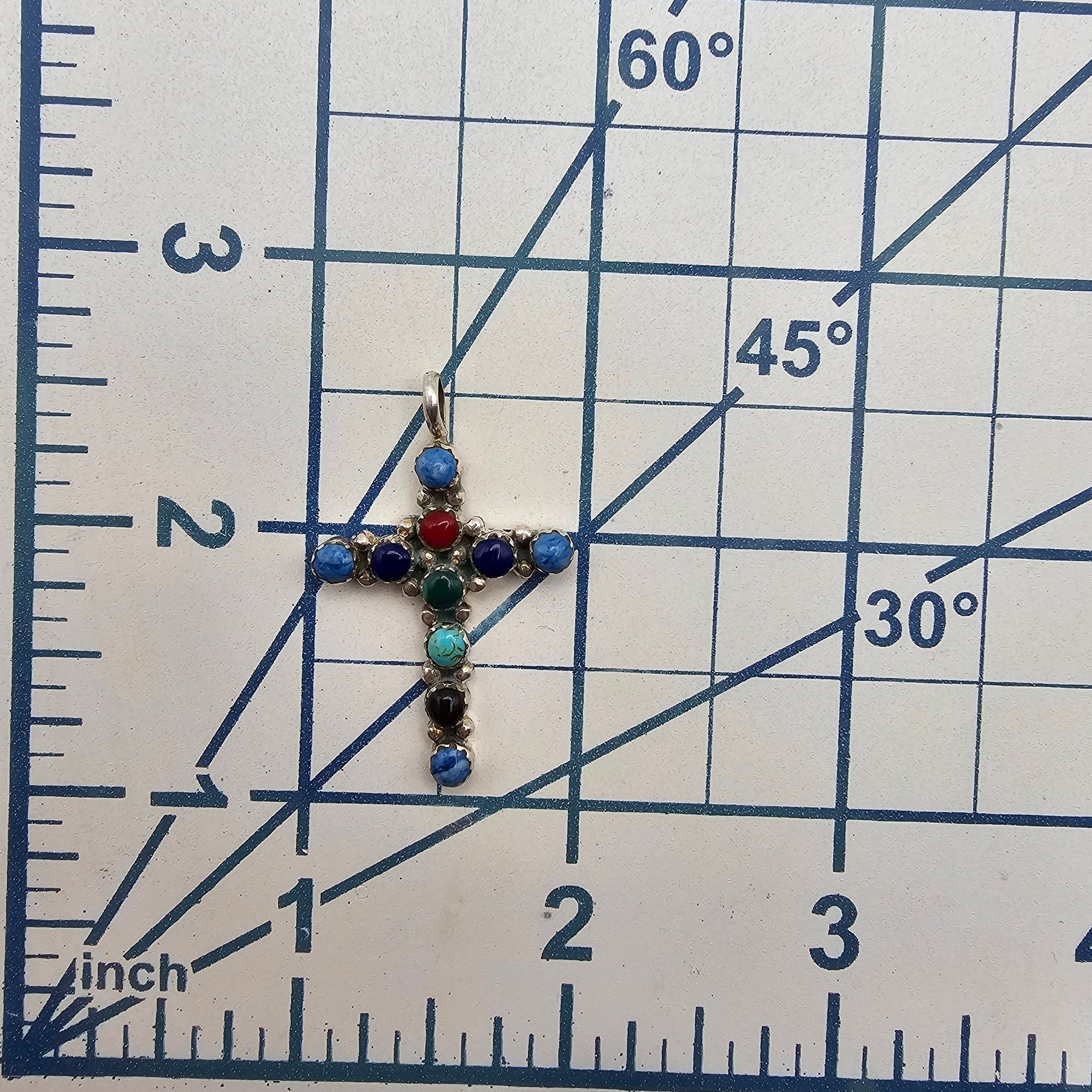 Southwestern multi Stone Sterling Silver Cross Pendant 3.3 G