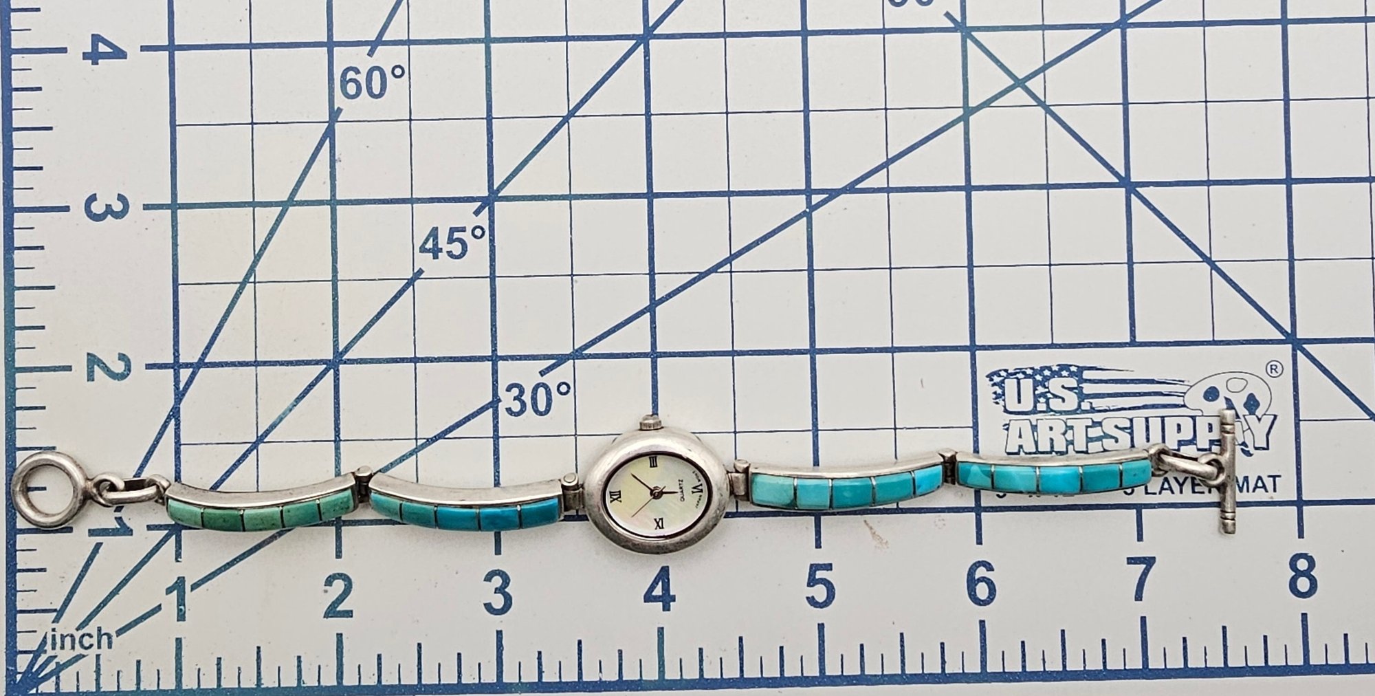 Southwestern Turquoise abalone Sterling Silver Toggle Watch 30.4 G