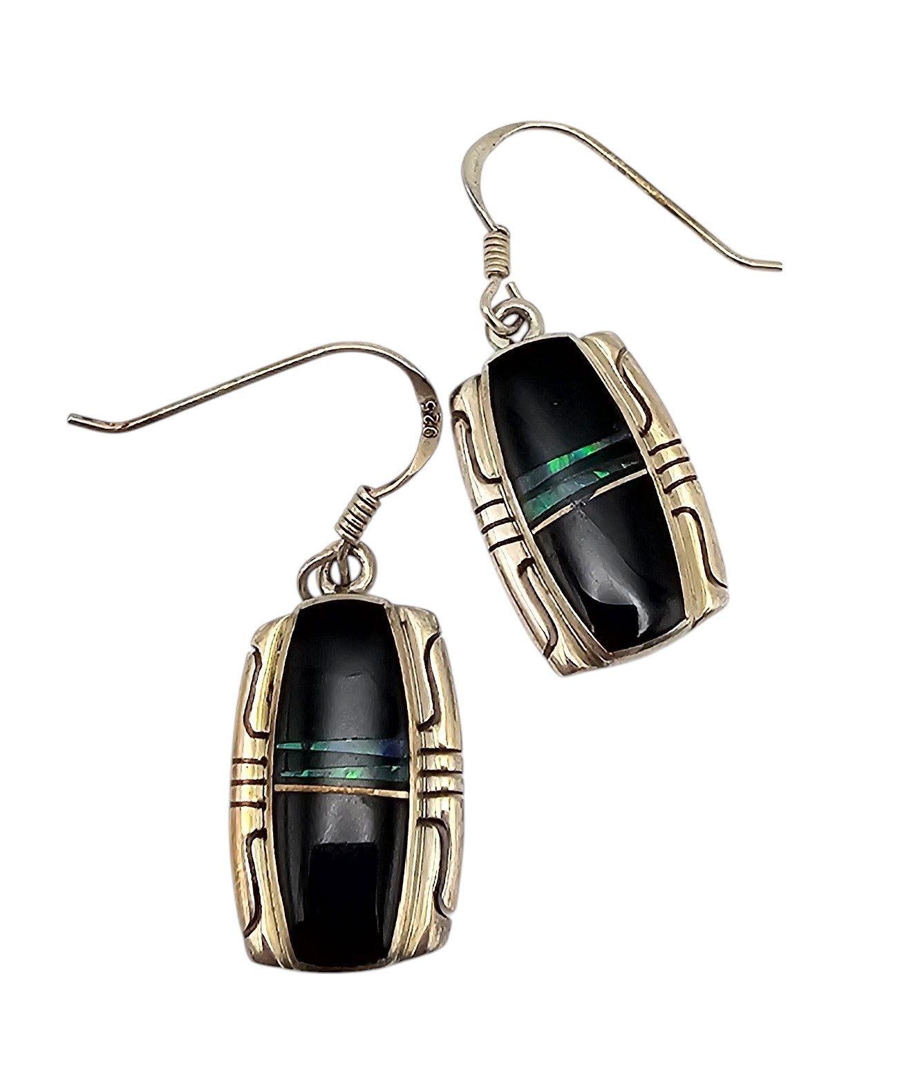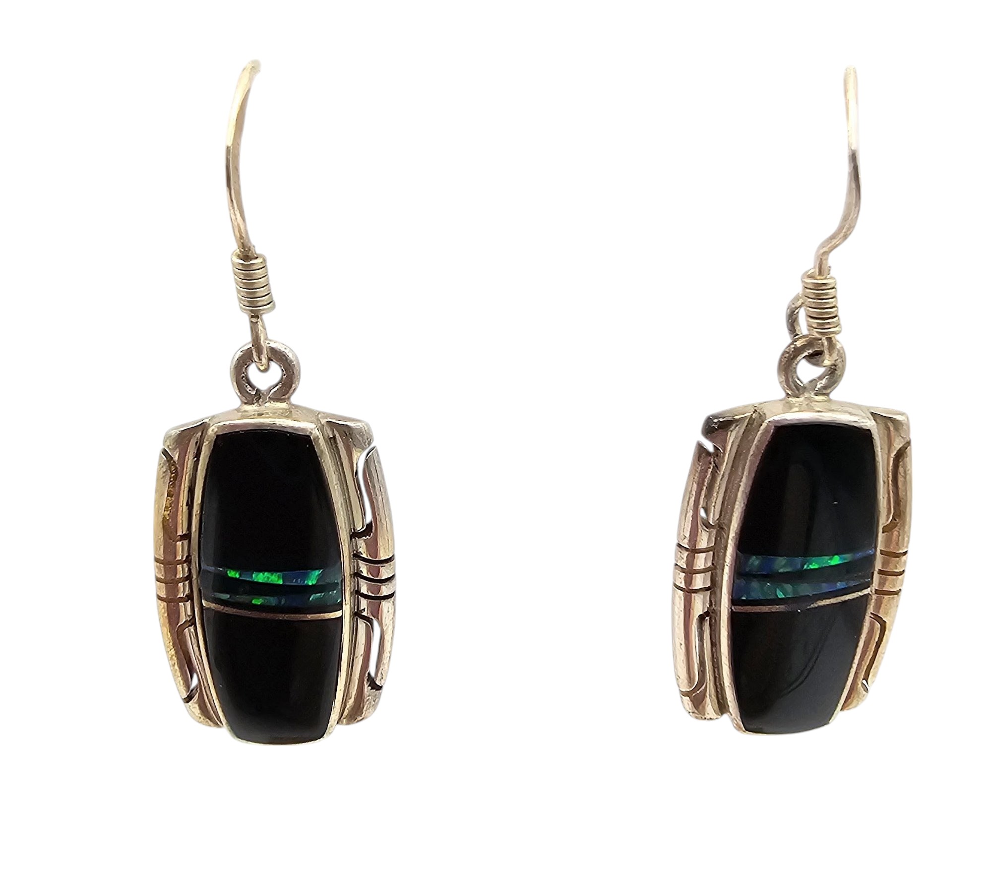 Robert Vandover Navajo Onyx Opal Sterling Silver Drop Dangle Earrings 4.9 G