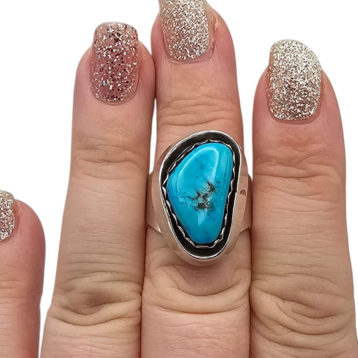 Navajo Turquoise Sterling Silver Ring Size 7.25 10.3 G