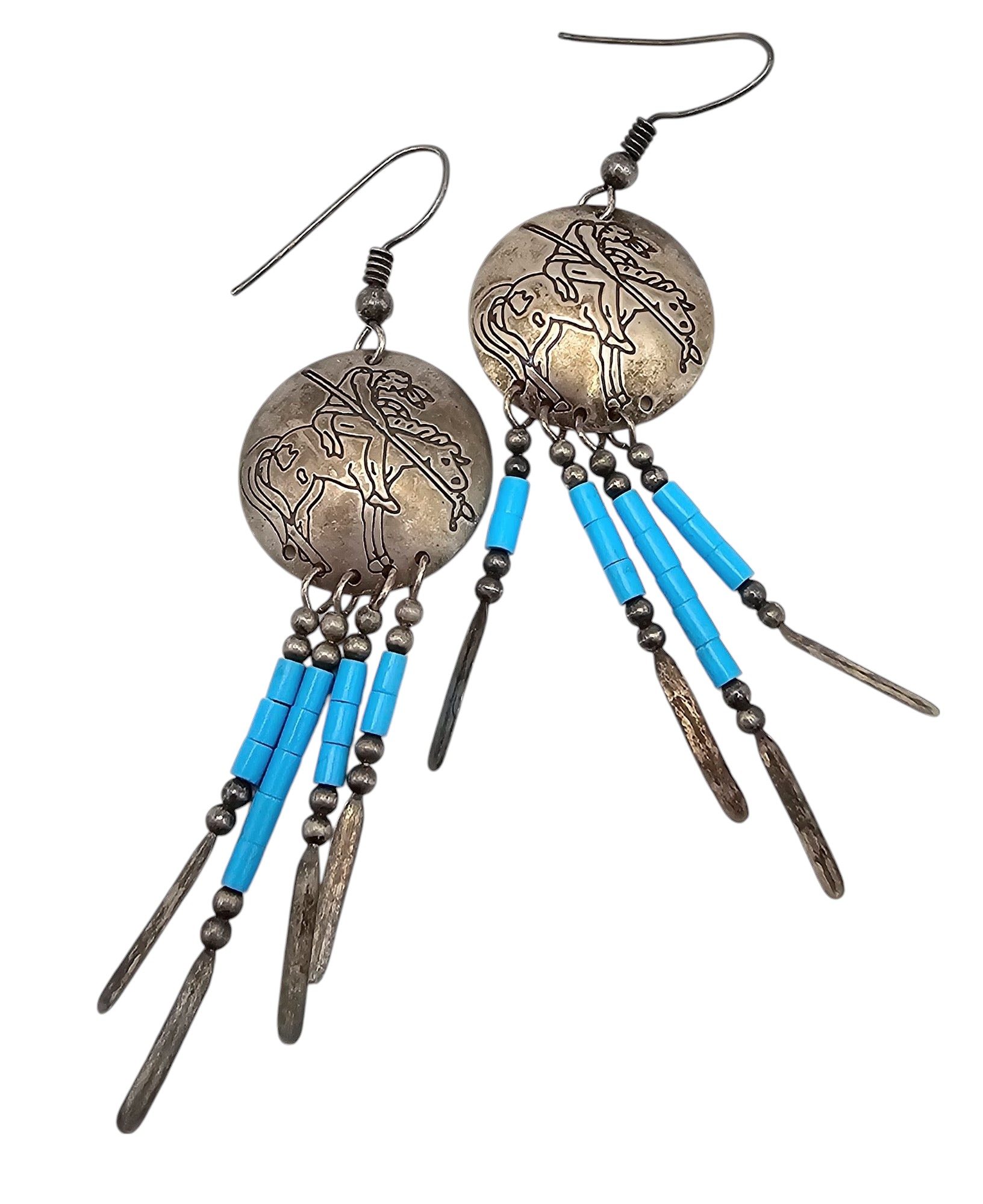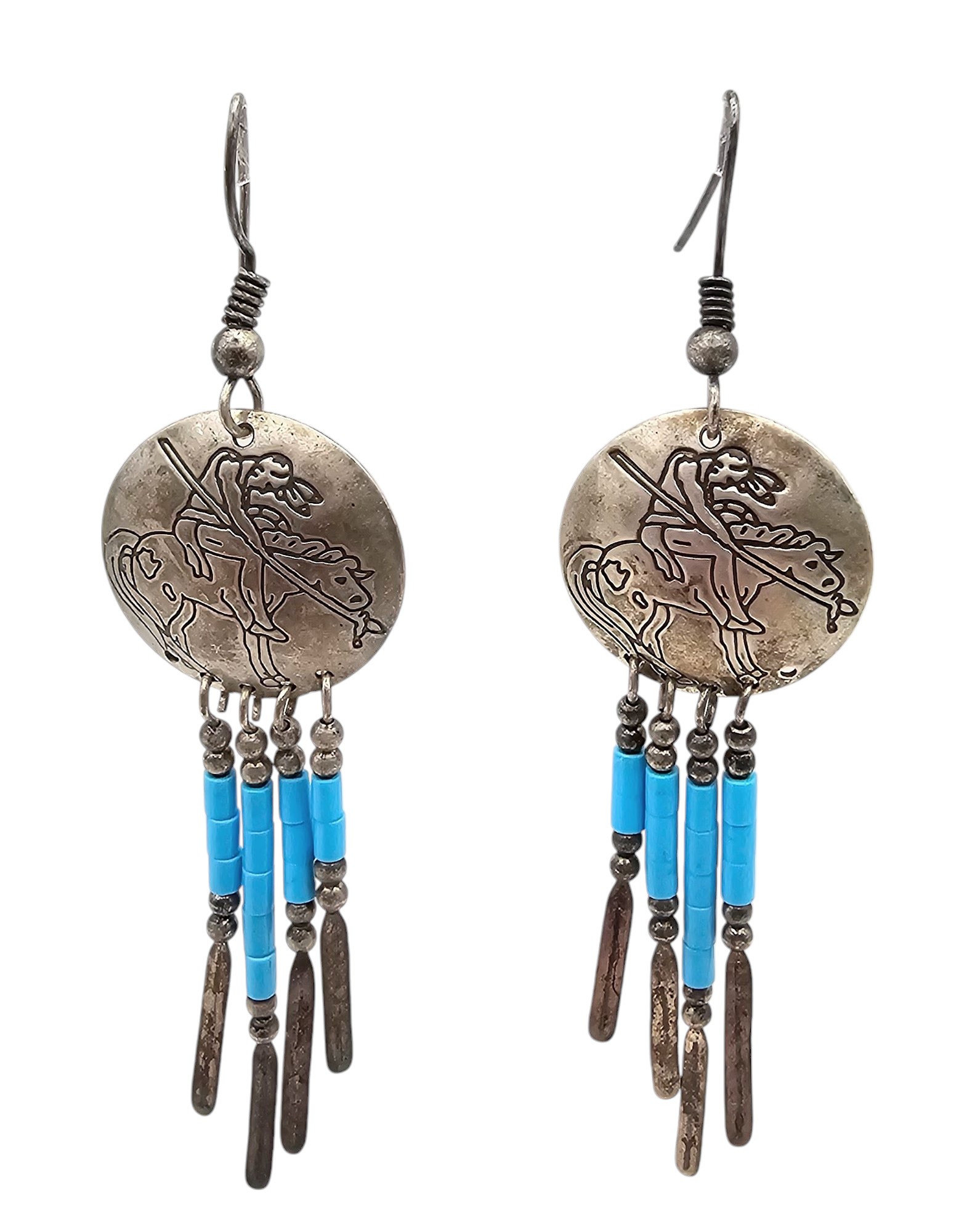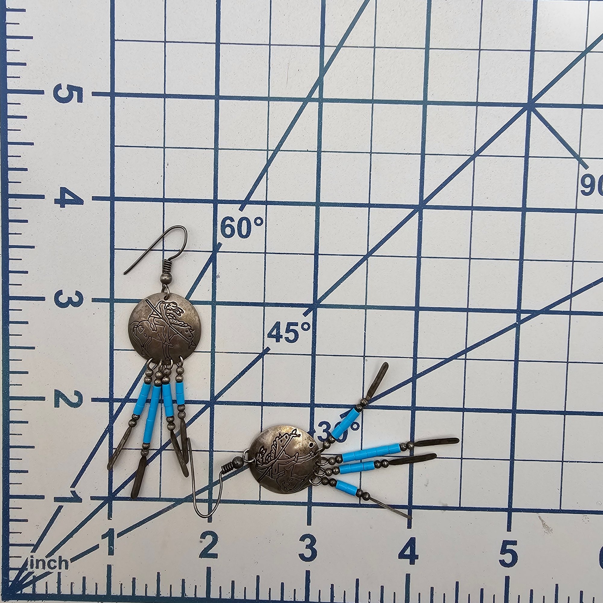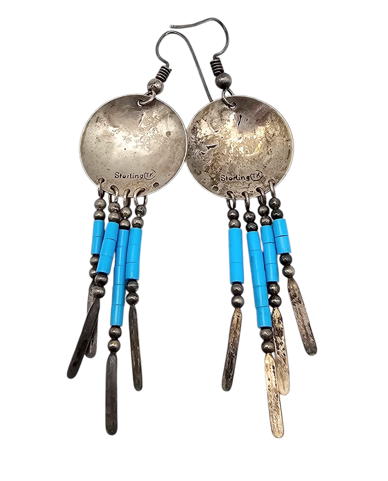 TK Emerson Turquoise Sterling Silver Fringe Drop Dangle Earrings 4.8 G