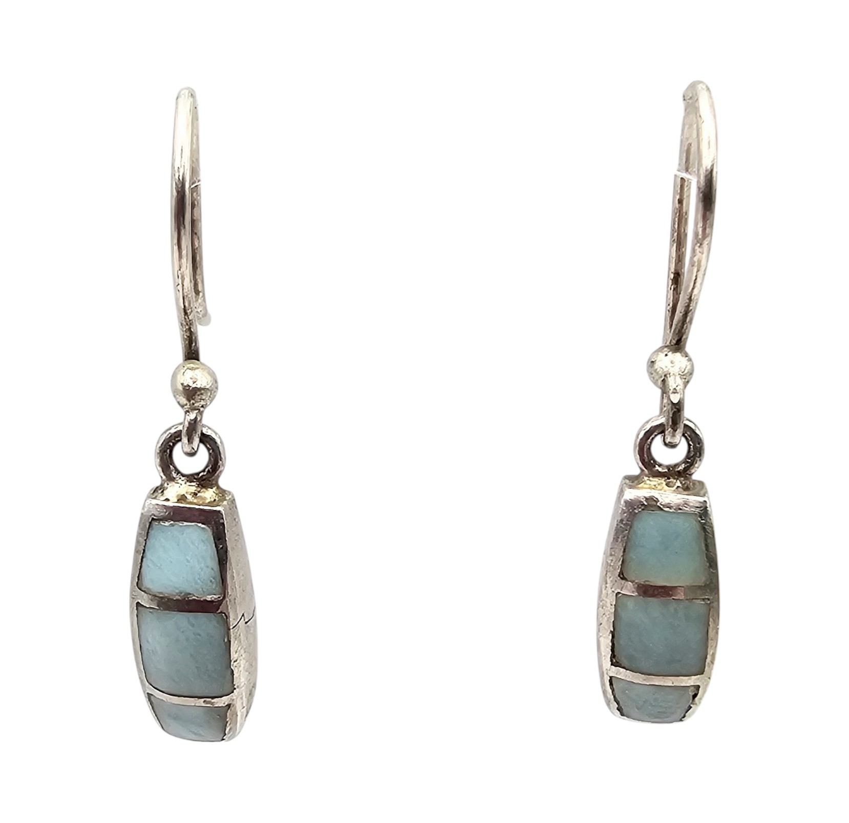 Southwestern Larimar Sterling Silver Drop Dangle Earrings 4.2 G