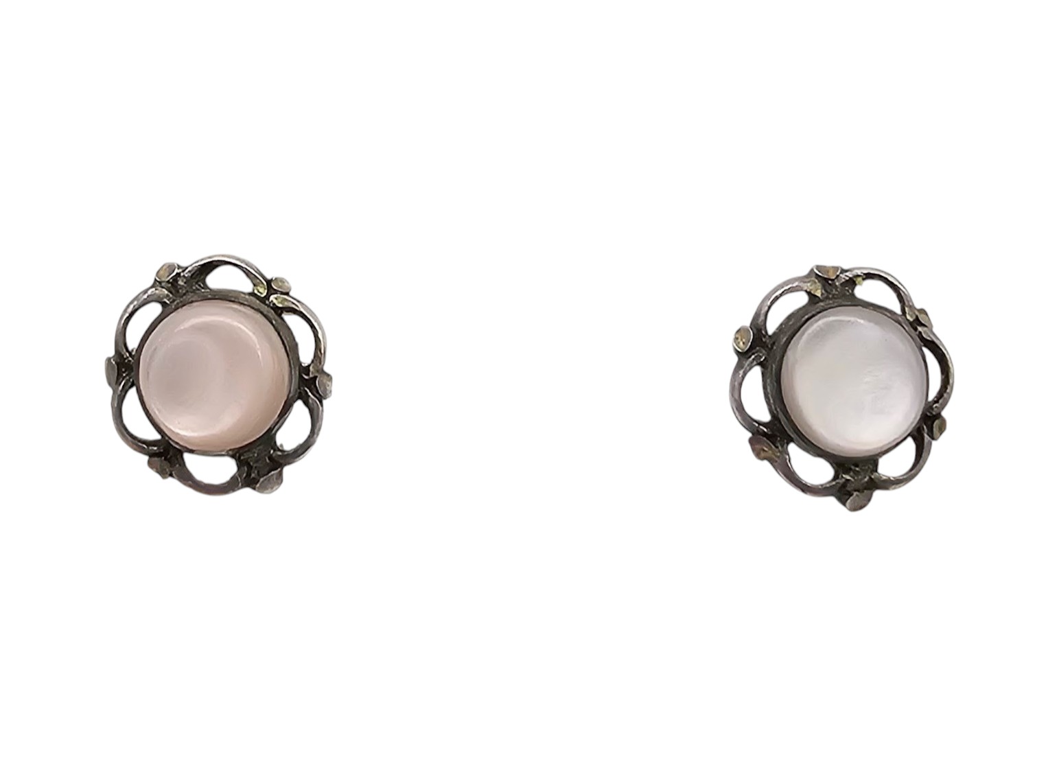 Southwestern Mother Of Pearl Sterling Silver Earrings 1.5 G