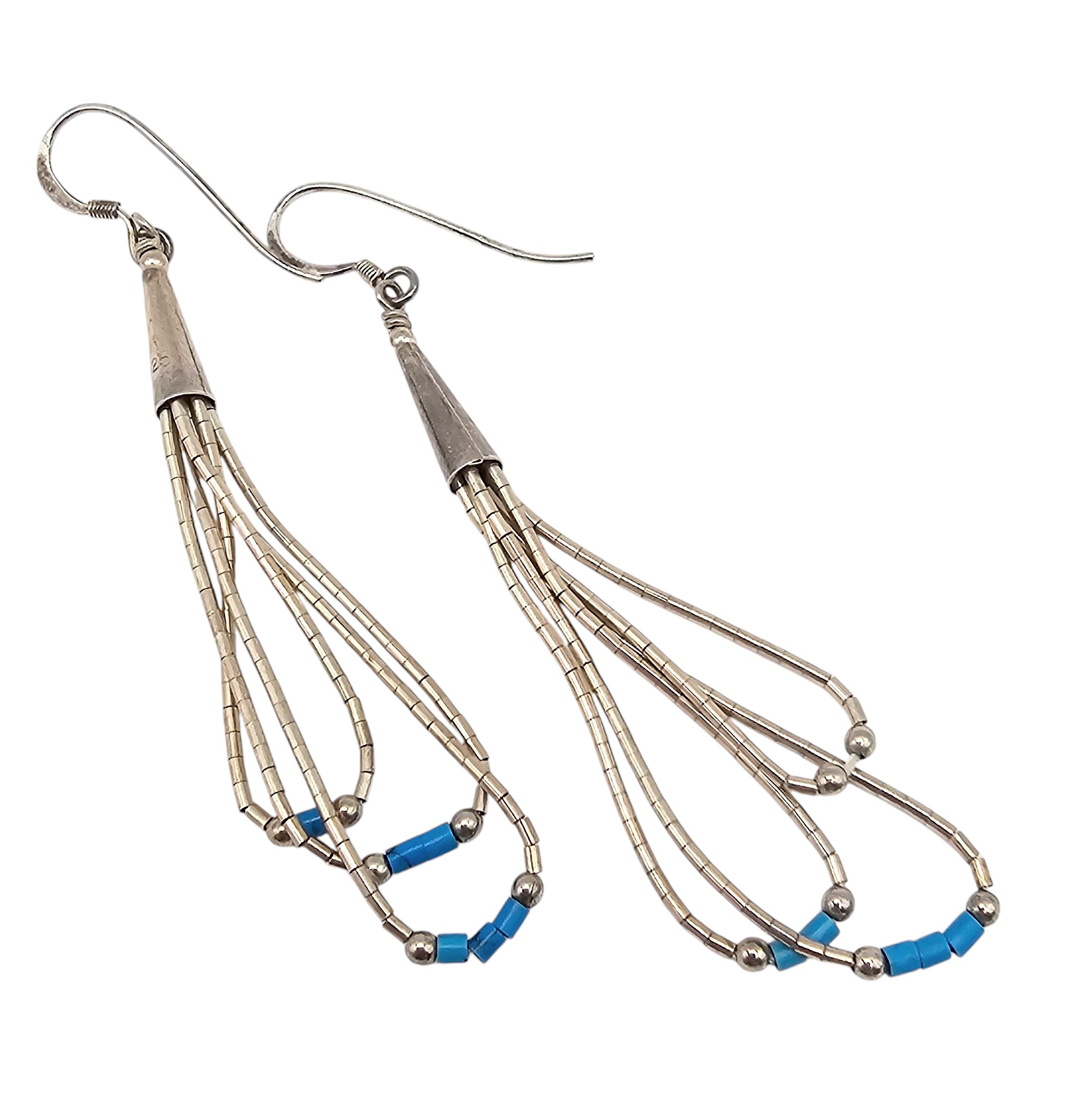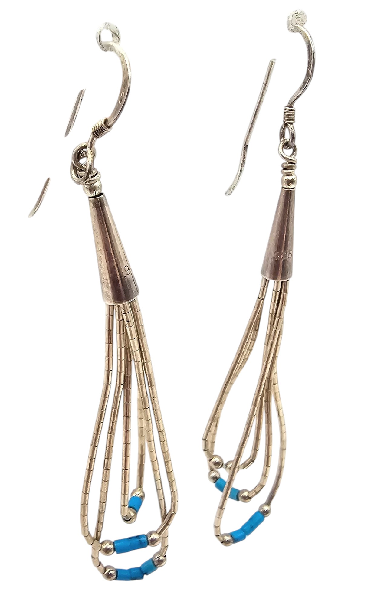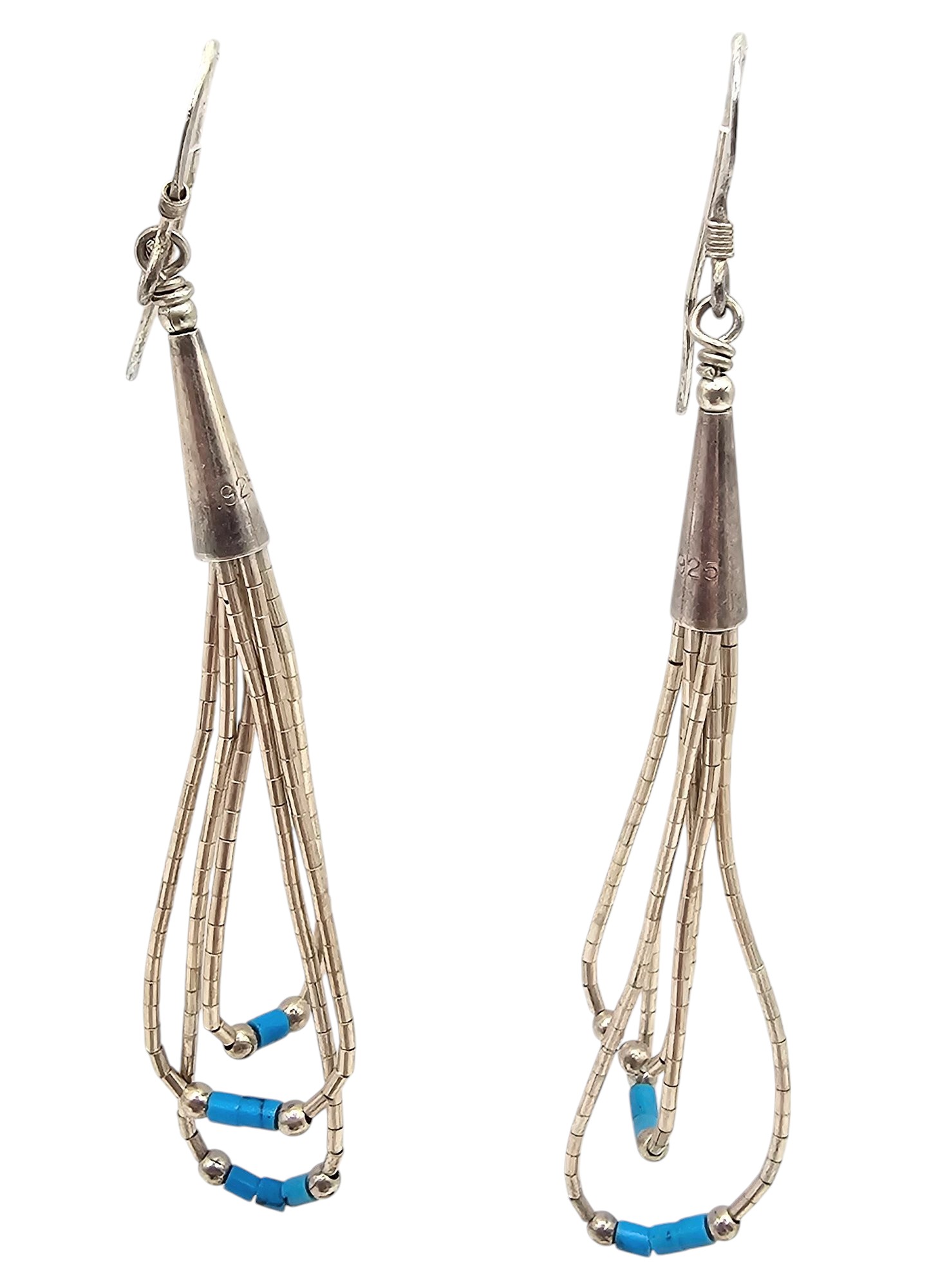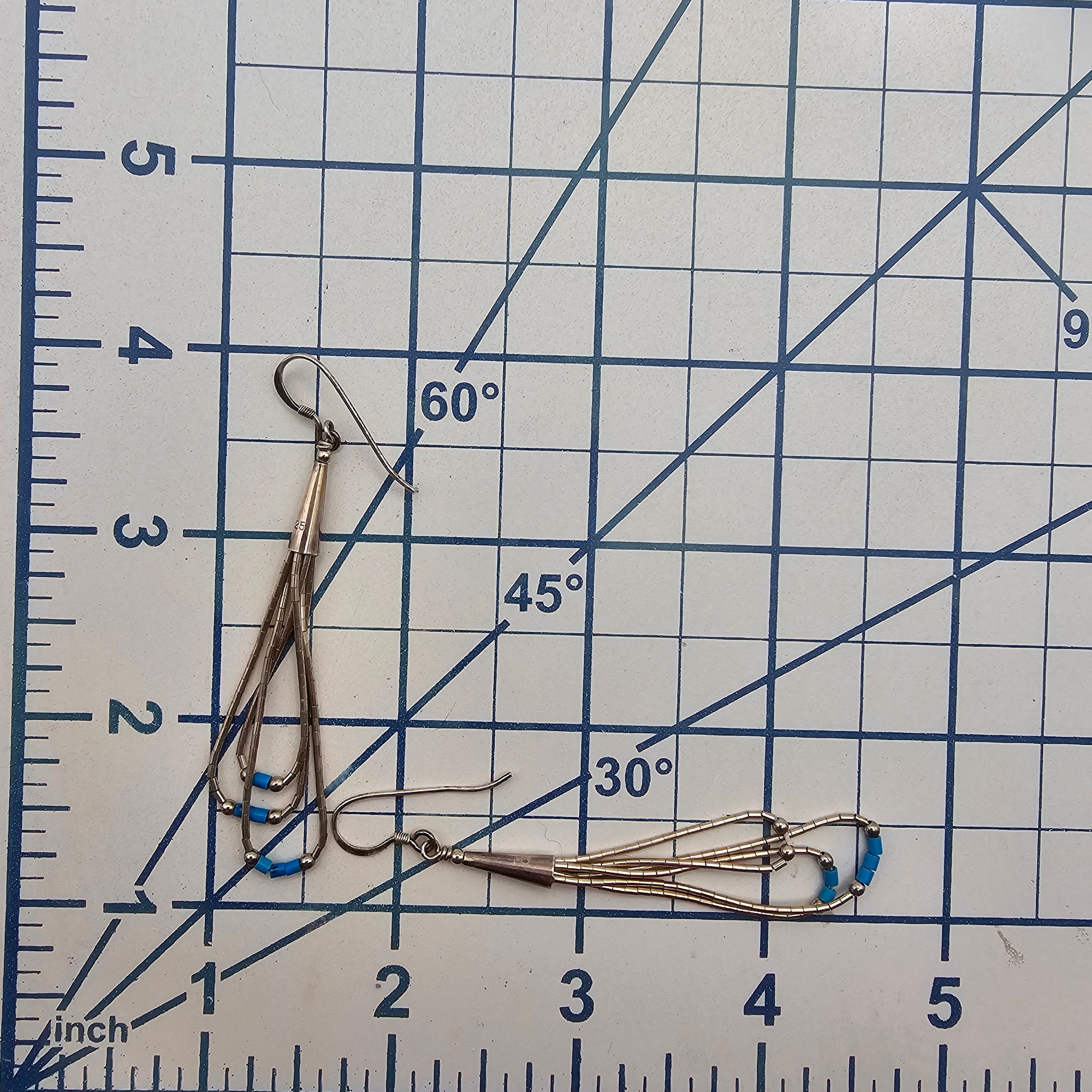 Southwestern Turquoise Liquid Silver Sterling Silver Multi Strand Drop Dangle Earrings 3.5 G