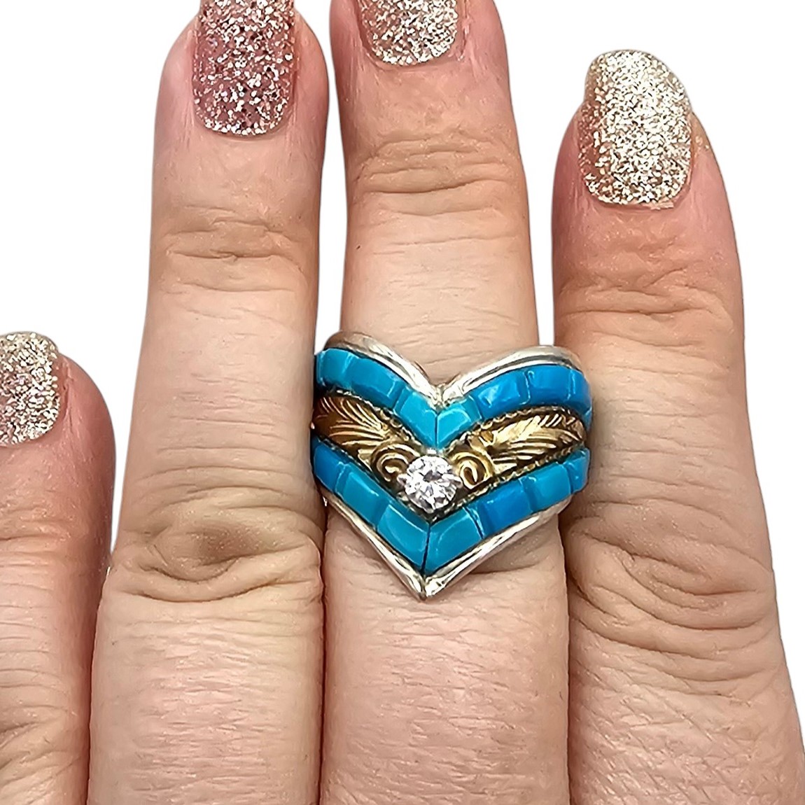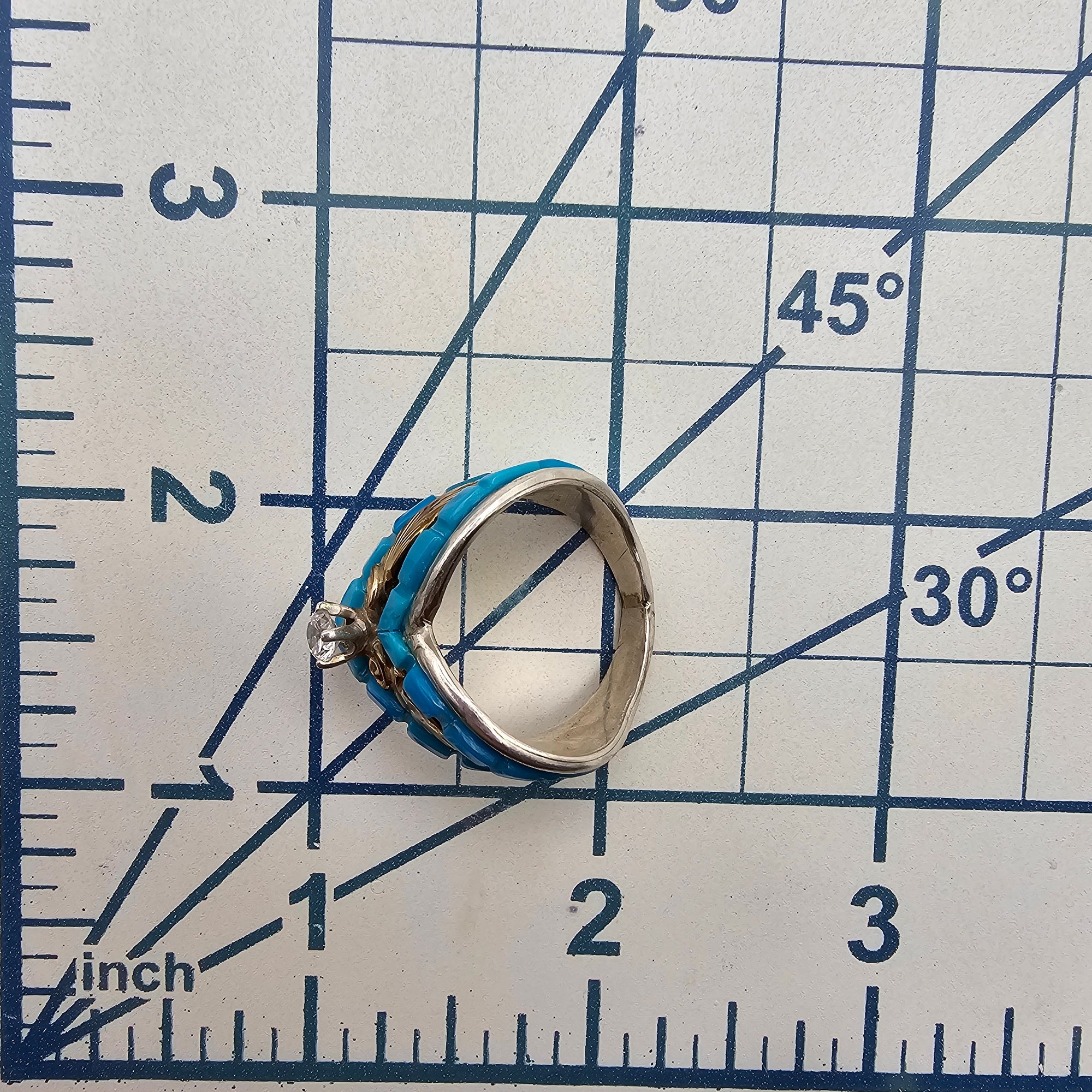 Silver Ray native Turquoise clear Stone Sterling Silver two tone Ring Size 9.25 8.4 G