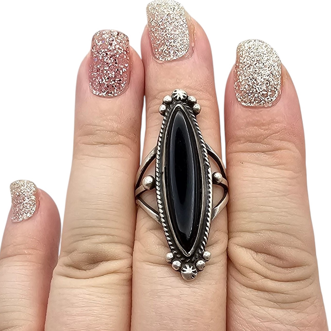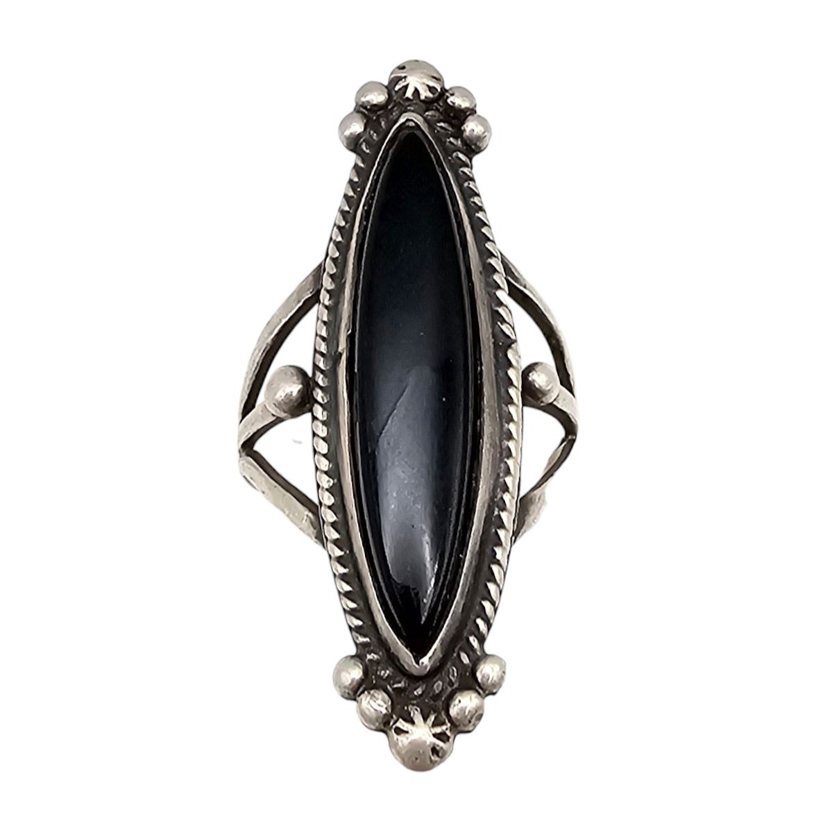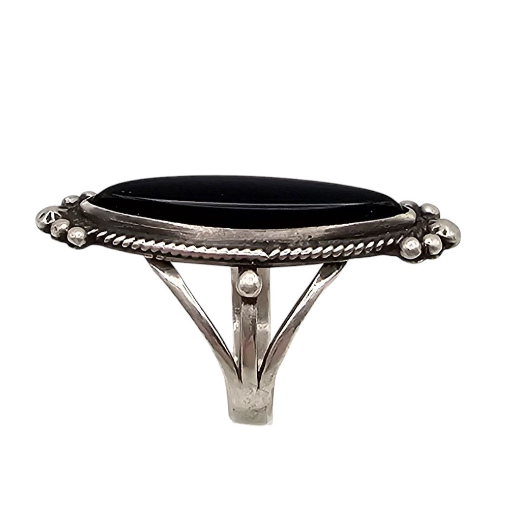 Navajo Onyx Sterling Silver Ring Size 7.25 6.9 G