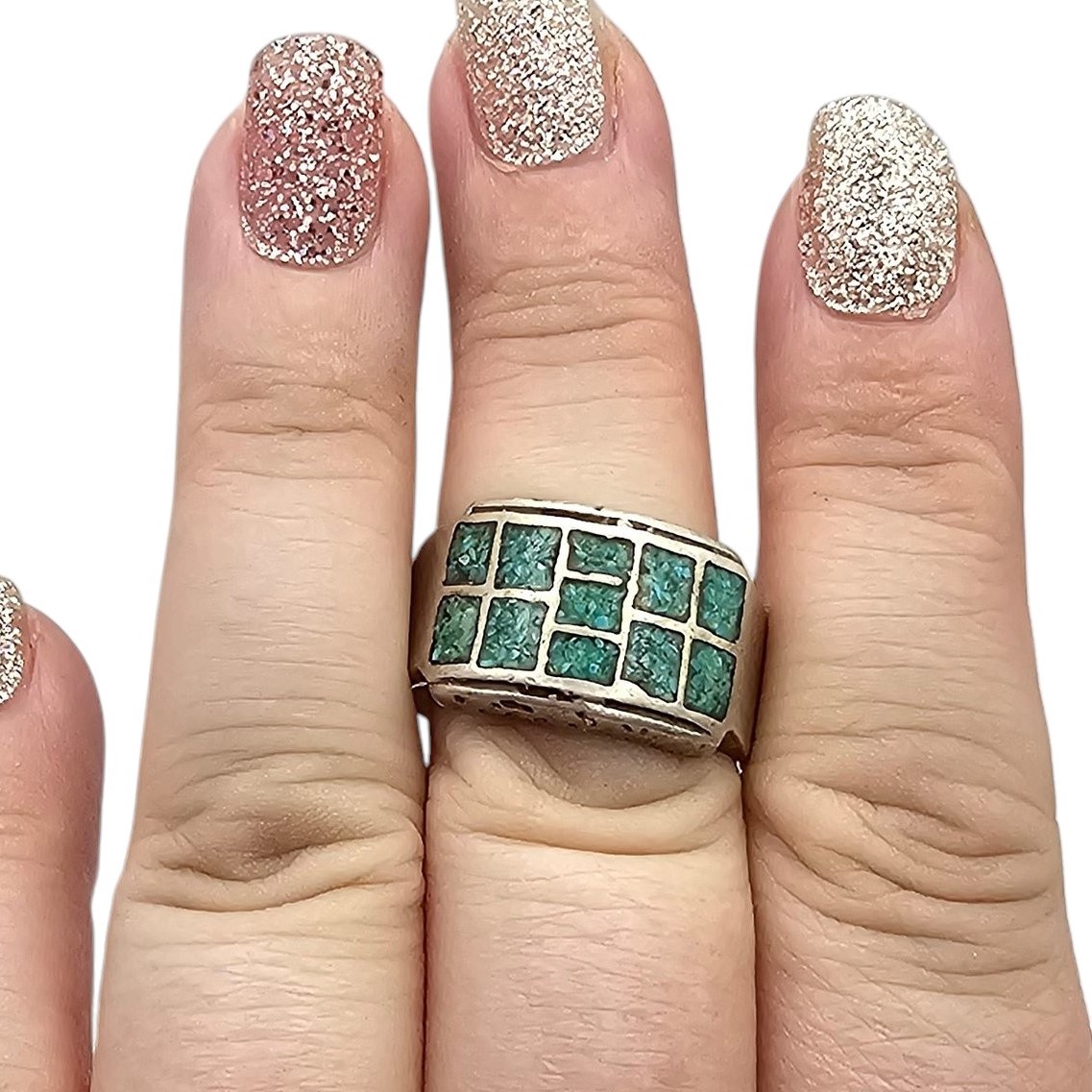 Navajo Crushed Turquoise Sterling Silver Ring Size 11 13.3 G