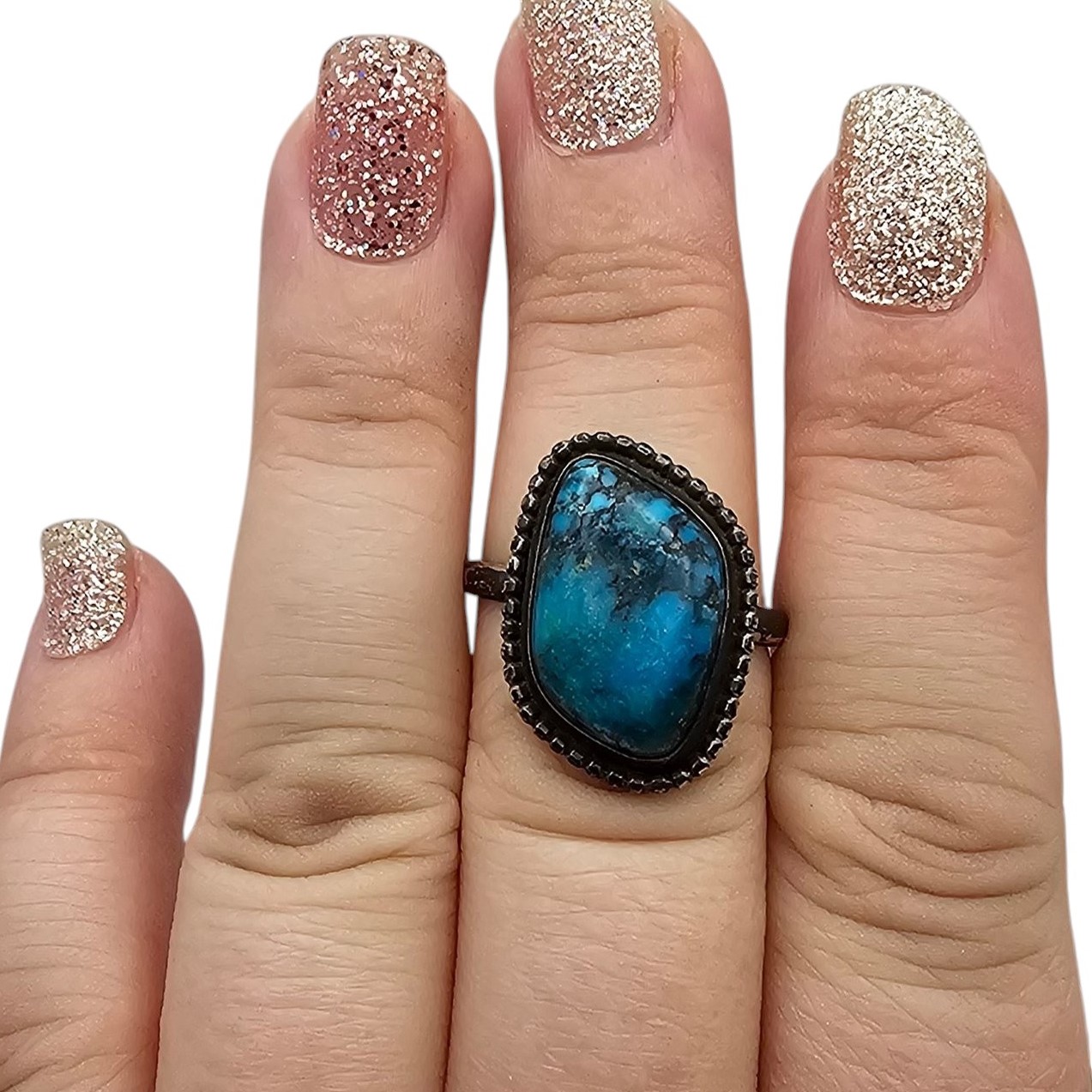 Navajo Turquoise Sterling Silver Ring Size 8 5.9 G