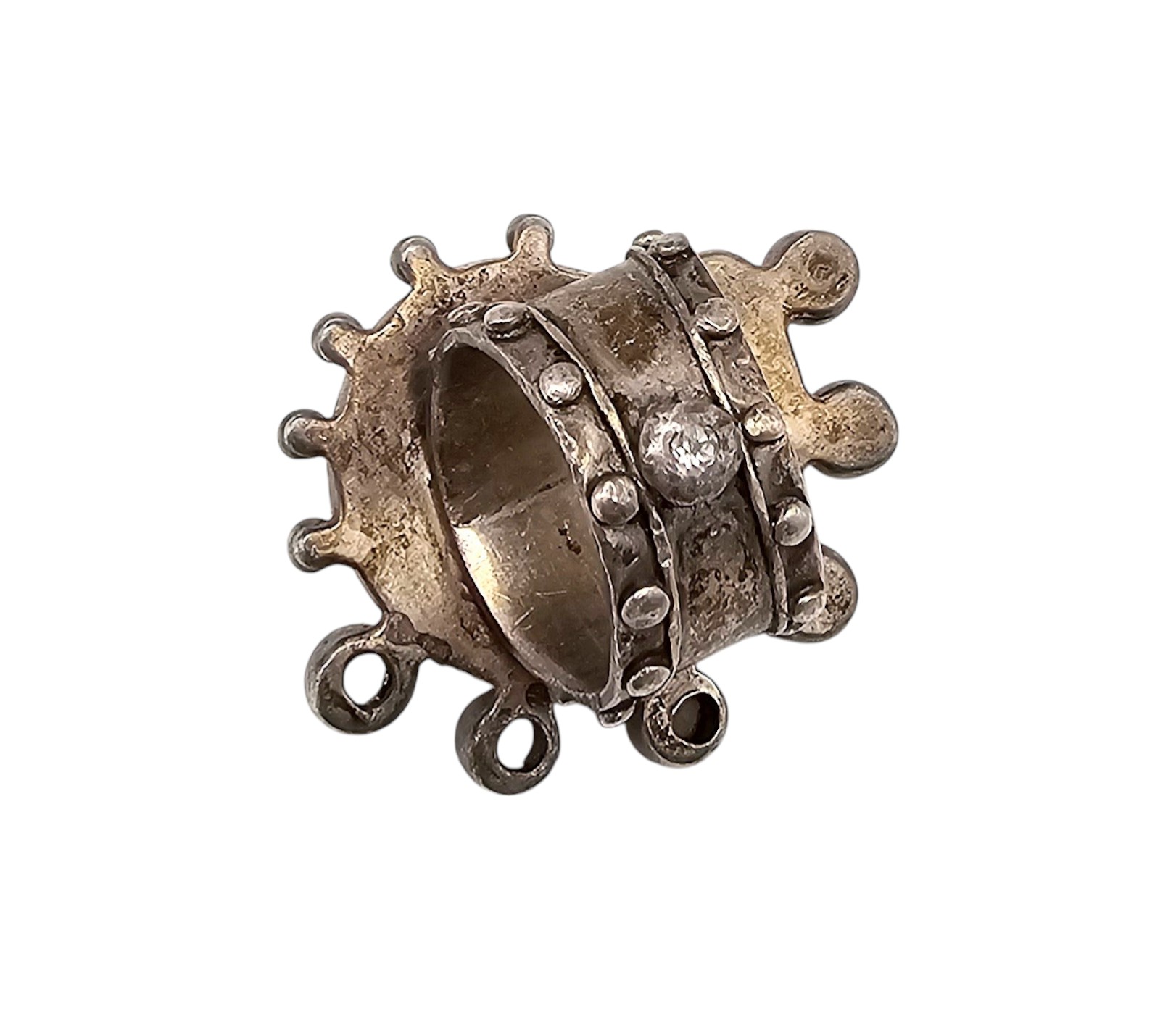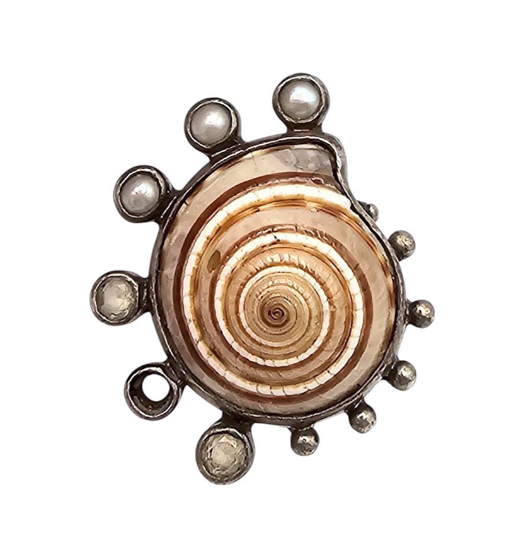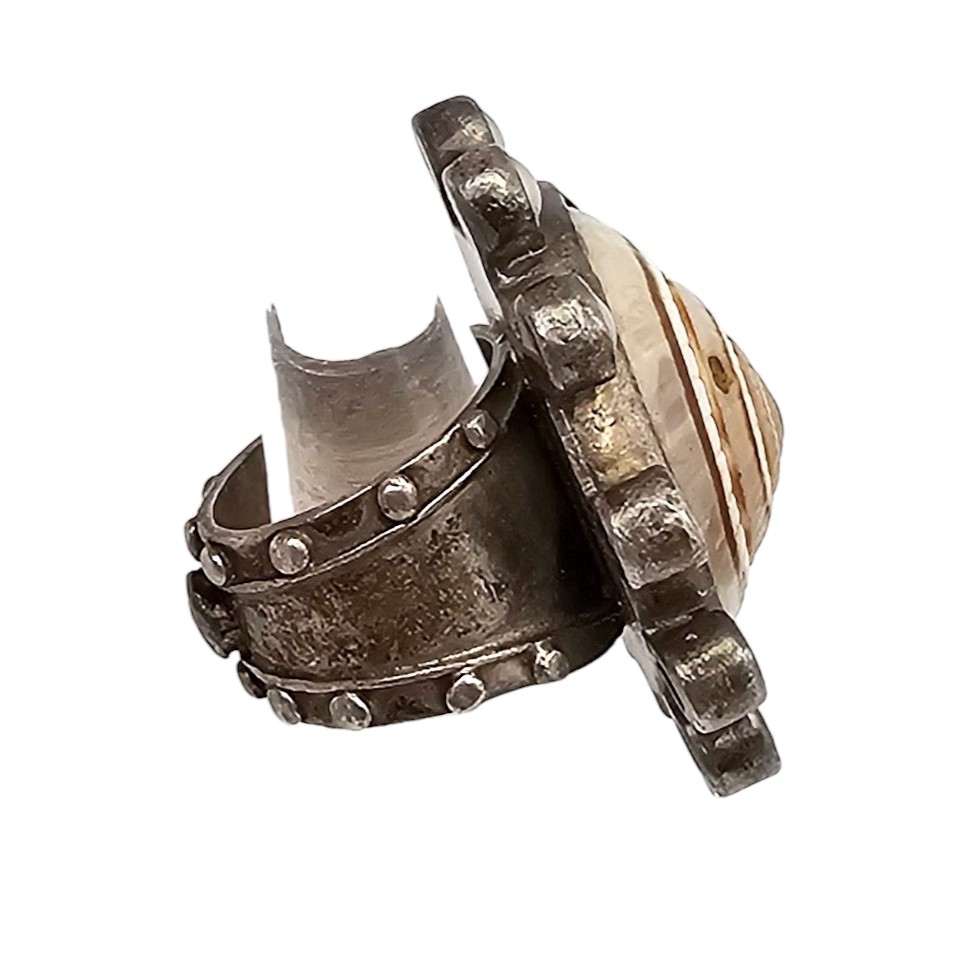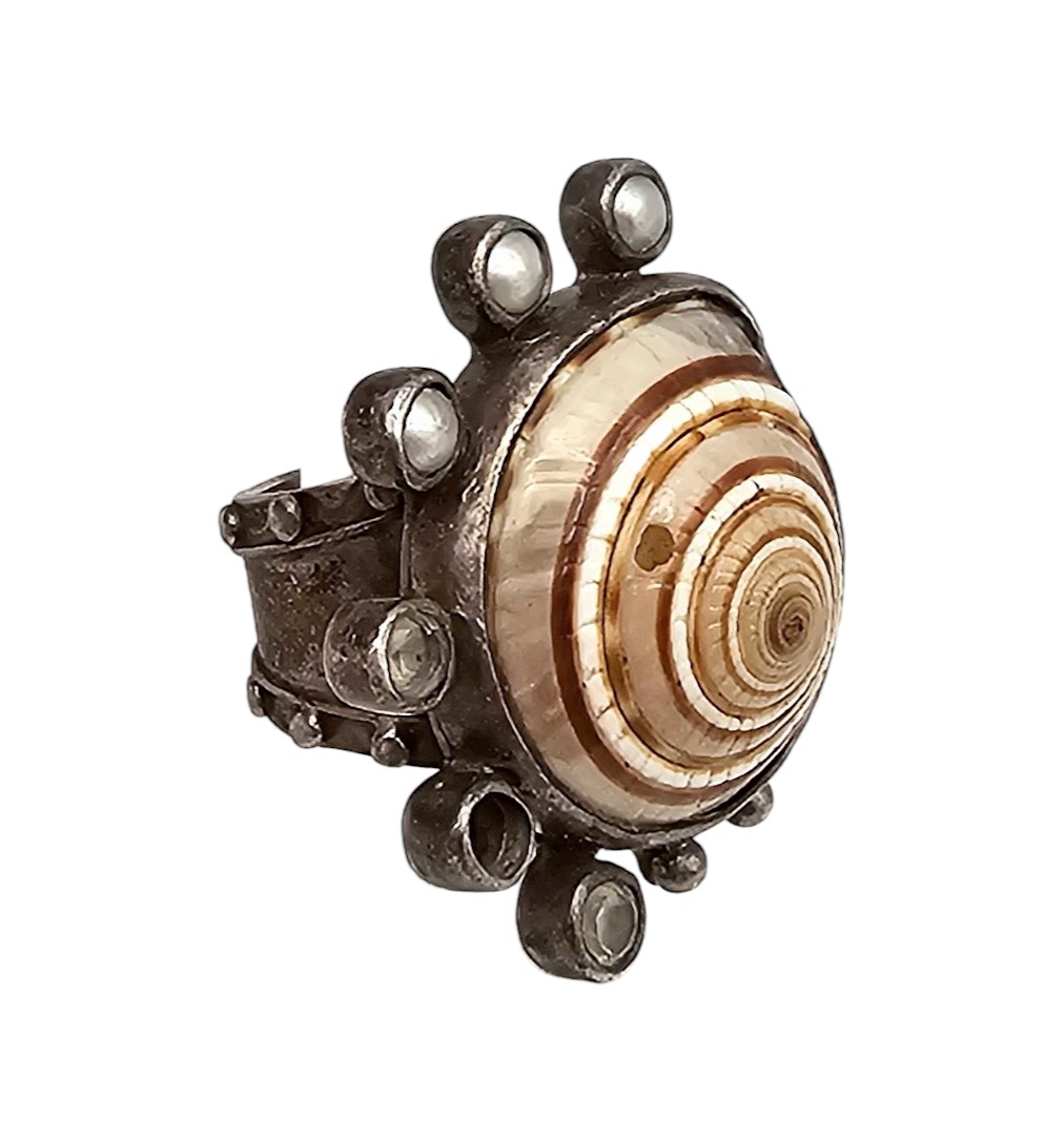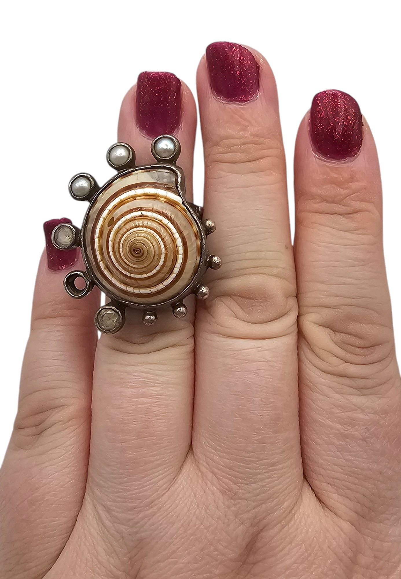 Signed Minsid Abterart? Shell Rhinestone Pearl Modernist Ring Size 5 19.2 G as is missing one stone