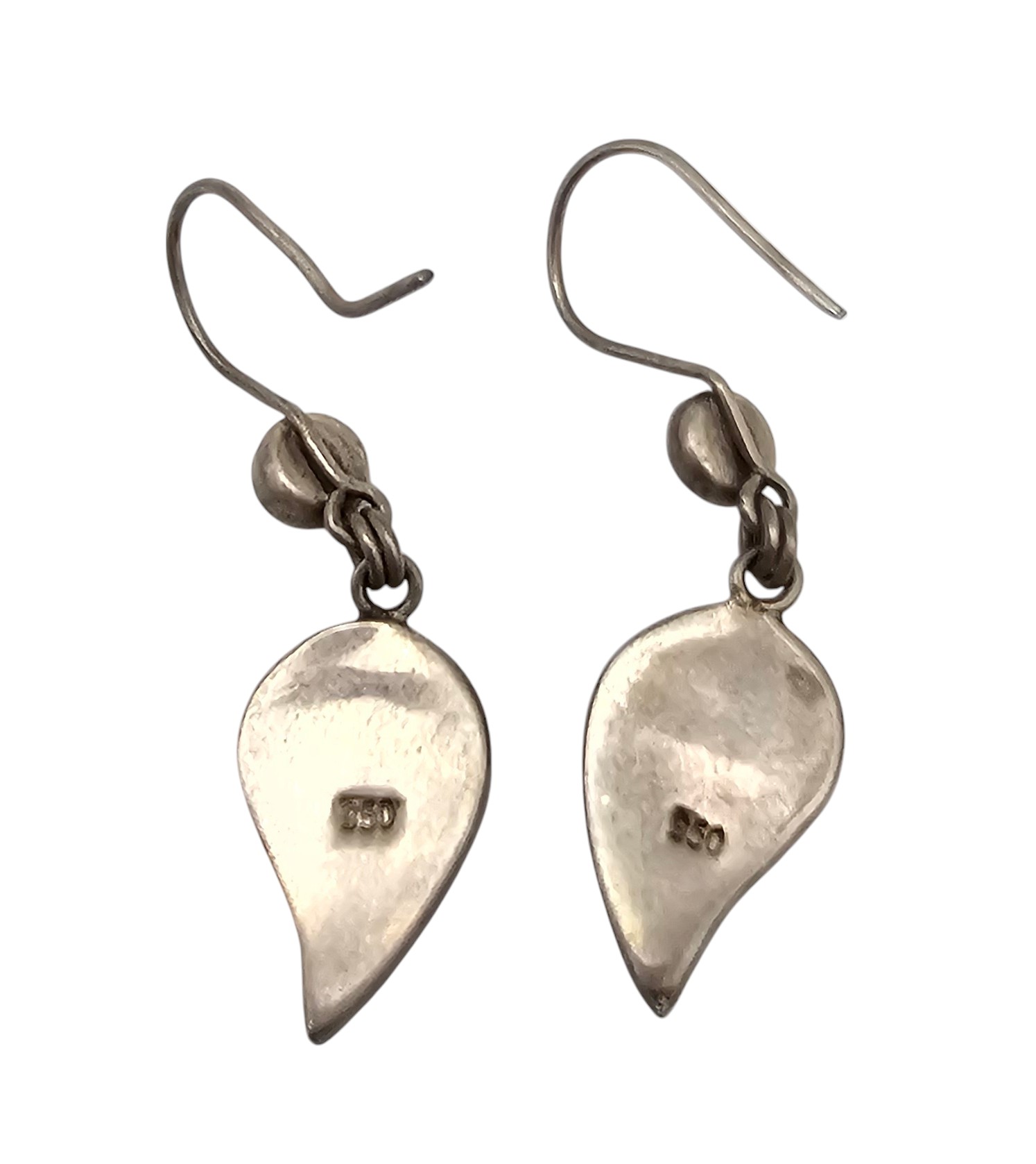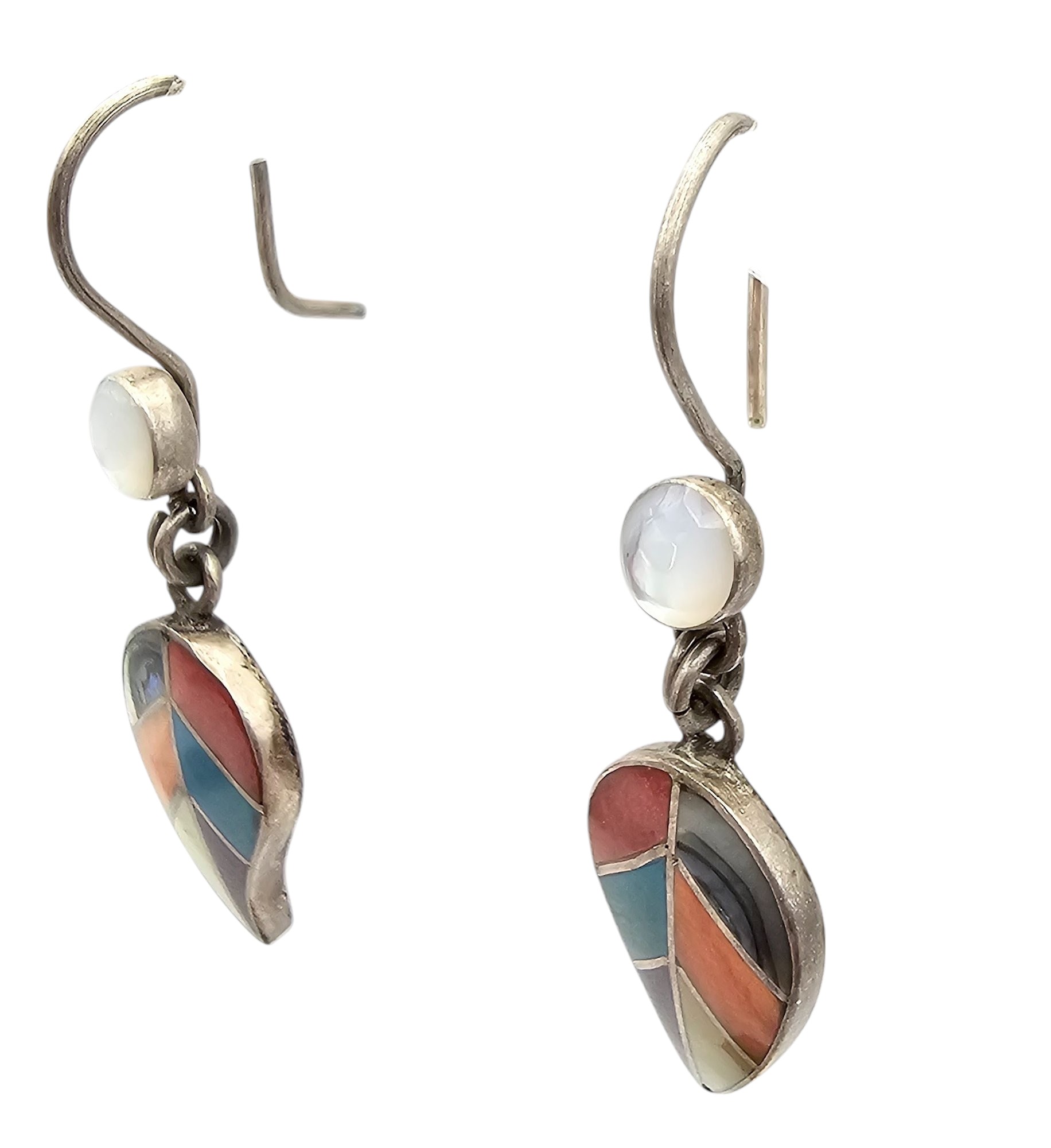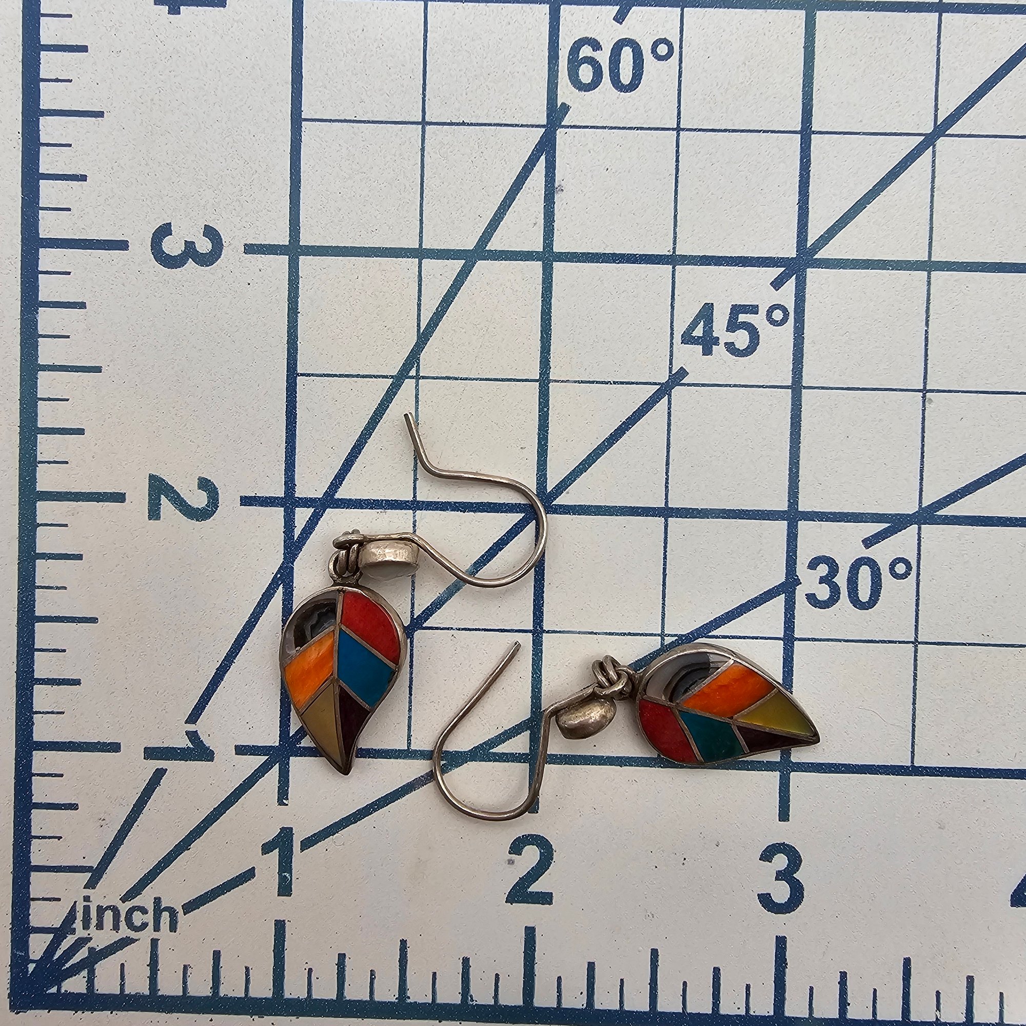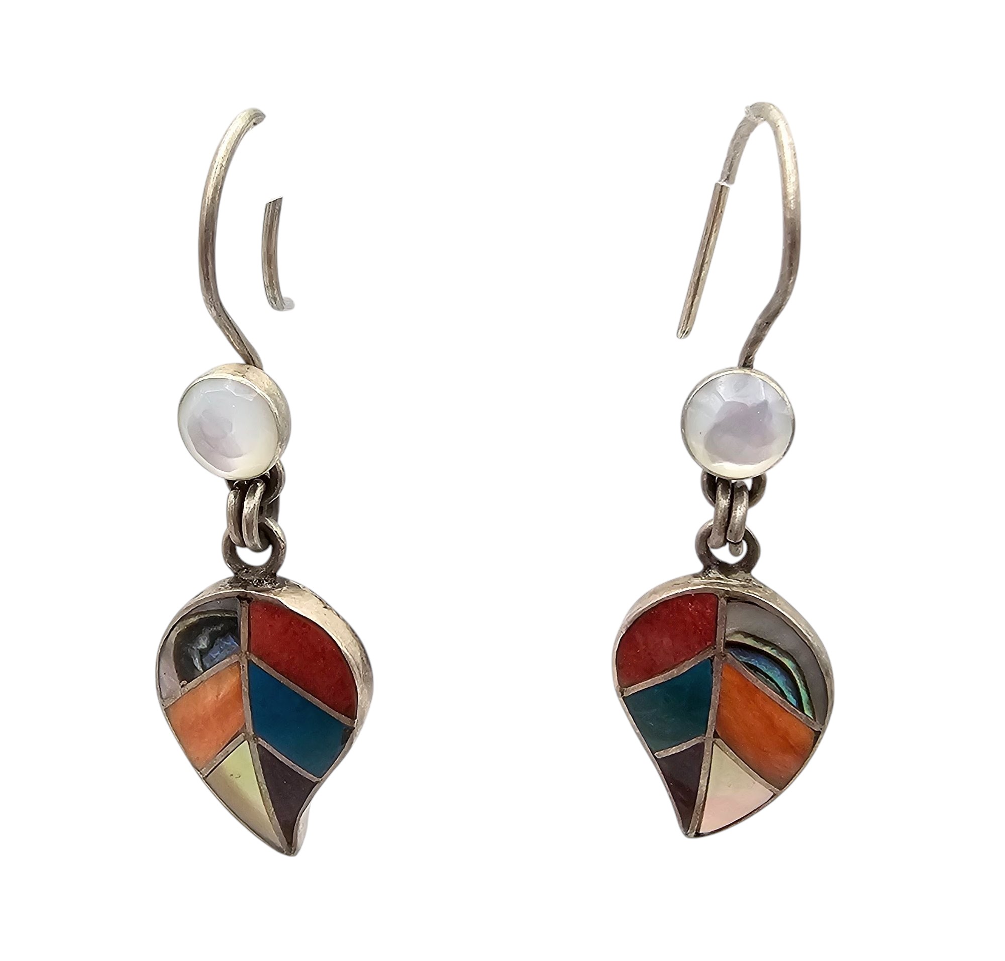 Spiney Oyster Coral Malachite Mother Of Pearl Sterling Silver Inlay Drop Dangle Earrings 5.1 G