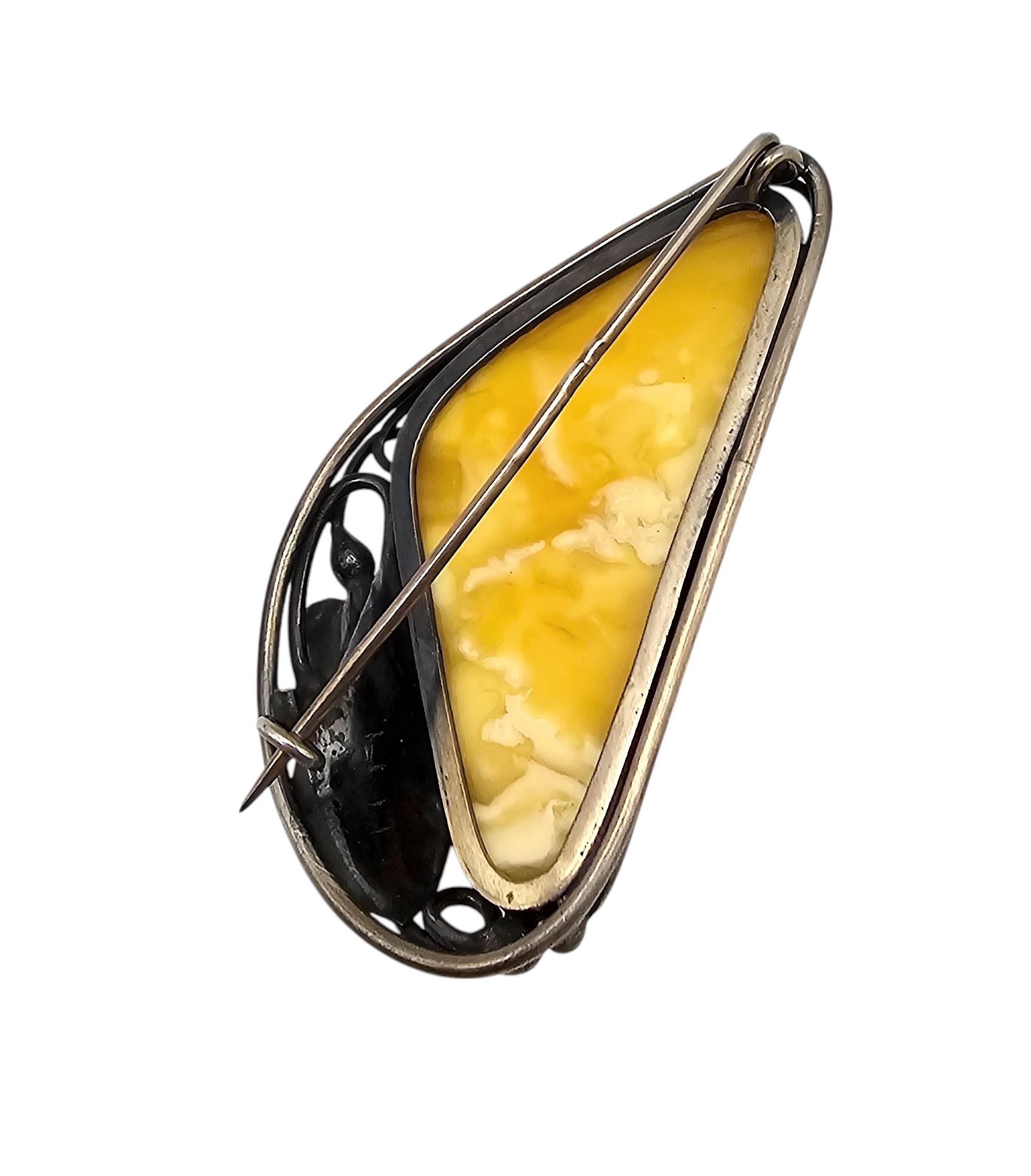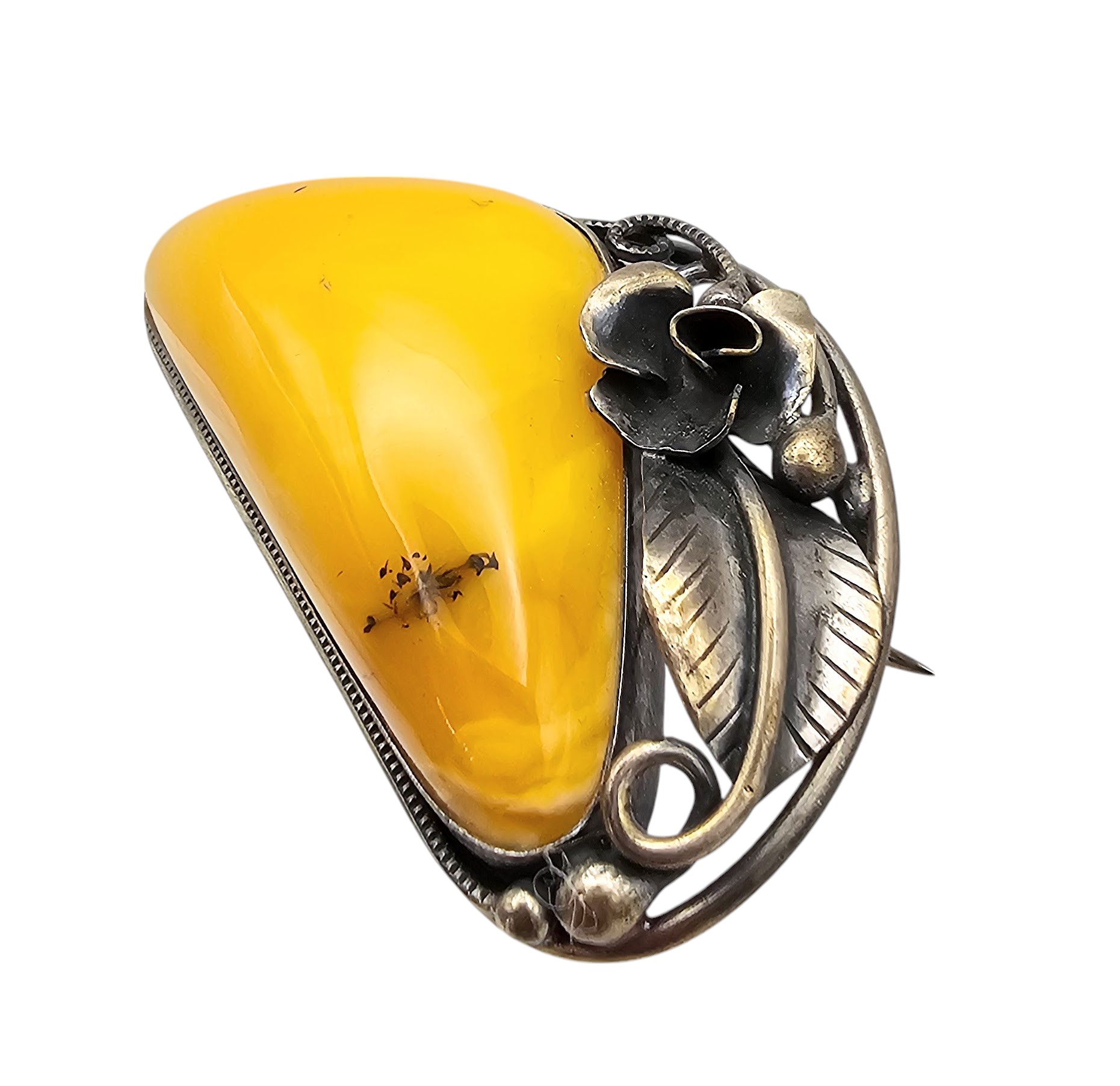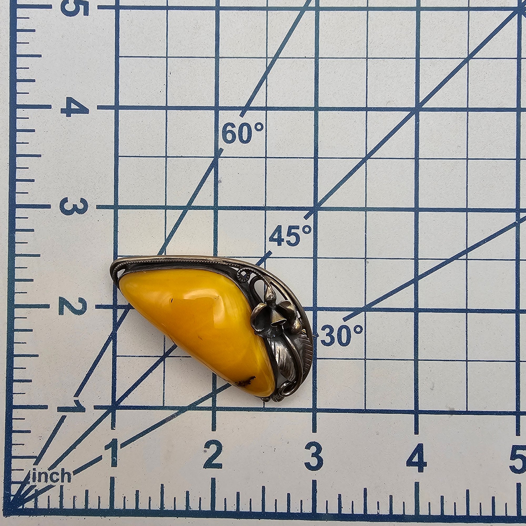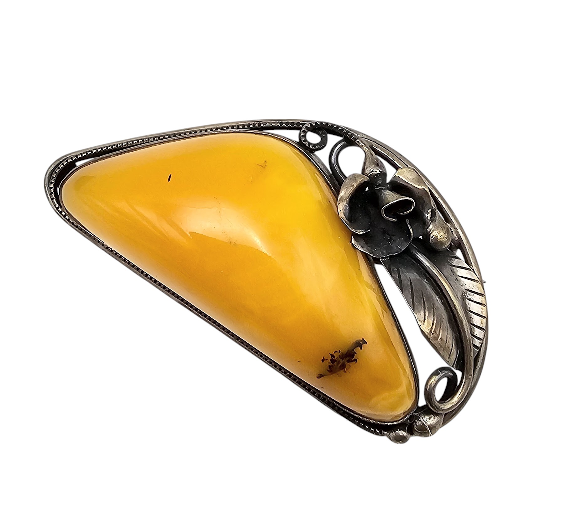 Butterscotch Amber Sterling Silver Brooch 14.9 G